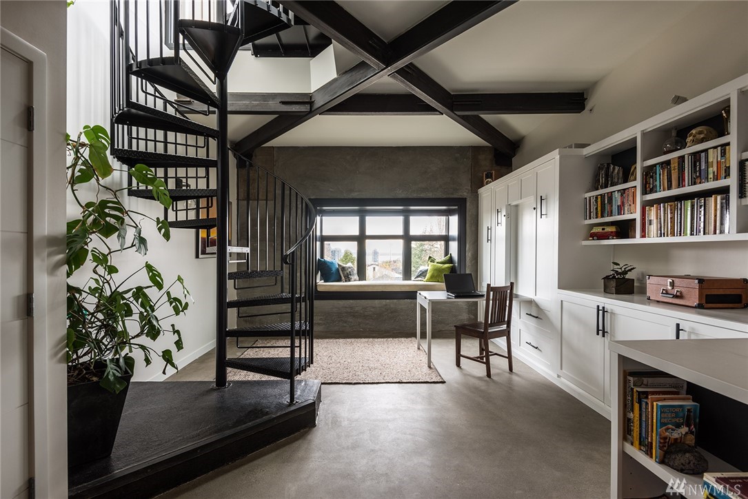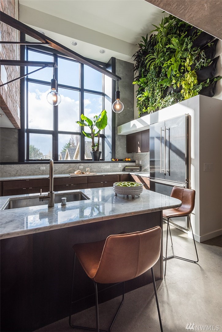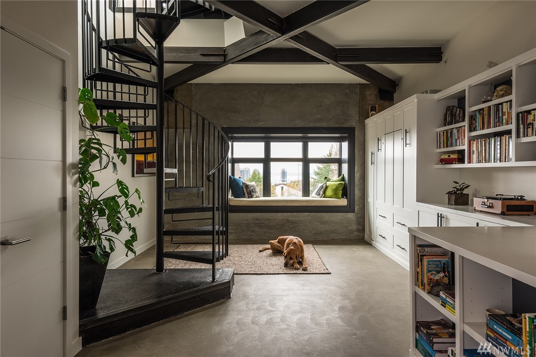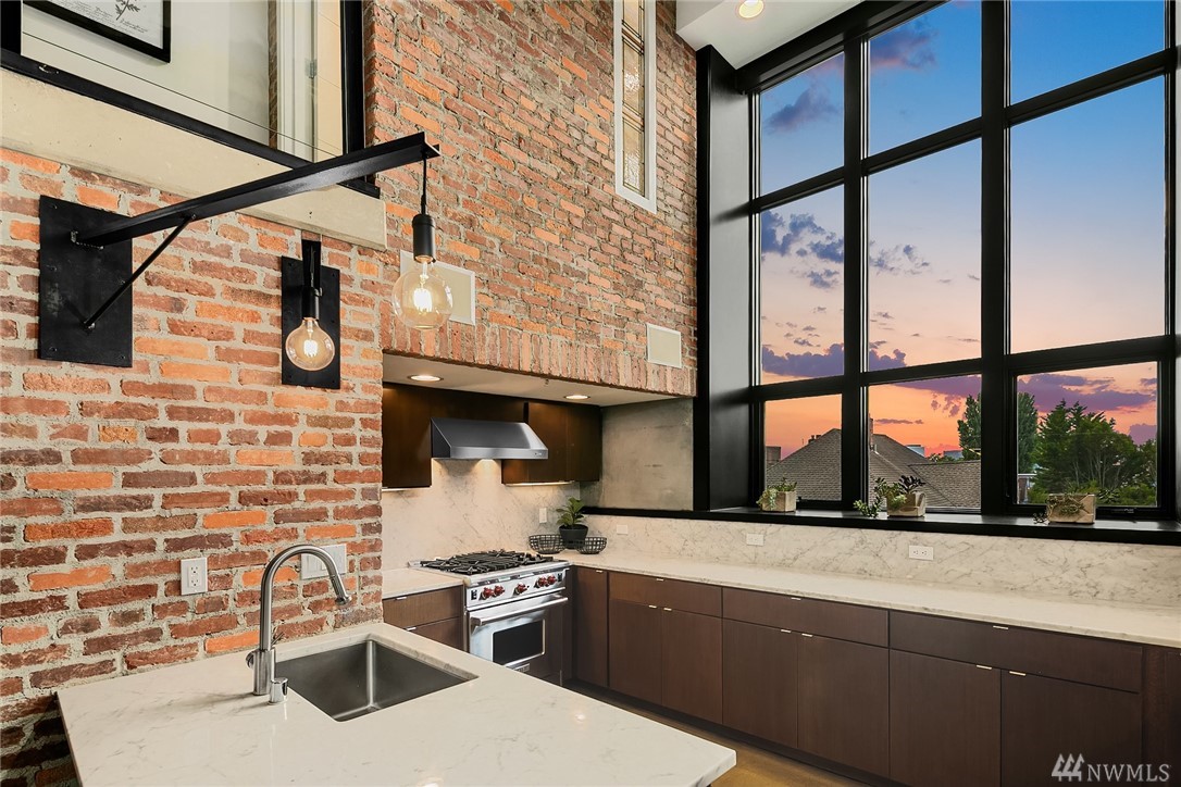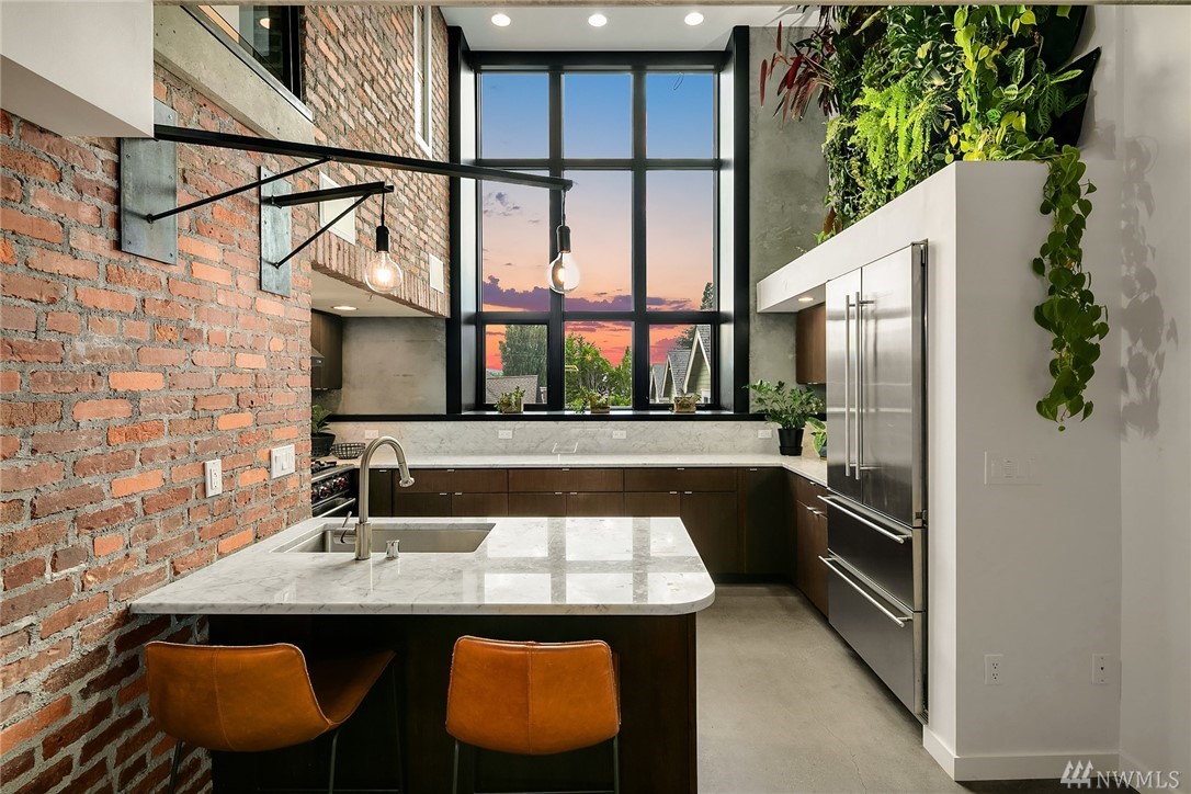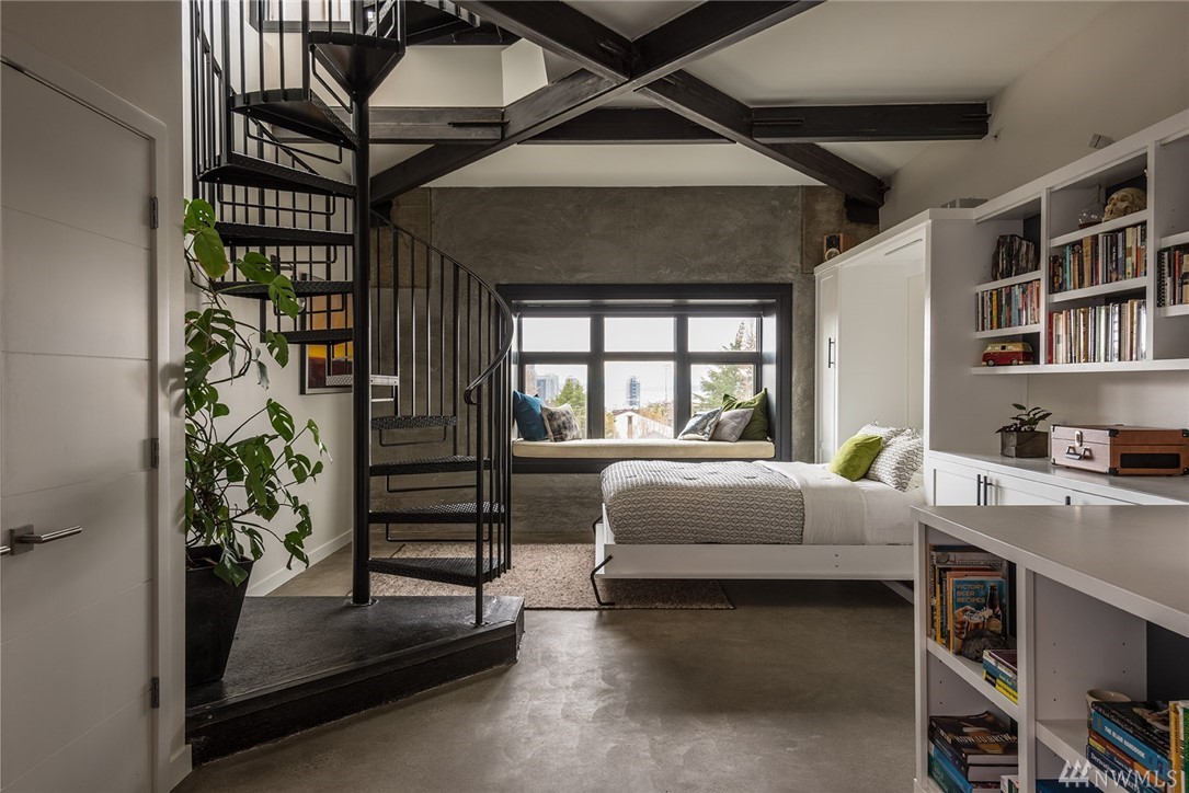 Natural light floods this rare historic home in The Sanctuary. No detail was spared in renovations, including exposed brick, green wall, high-end fixtures, concrete floors and steel beams, a re-imagined master suite featuring innovative Nana Wall doors, and stairs crafted from original church pews. Stunning west-facing views of the city skyline, Space Needle and Olympics. Upper bonus floor is a perfect work-from-home perch with built-ins, including Murphy bed. Great location, walk to light rail.