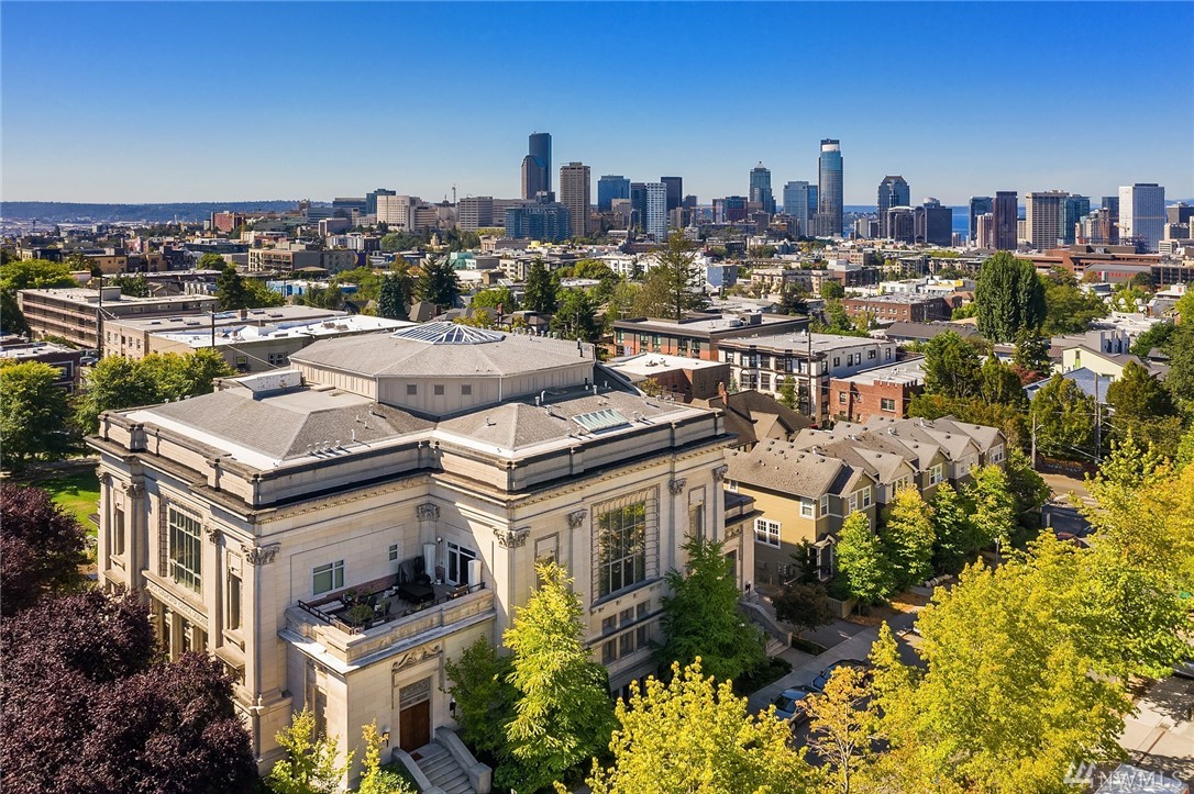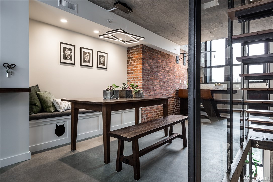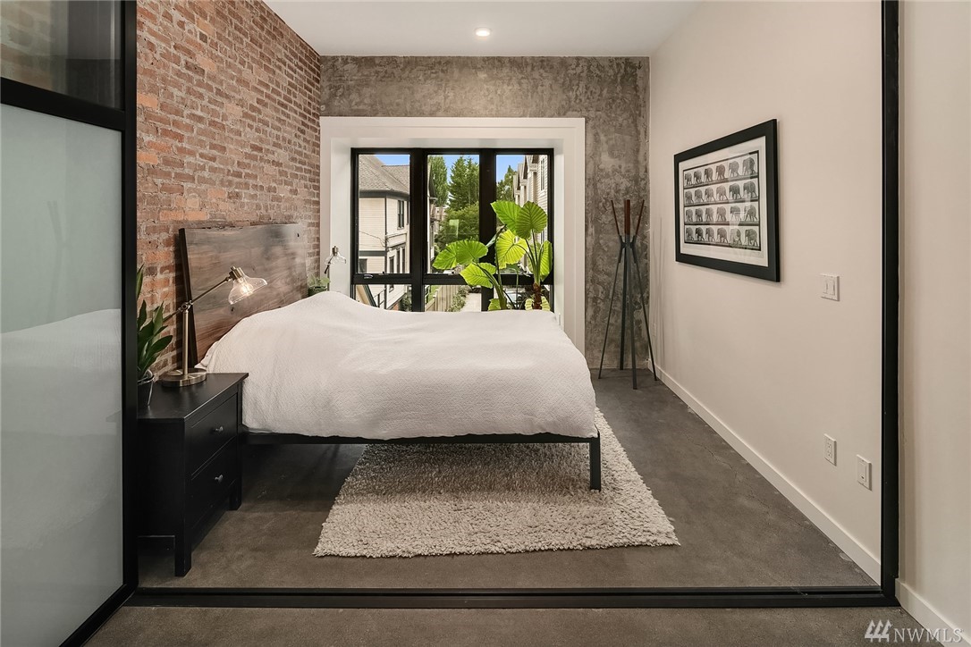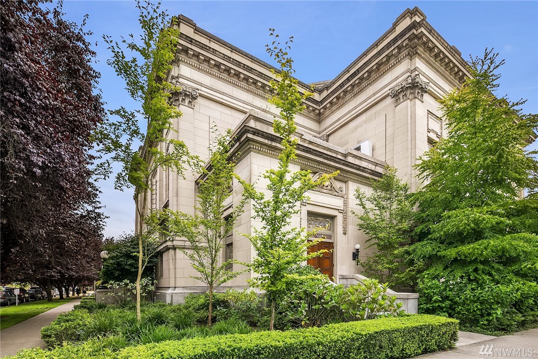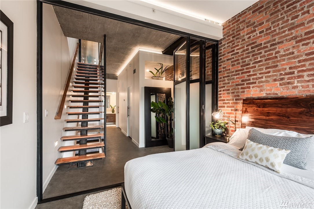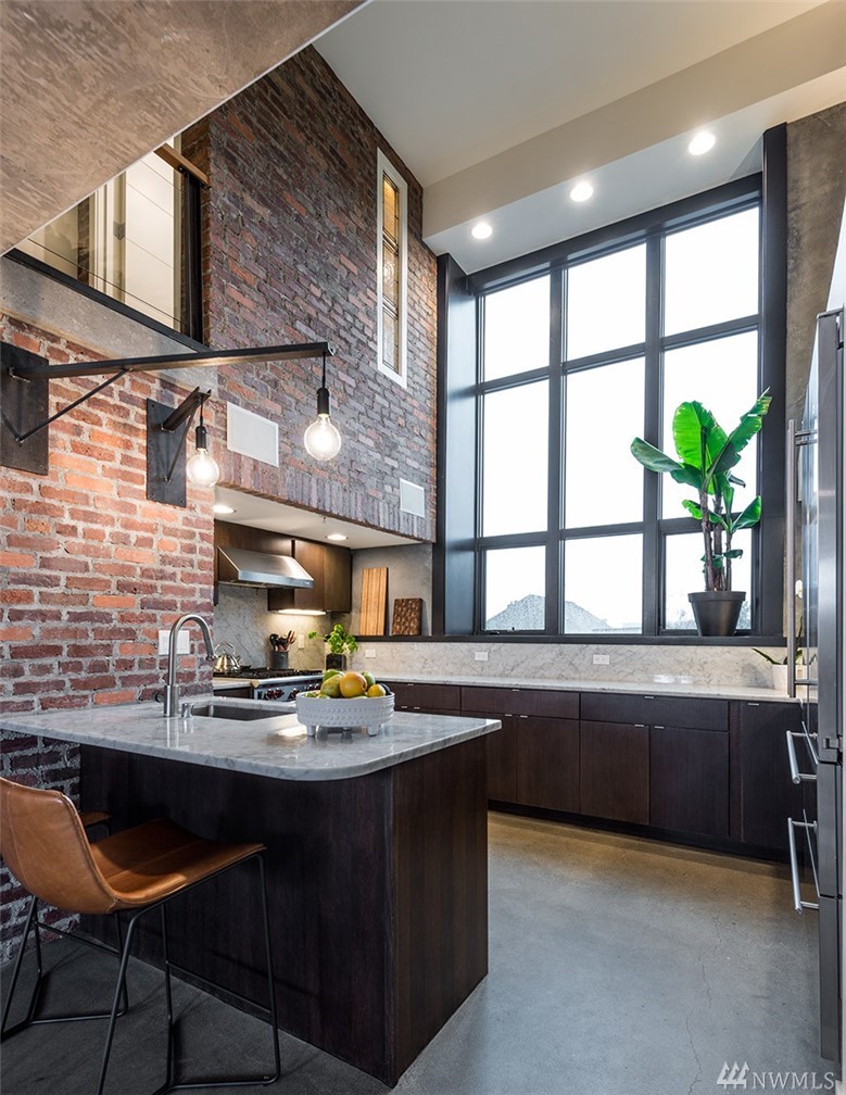Natural light floods this rare historic home in The Sanctuary. No detail was spared in renovations, including exposed brick, green wall, high-end fixtures, concrete floors and steel beams, a re-imagined master suite featuring innovative Nana Wall doors, and stairs crafted from original church pews. Stunning west-facing views of the city skyline, Space Needle and Olympics. Upper bonus floor is a perfect work-from-home perch with built-ins, including Murphy bed. Great location, walk to light rail.