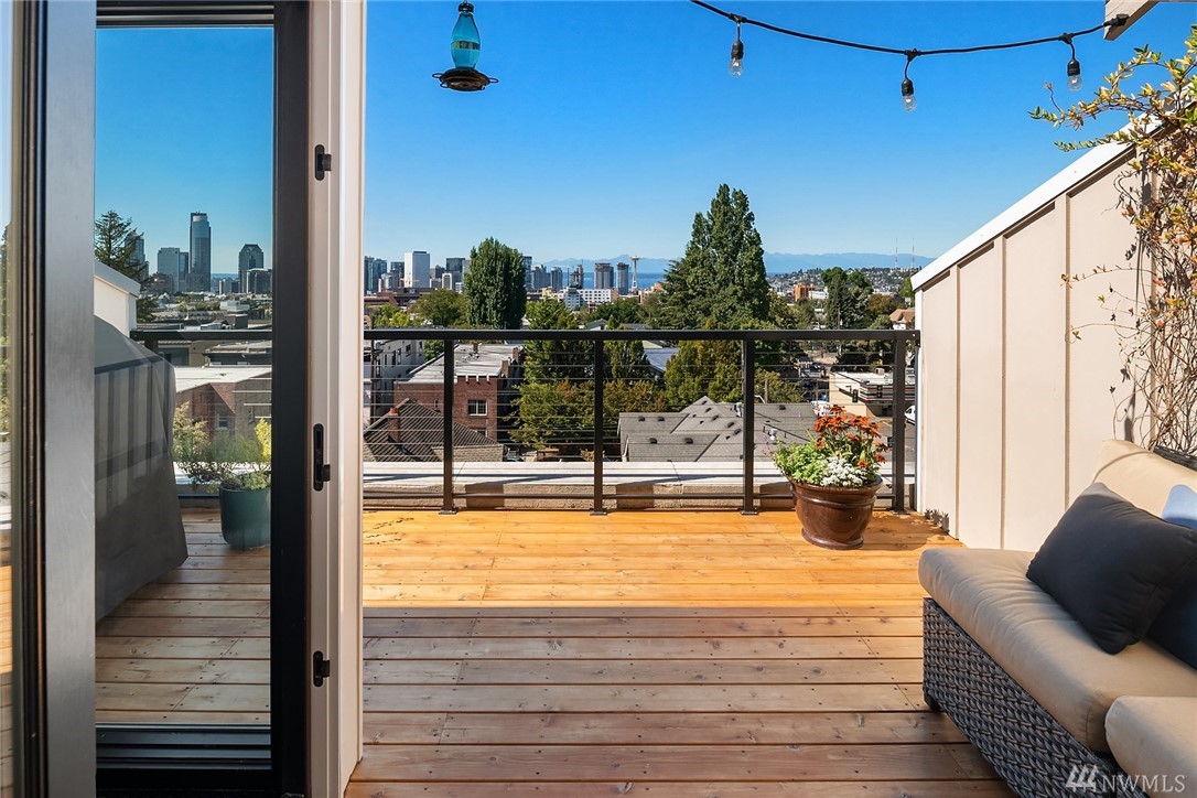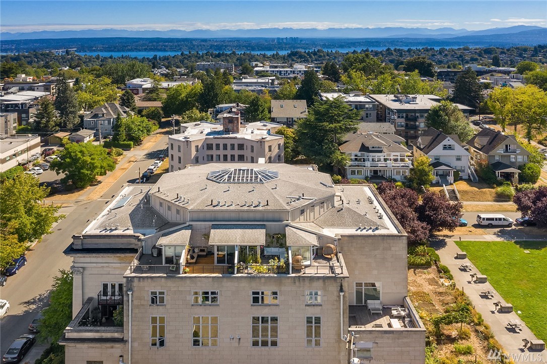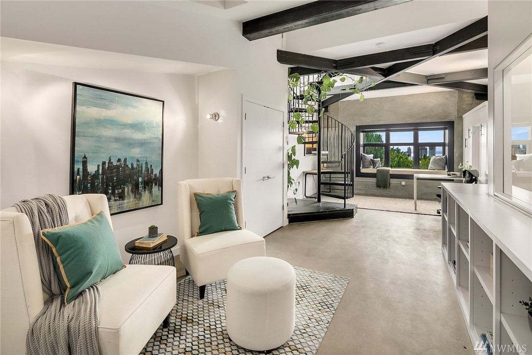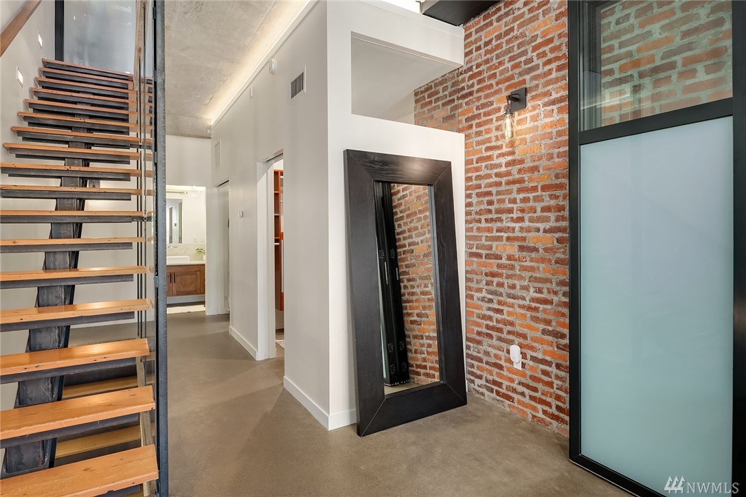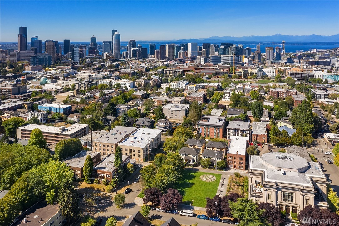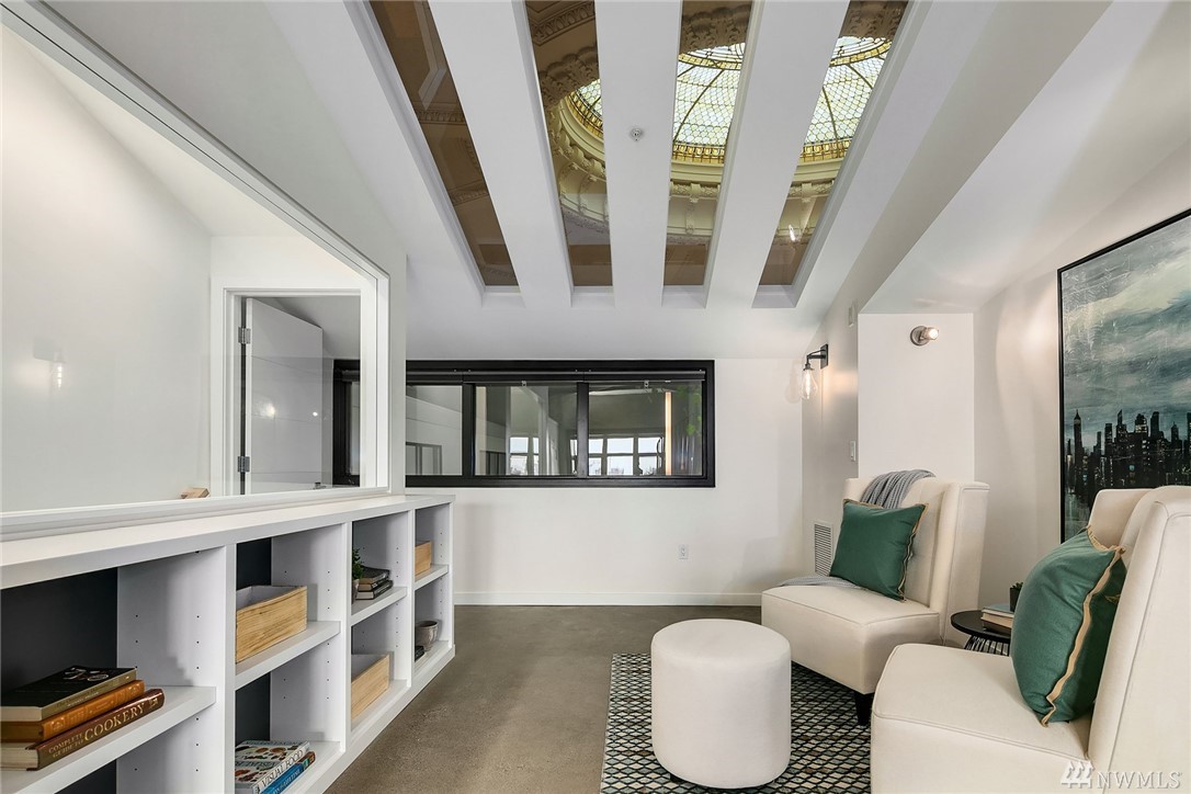 Natural light floods this rare historic home in The Sanctuary. No detail was spared in renovations, including exposed brick, green wall, high-end fixtures, concrete floors and steel beams, a re-imagined master suite featuring innovative Nana Wall doors, and stairs crafted from original church pews. Stunning west-facing views of the city skyline, Space Needle and Olympics. Upper bonus floor is a perfect work-from-home perch with built-ins, including Murphy bed. Great location, walk to light rail.