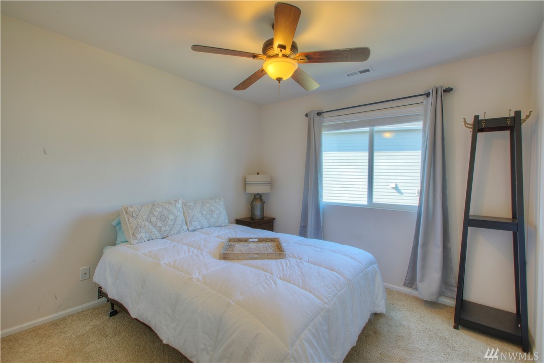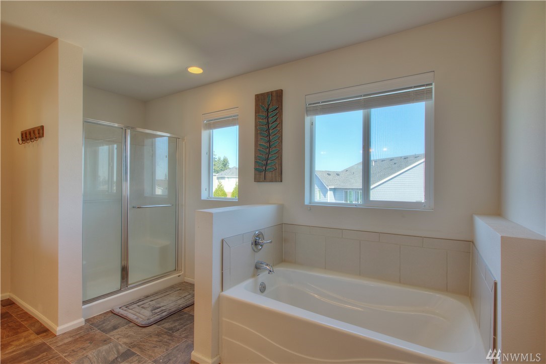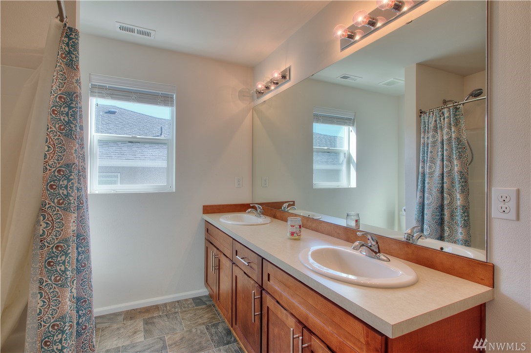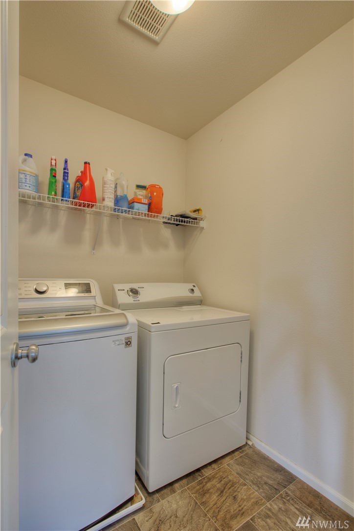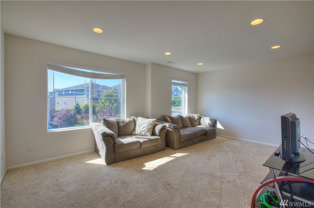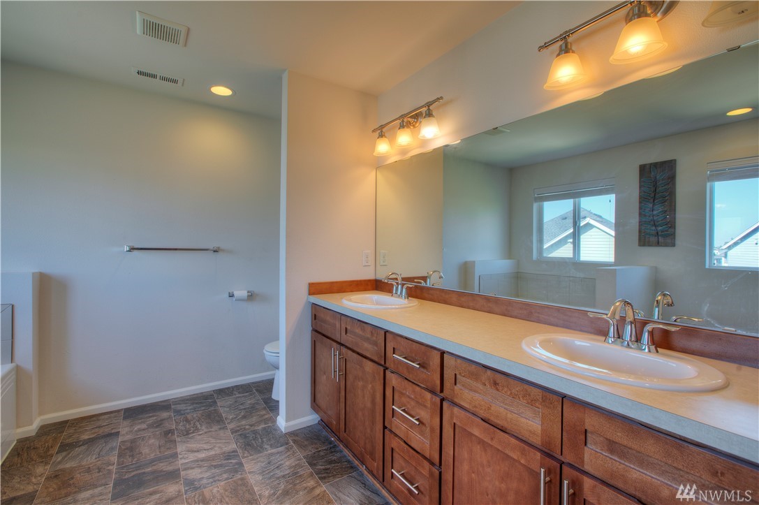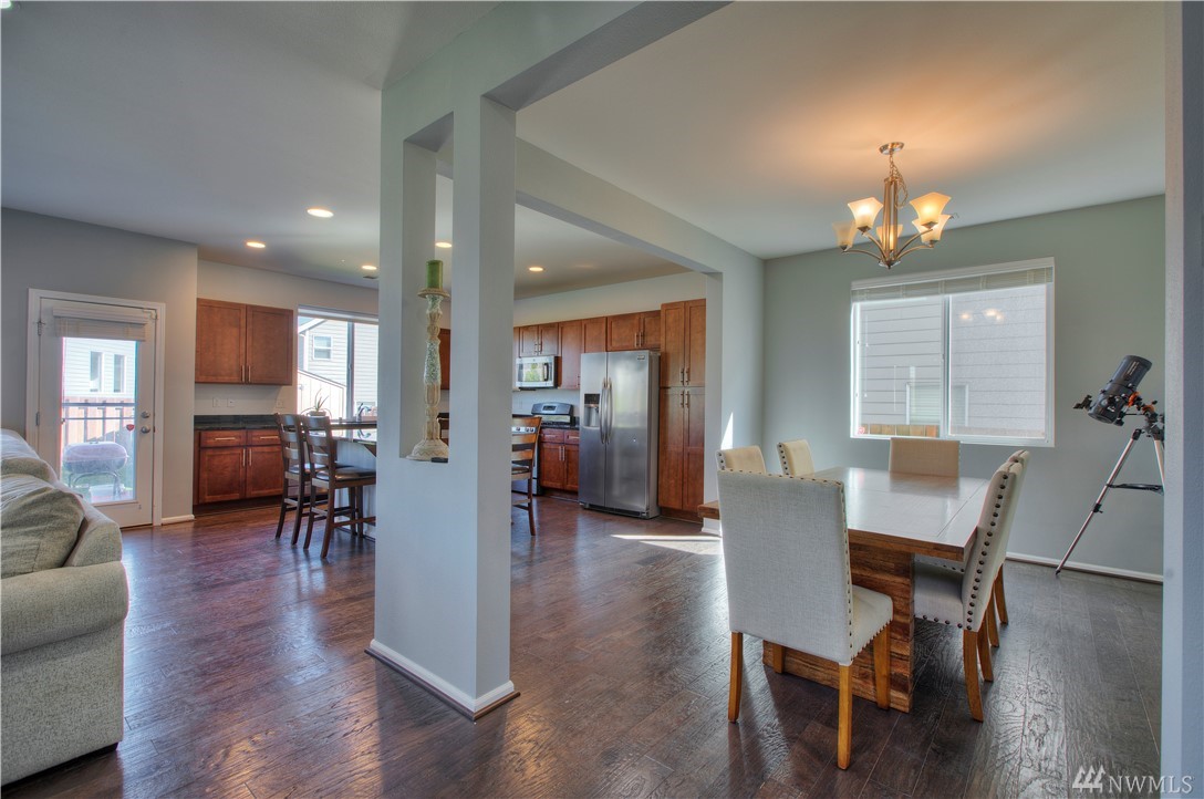 Excellent condition home in Ridgeview Estates w/upstairs Rainier views! Wide open floor plan w/high ceilings, natural light, & engineered hardwoods. Huge kitchen includes gas range, stainless appliances, & gigantic granite island. This beautiful home has fresh paint thruout & professionally cleaned carpets, & also features a fully fenced yard, large deck, & outdoor sprinkler system. Most importantly, AC! Friendly neighborhood also has many parks & playgrounds in addition to your large backyard!