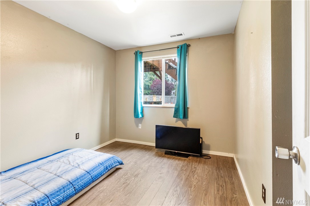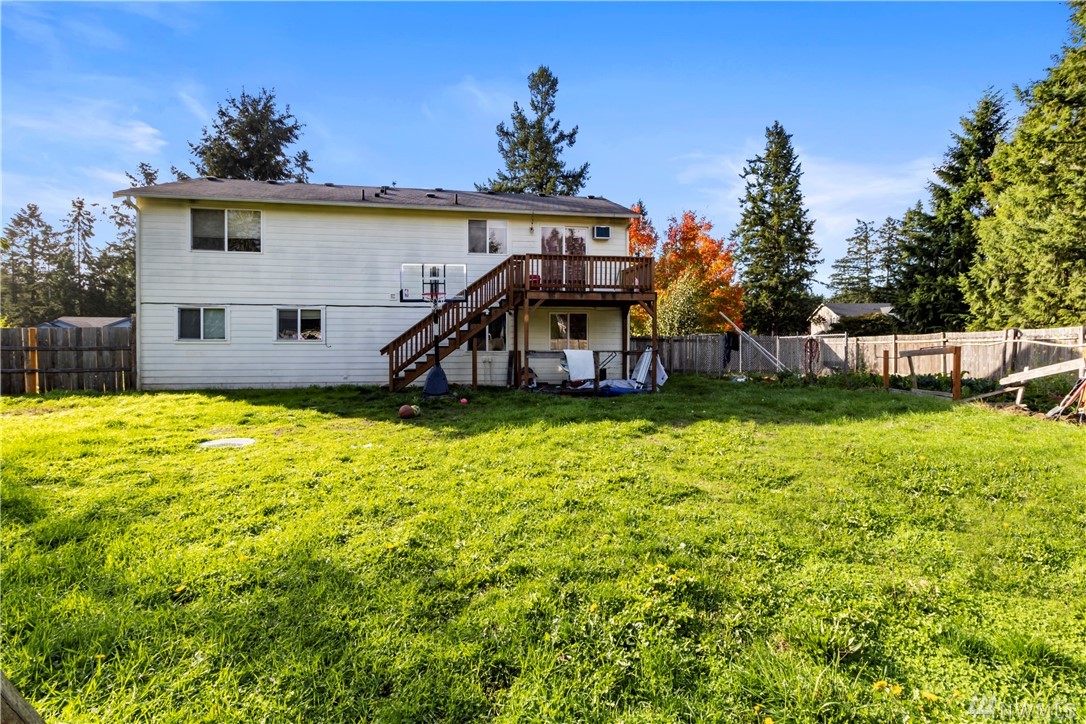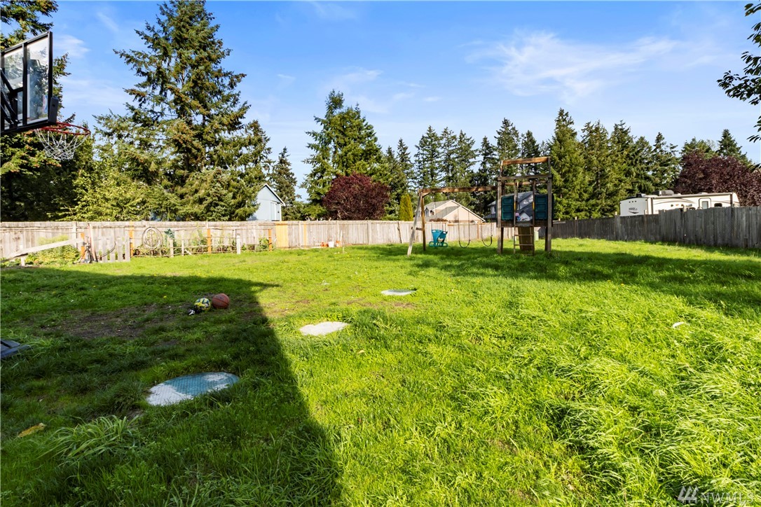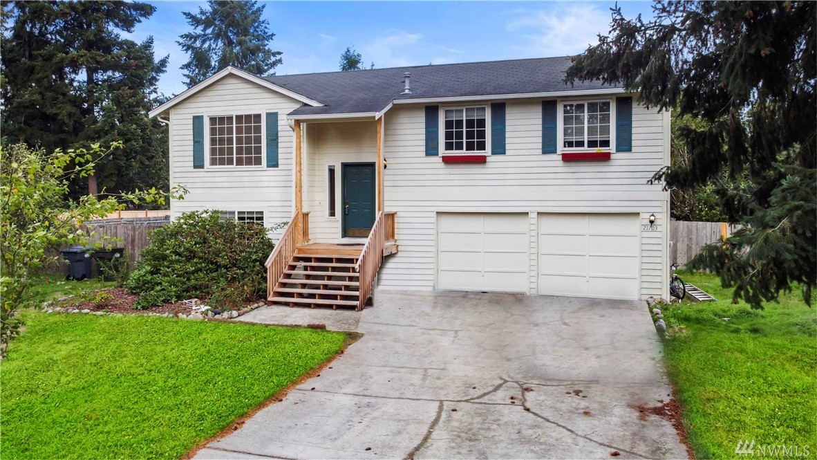 This Spanaway split level has massive variety of spaces to offer on a coveted large corner lot. Newer Laminate, interior paint, 5 bedroom, 1 full & 2 3/4 baths plus 2 bonus rooms in garage for crafts or music. Living room has gas fireplace, kitchen with hardwood floors, gas stove, dining area w/slider leads to big deck out to spacious back yard that easily accommodates an RV/Boat and garden space. Neighborhood has no HOA, is located minutes from shopping, schools, yet retains country charm.