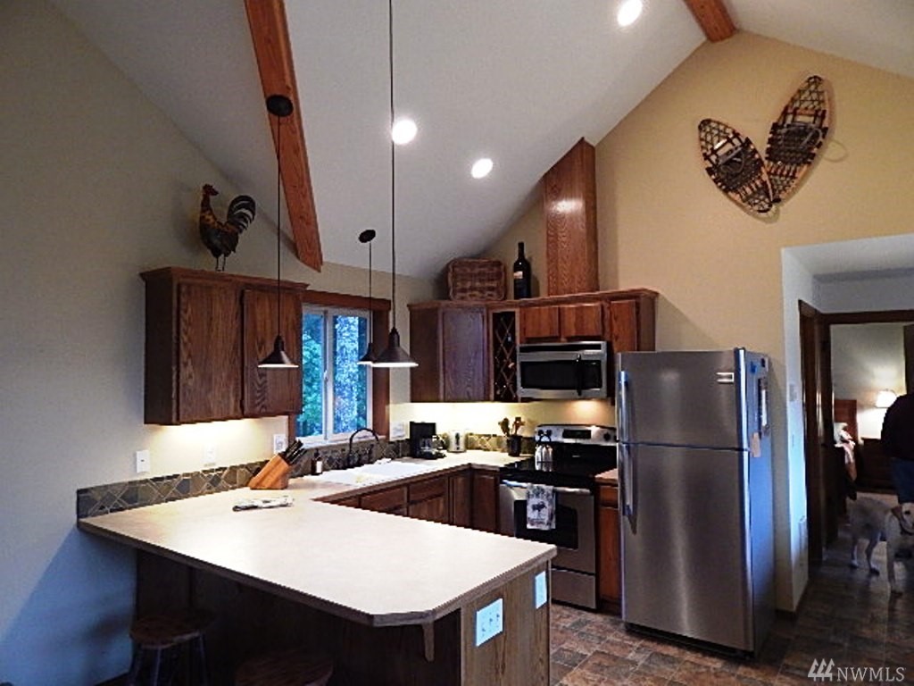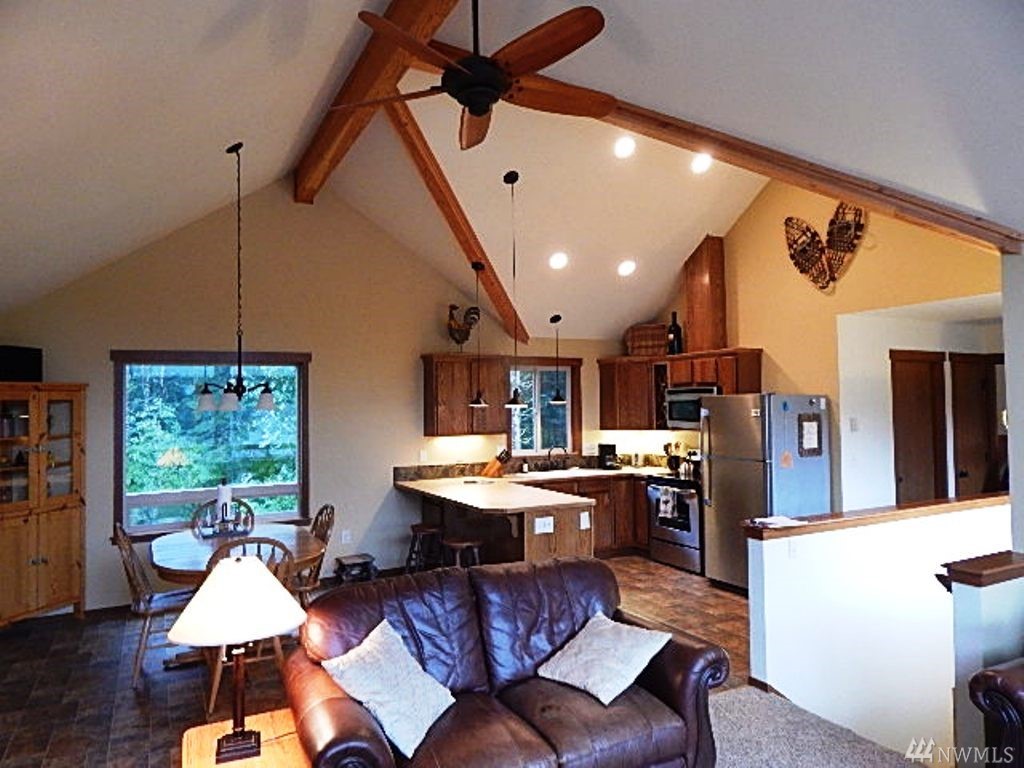 View of Mt Rainier Butter Butte Mt Tattoosh Peaks Dixon Mt. 2011 Custom built 2 story 1467 S.F. home 2 bedroom 2 bath w/mini garage. Open beam ceiling mostly turn key Hot Tub Timber Teck deck low maintenance landscape lighted trail to firepit w/shed w/power. 3 bdrm septic 2 large woodsheds or toy shelters. Mild CC&R's No HOA Packwood water, 19 miles to White Pass Ski Area located in upscale SKYLINE. Deer Elk frequent property enjoy fishing hunting hiking, so much more. Bring your agent. Enjoy!!!