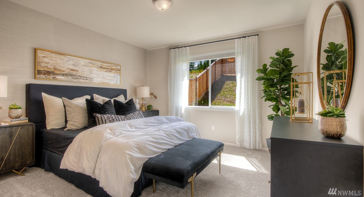 Sweeping City, Sound & Mountain views ~ The Hamilton design at Soundview Estates captures perfection in SINGLE-STORY living. Open & welcoming, w/ a spacious kitchen, dining area, & great room. Private Master Suite just off the Great Room - Conferred ceilings give the halls an impressive, grand feeling. Tucked away near the front of the home are 2 equally sized bedrooms that share a full bath. Offering versatility, accessibility and ease. Backs to private greenspace for unmatched privacy.