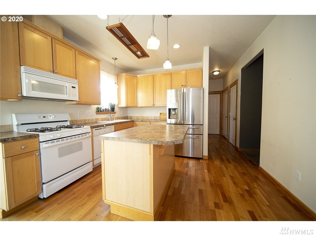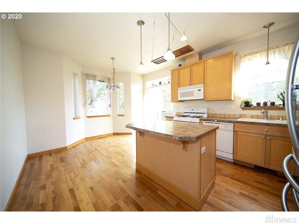 Adorable 2-story home w/ 3 bedroom & 2 baths with the Master on the main. High ceilings throughout & beautiful hardwood floors! Living Room, gas fireplace, a bright and open kitchen w/ island, breakfast bar, custom wood cabinets, dining area & slider to deck. Gas forced air heat & central air. Front porch w/ sitting area. Landscaped fenced backyard. So much more, come look today!