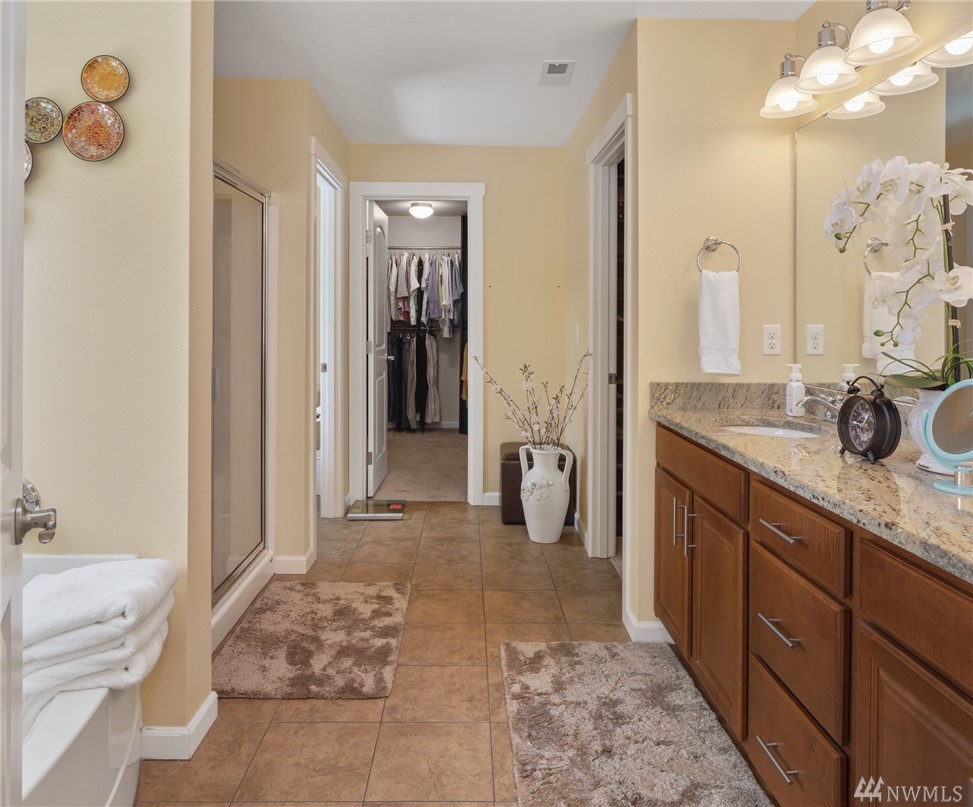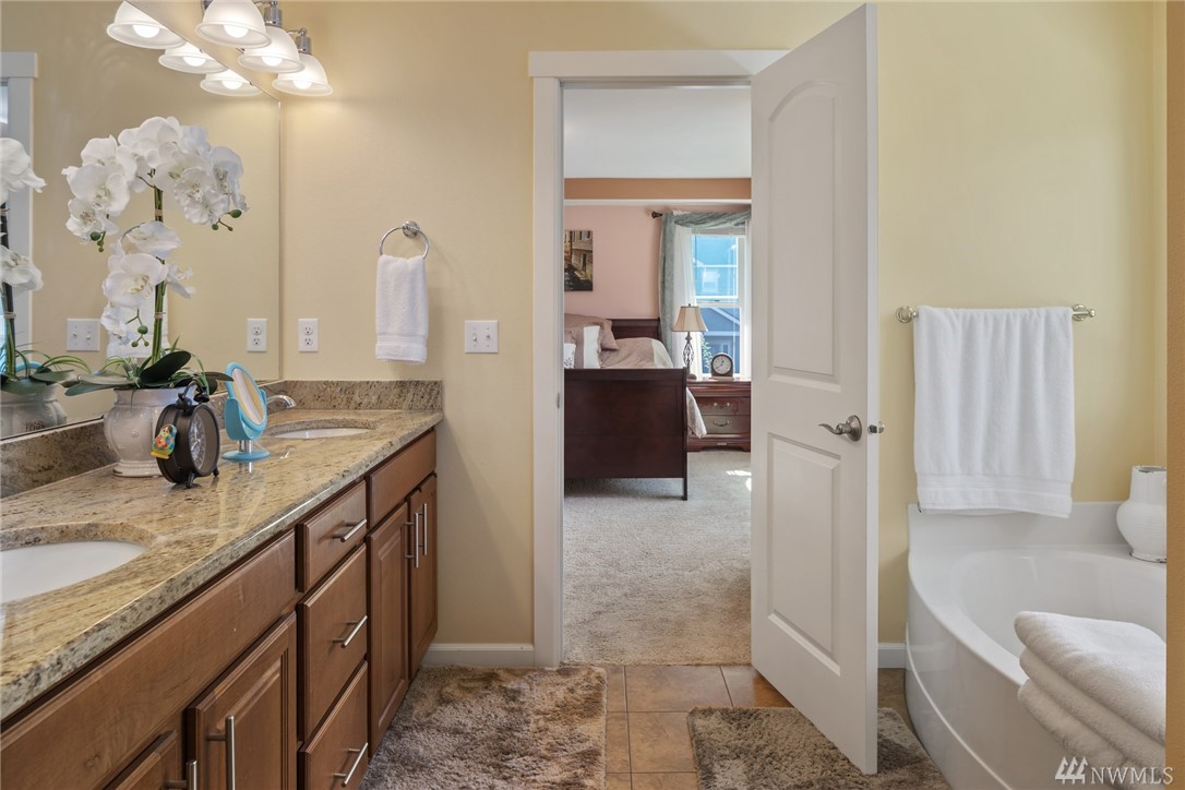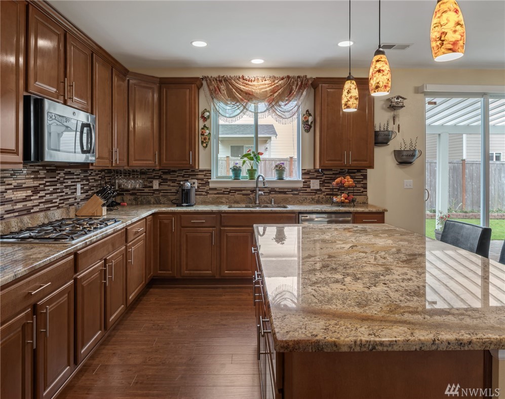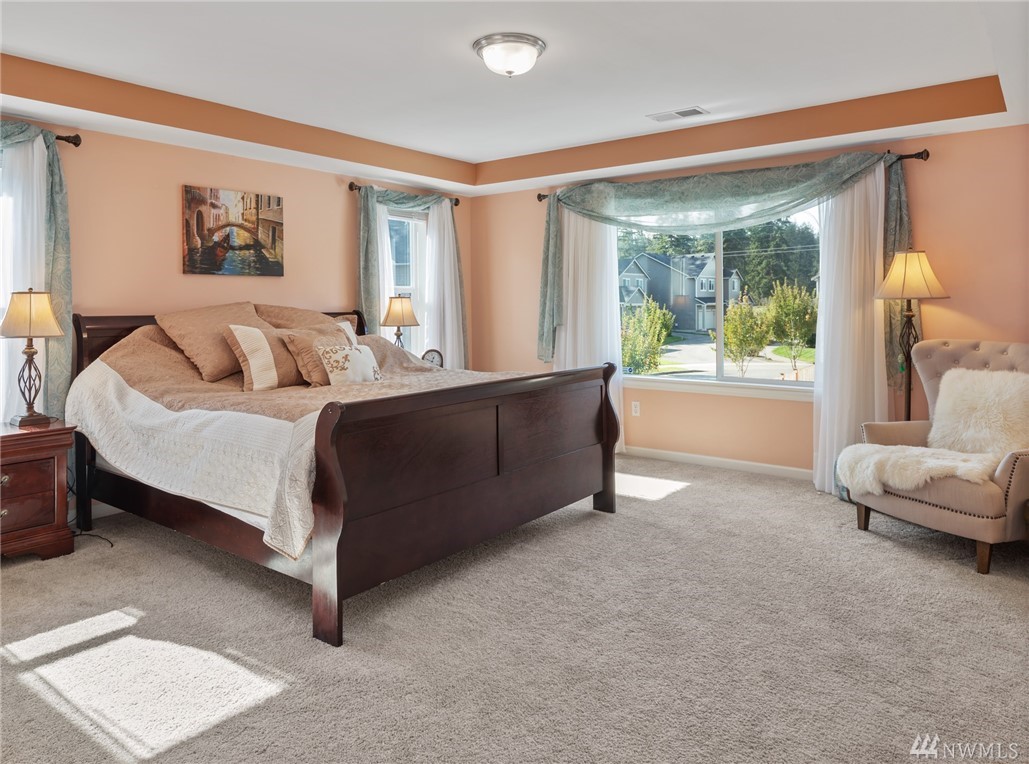 Beautiful corner lot home in desirable Edgeview at Lakeland. This well appointed open floor plan features a chef's kitchen w/double oven, 40" upper cabinets, granite counters & walk-in pantry, spacious loft & a huge master suite w/5pc master bath and two walk-in closets w/custom closet systems. Downstairs bedroom w/walk-in closet & adjacent 3/4 bath offers great guest space or 2nd master bedroom option. Covered patio, A/C, garden space w/irrigation & extra wide garage for storage or work areas.