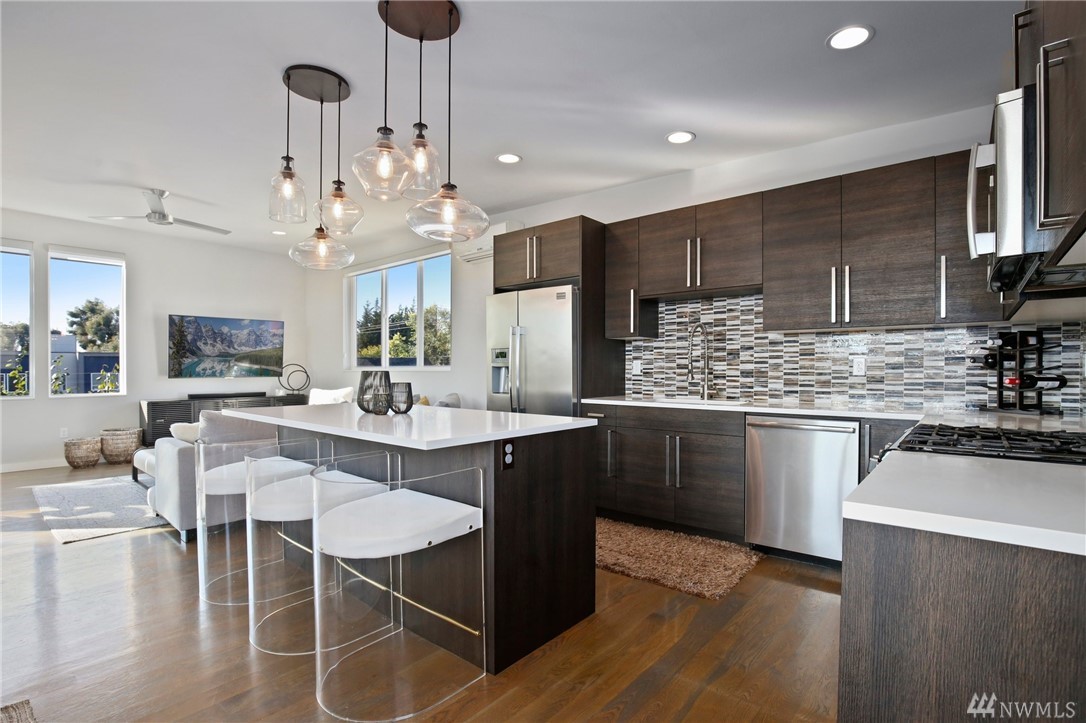 Located in the heart of Ballard, this 4 Star Built Green home features the best of high-end construction and proximity to everything you need – bike, ride, or walk to everything! Offset from the street, this home is quiet, private and secure. Its unique square floorplan maximizes the space within each room and creates a large open feel in the main living area. Don’t miss the quartz countertops, gas range, all-weather balcony with peek-a-boo views, high ceilings, and the large 1 car garage.