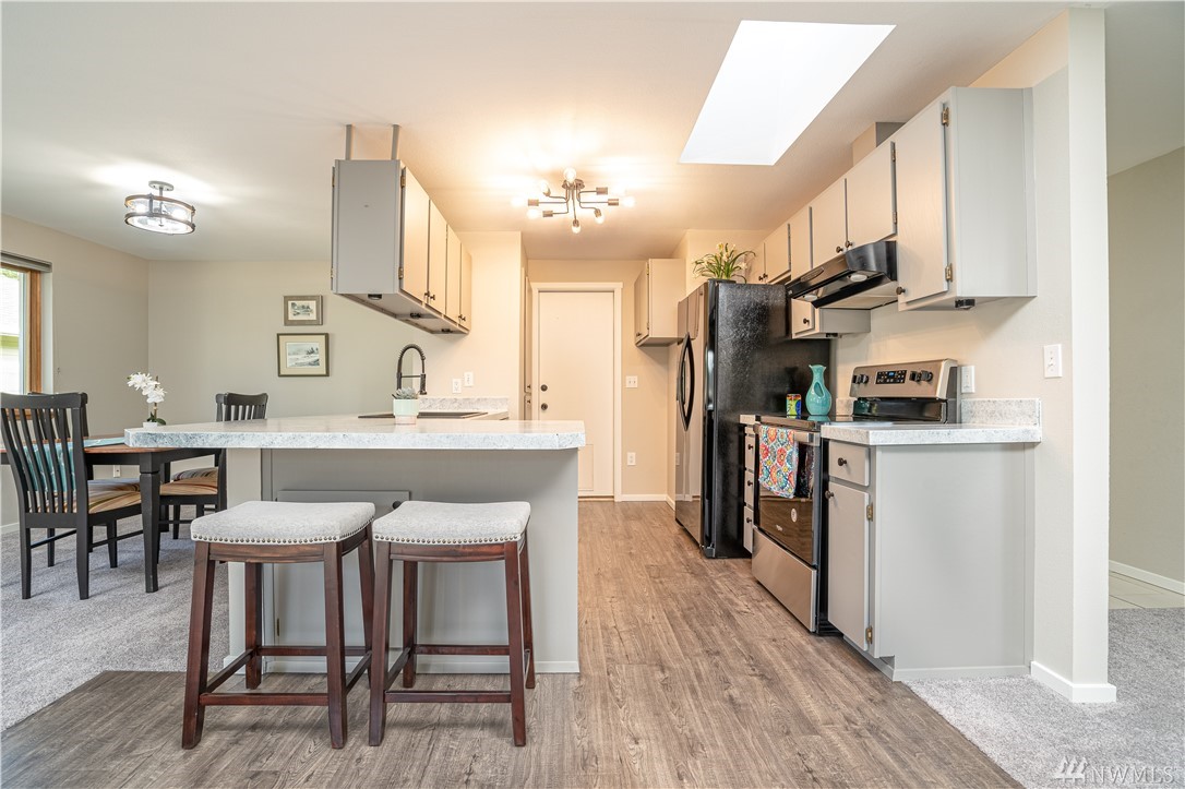 Newly remodeled Rambler in desirable Mukilteo school district. W/in 5 miles to Boeing. This home features all new appliances, new washer and dryer, new gas hot water tank, new exterior paint, carpet, laminate & tile throughout. Stay cool with central AC in the summer & warm with a wood burning stove and hot tub in the winter. Home also has energy efficient windows, French drain and a fully insulated garage. Enjoy your quiet evenings with soundproof boards on the back of the home. Welcome Home!
