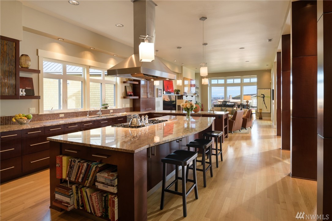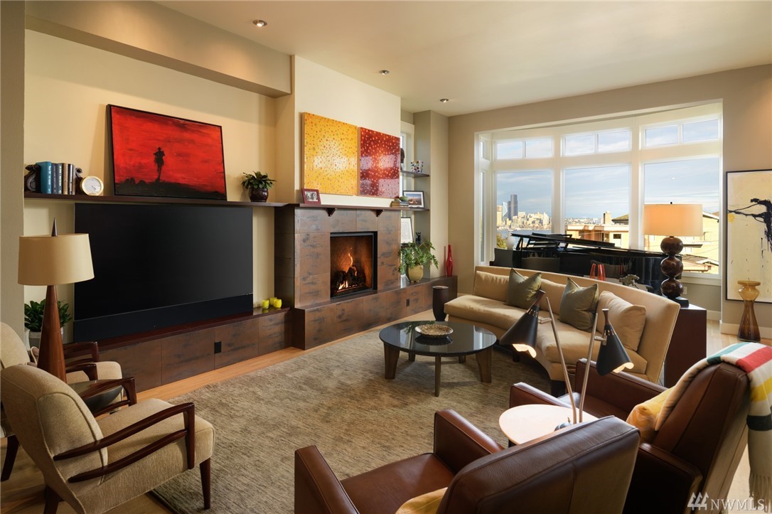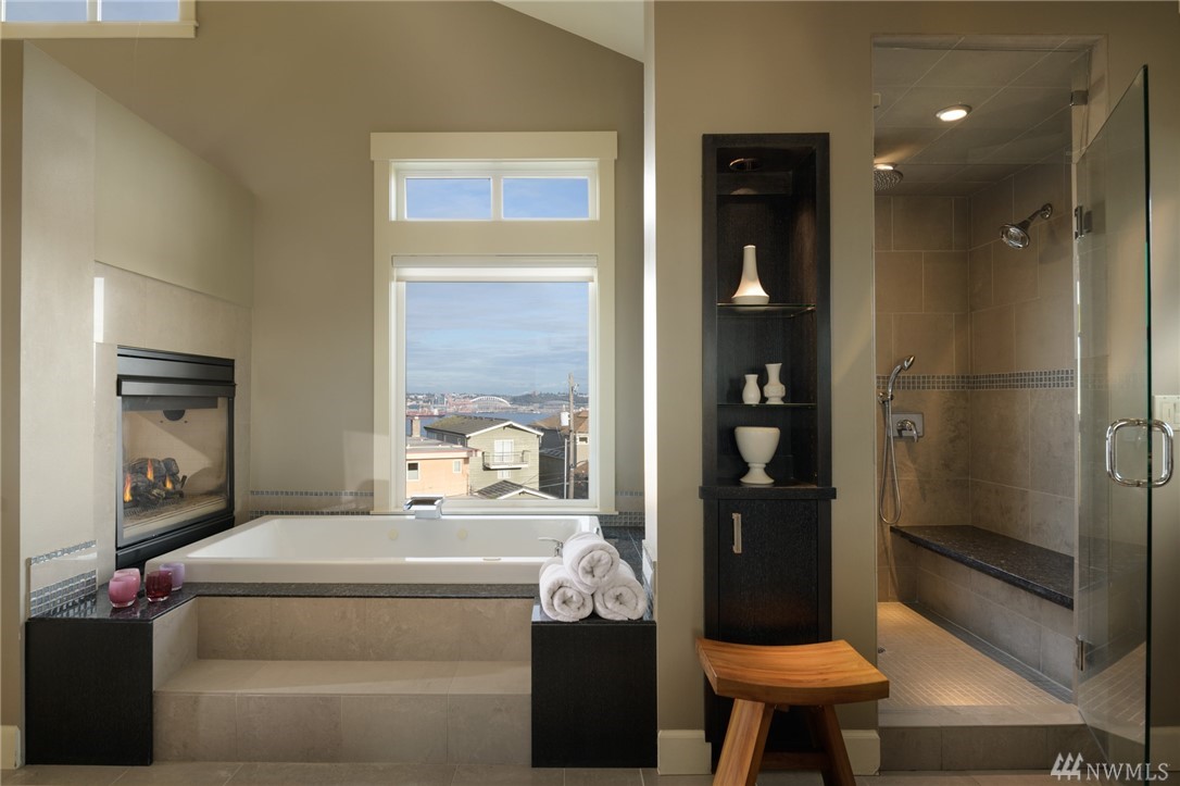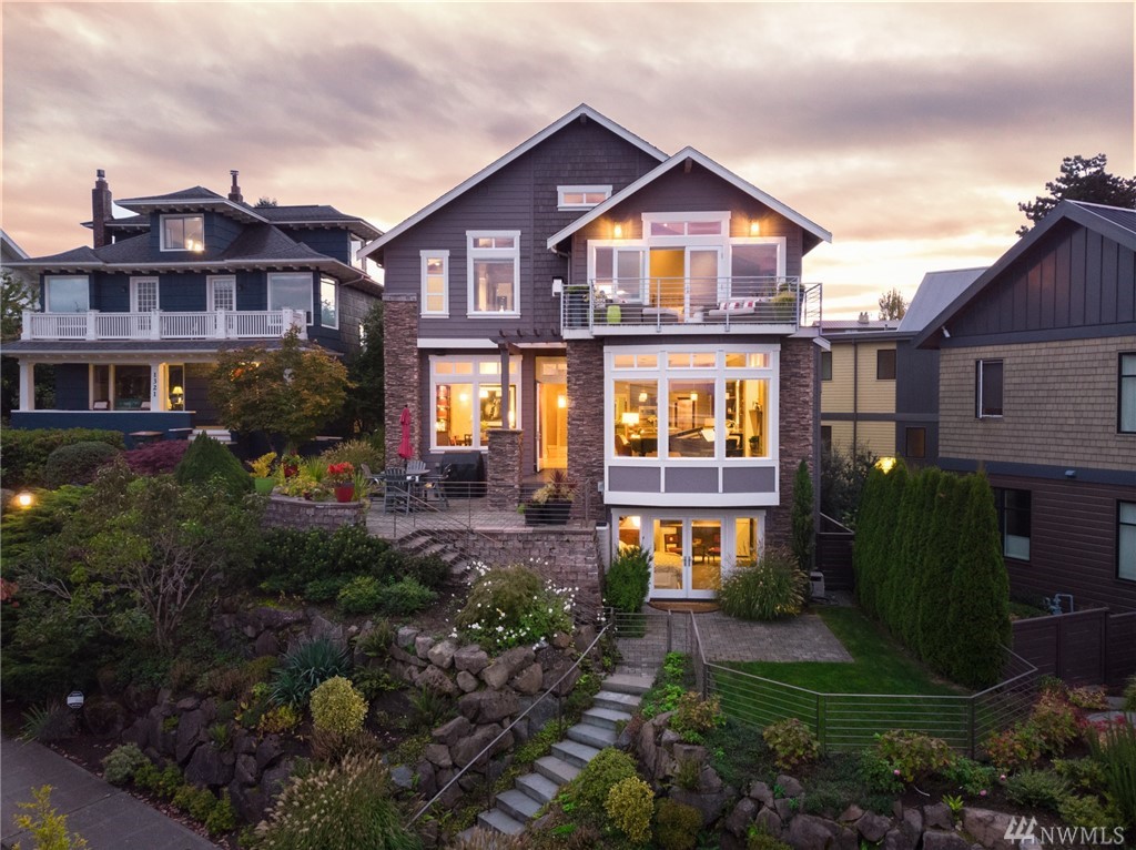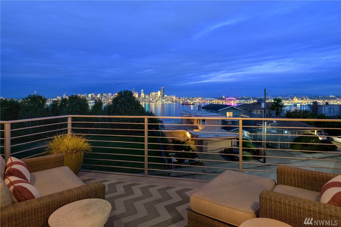 Extraordinary North Admiral view home in West Seattle, adjacent to Hamilton Viewpoint Park. This lovely 4 bedroom home has stunning views of Elliott Bay, Cascades & Seattle skyline. Exceptional master suite w/5 piece spa bath, fireplace, washer/dryer, walk-in closet & deck. Gourmet kitchen w/11' slab granite island, walk-in pantry, double oven, wet bar & 6 burner Wolf range. Daylight basement could be easily converted to ADU with its own entrance. Newly landscaped gardens, lighting & irrigation.