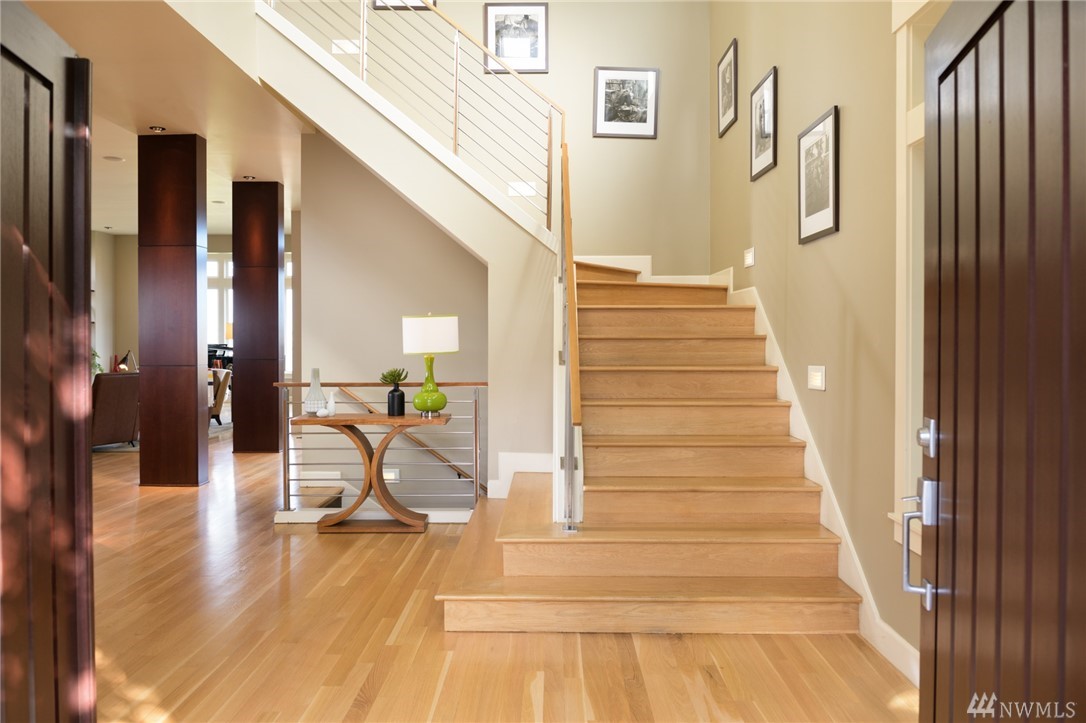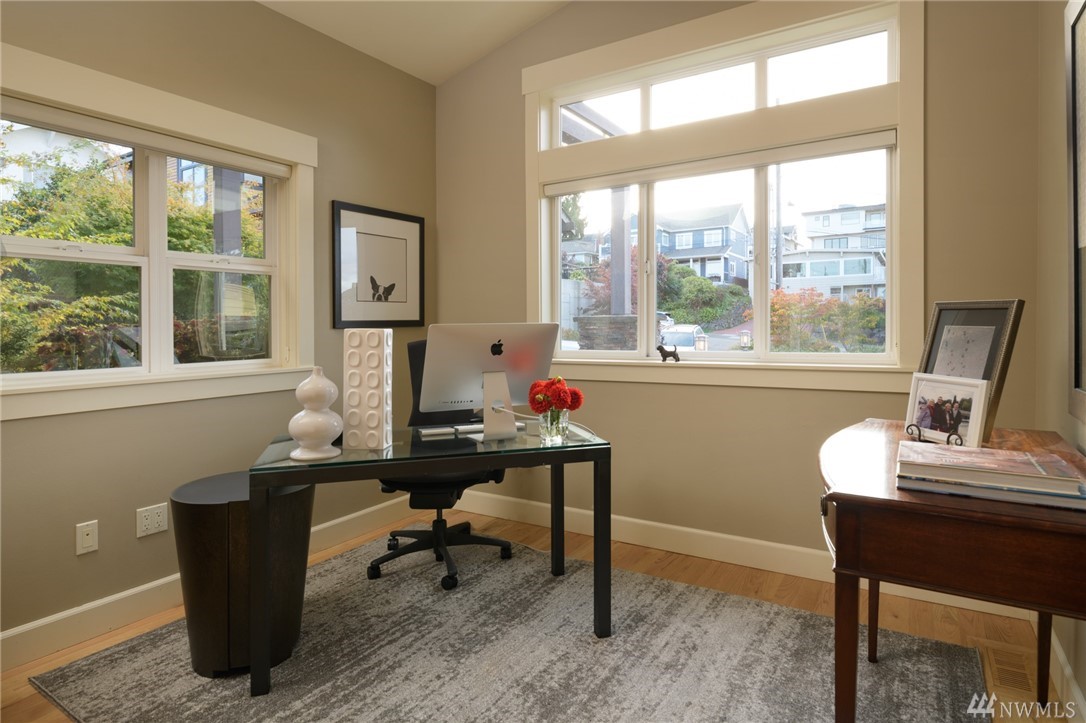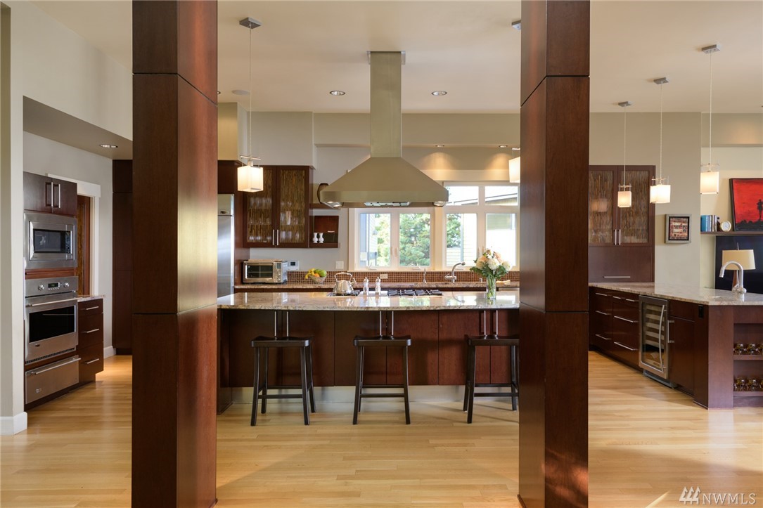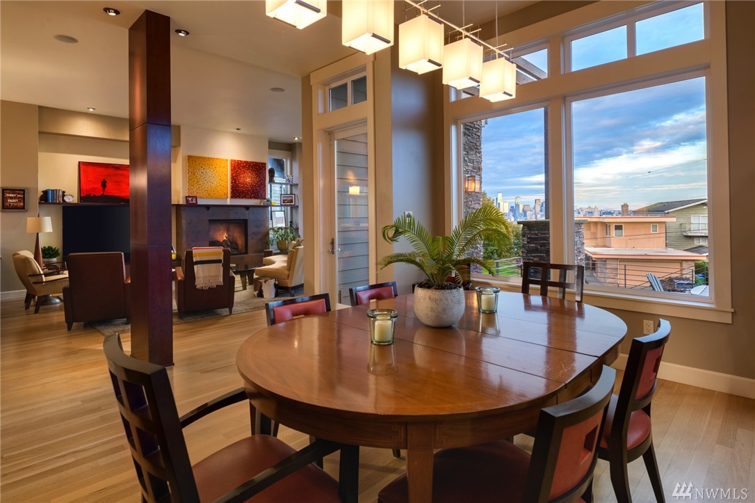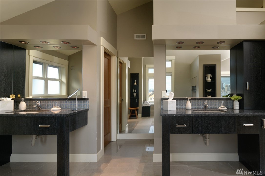 Extraordinary North Admiral view home in West Seattle, adjacent to Hamilton Viewpoint Park. This lovely 4 bedroom home has stunning views of Elliott Bay, Cascades & Seattle skyline. Exceptional master suite w/5 piece spa bath, fireplace, washer/dryer, walk-in closet & deck. Gourmet kitchen w/11' slab granite island, walk-in pantry, double oven, wet bar & 6 burner Wolf range. Daylight basement could be easily converted to ADU with its own entrance. Newly landscaped gardens, lighting & irrigation.