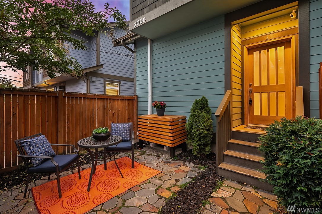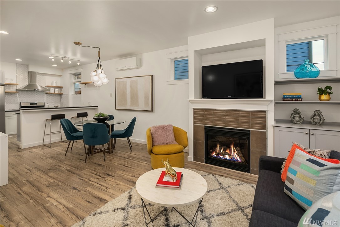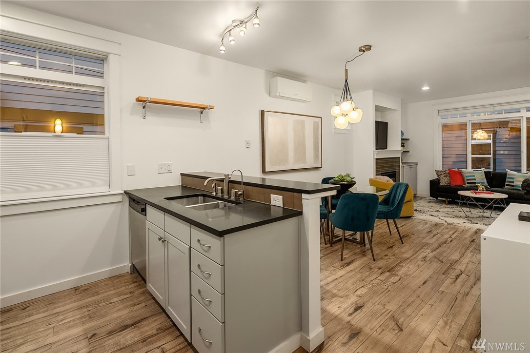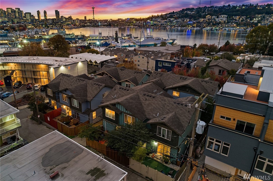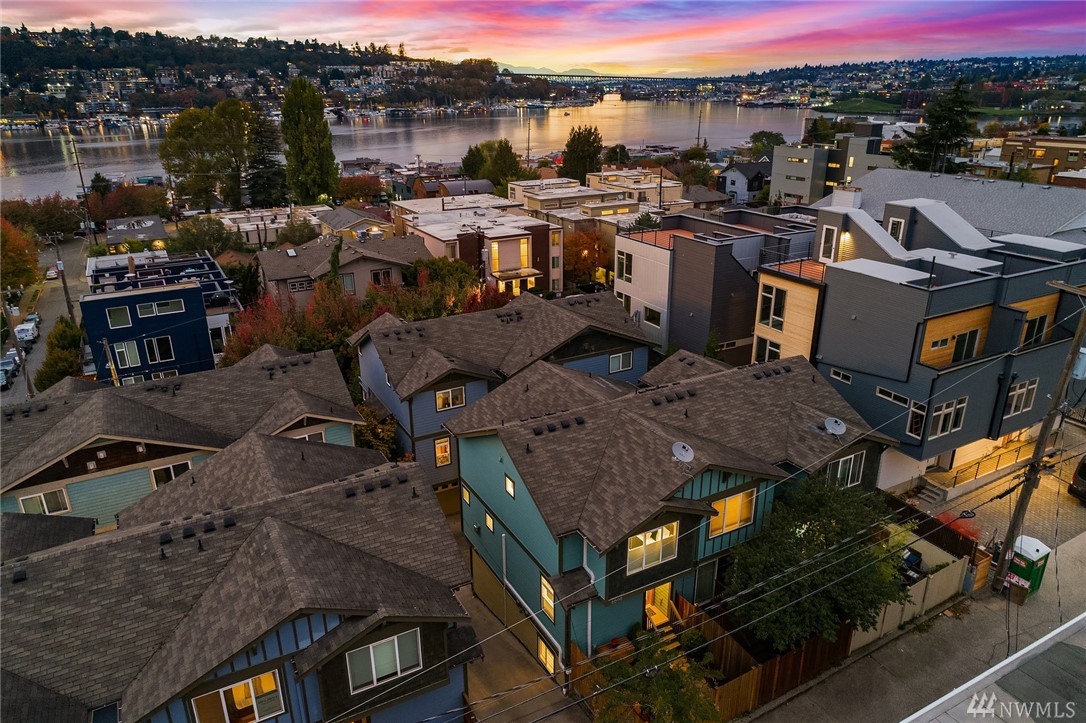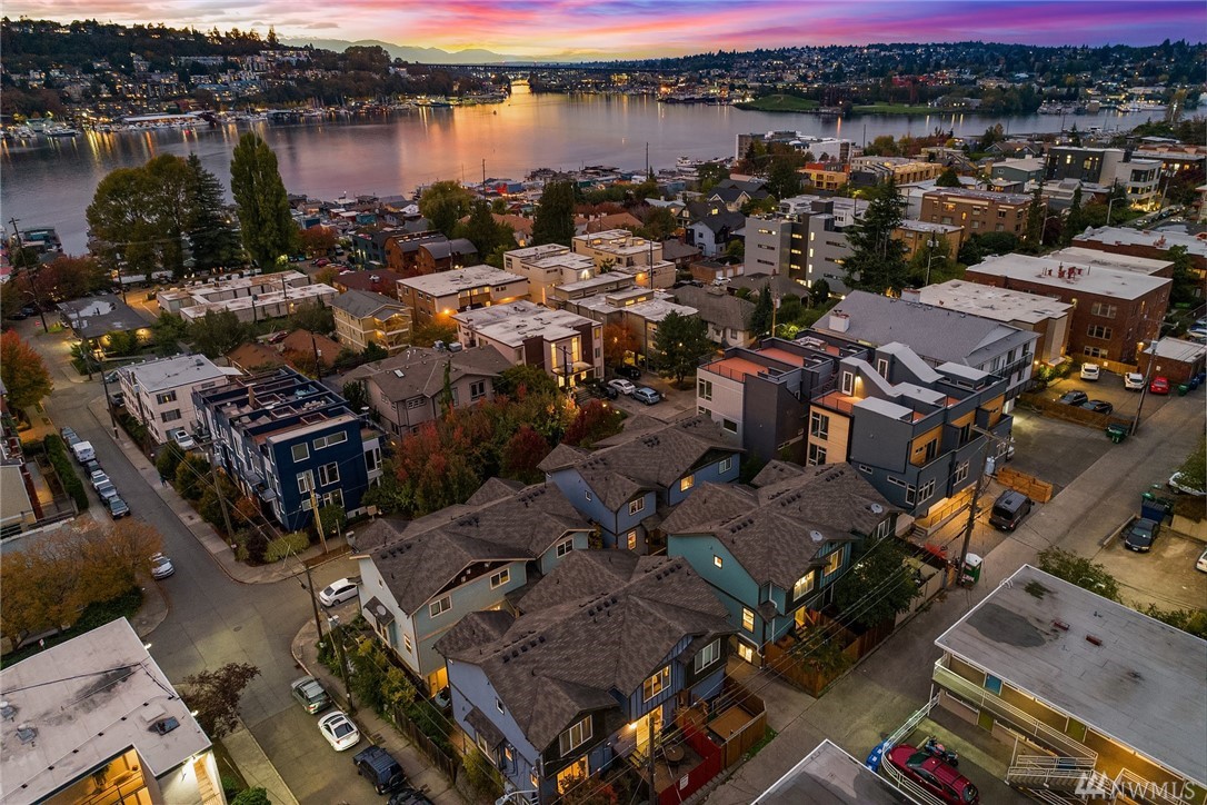 Steps from the lively Lake Union waterfront, this contemporary & bright Eastlake townhome offers optimal urban living. Peaceful, off-street patio leads to open-concept main living area. Note the hardwood floors, striking millwork & stylish gas FP in LR. Well-appointed kitchen features sleek cabinetry, SS appliances & granite counters. Master w/en-suite bath & 2nd bedroom on upper level. Separate office area, Mini-splits provide heat and A/C. Attached garage and close to SLU, DT & I-5/520.