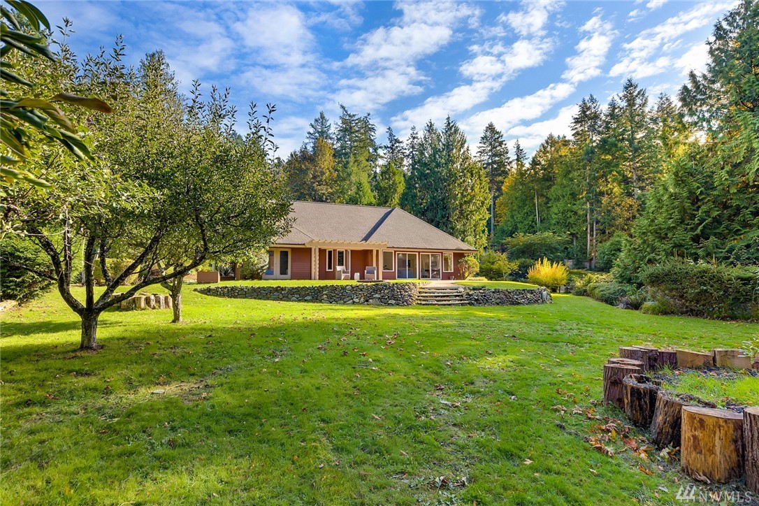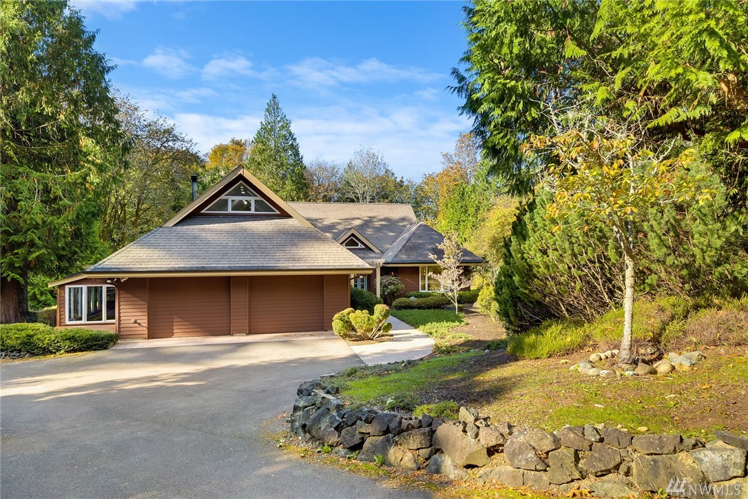 Spacious and secluded open-plan custom home on sunny 1.3 acres bordering 7+ acres of vacant park land. Mainly one-level living plus large, skylit upper-level office/flex space. Hydronic in-floor heat for year-round comfort, French doors opening to patio and fire pit overlooking mature landscaping and fruit trees. 4-BR drainfield for future ADU. Other amenities include an attached greenhouse, large garage with shop space and generator.