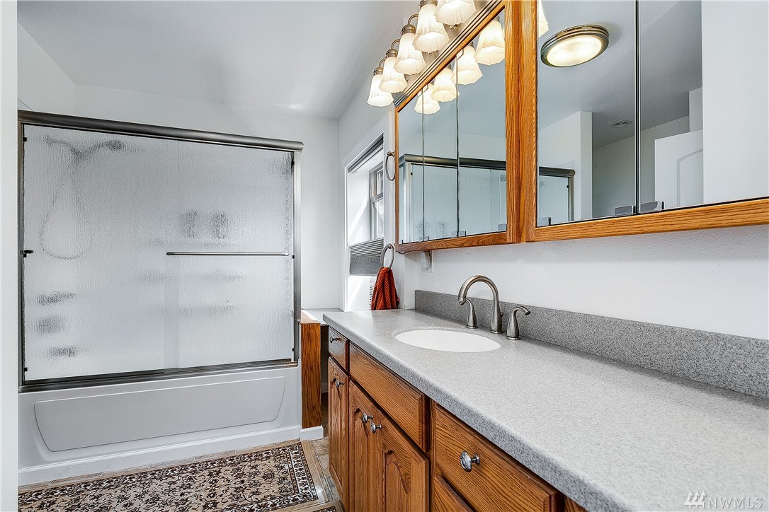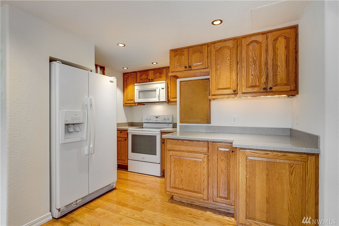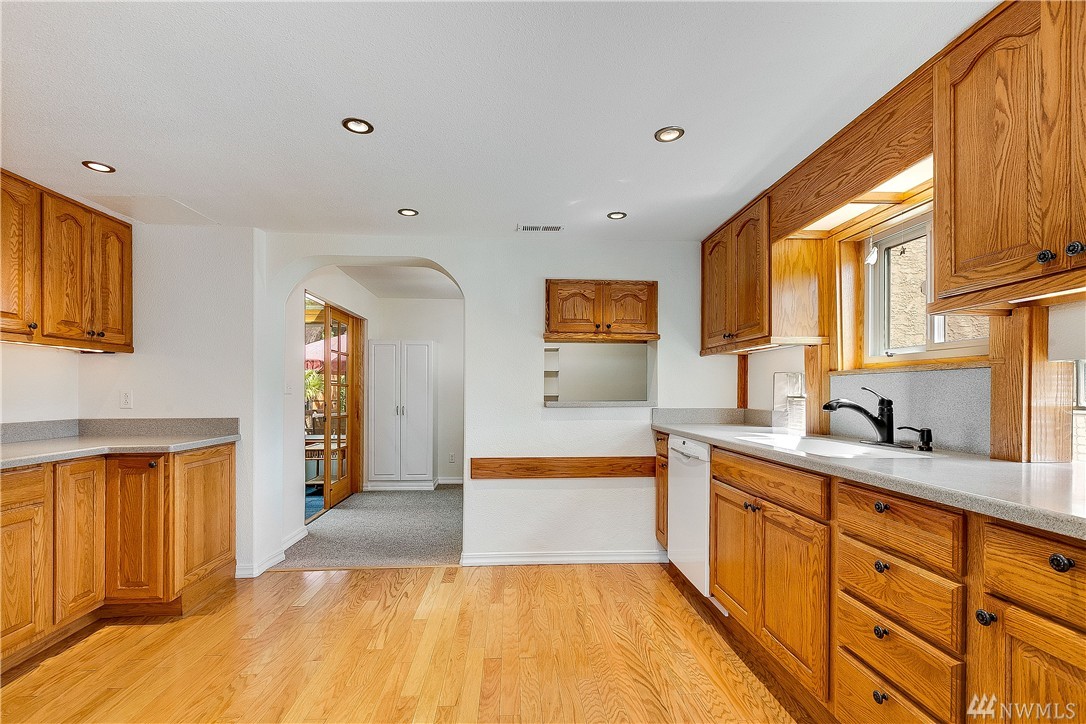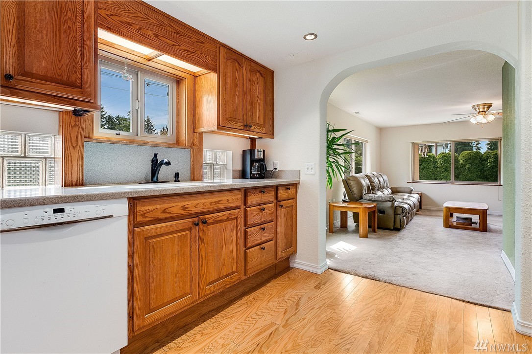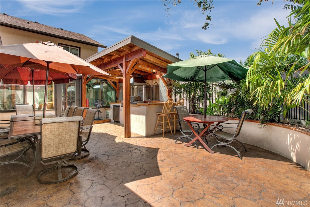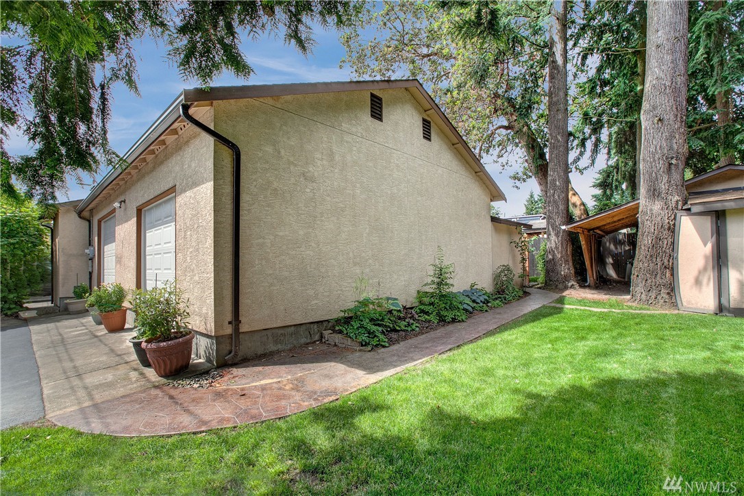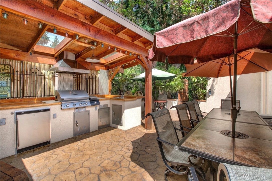 Entertainer’s dream! Extensively remodeled in 2009 w/updates to kitchen, baths & master bedroom w/walk-in closet! Located on park-like corner lot w/lovely sun room that overlooks party patio w/built-in BBQ, ice maker, refrigerator & wet bar. Mechanic’s dream garage w/half bath, lots of work space, storage & extra high doors. Solar panel rebates f/City Light pay nearly all yearly heat & electrical bills! Minutes f/ Northgate & future light rail, easy commute DT & 5-min walk to North Acres Park.