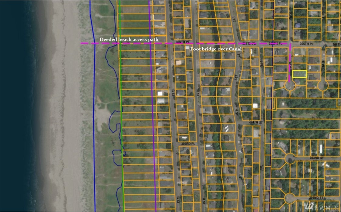 Tame this wild wilderness into a lovely home site. Pick and choose the greenery you wish to keep. High ground at the end of quiet and quaint K Place. This South Surfside blank canvas lot lets you slip into Ocean Park for coffee, groceries, galleries and more. OR leave your vehicle behind and saunter on down to the beach a mere 4 blocks away. Cross a sweet little footbridge over the canal to the shore. Highest building height the county allows at 35'...maybe a treasured peek at the ocean awaits?