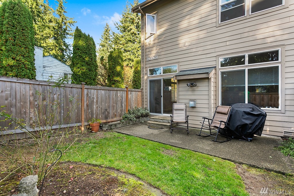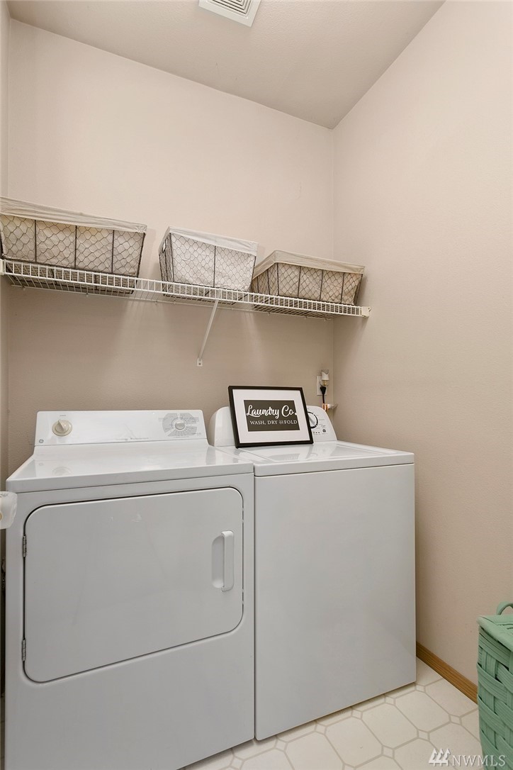 laundry room with side-by-side washer/dryer. Living-room opens onto a charming patio & lawn space for the perfect