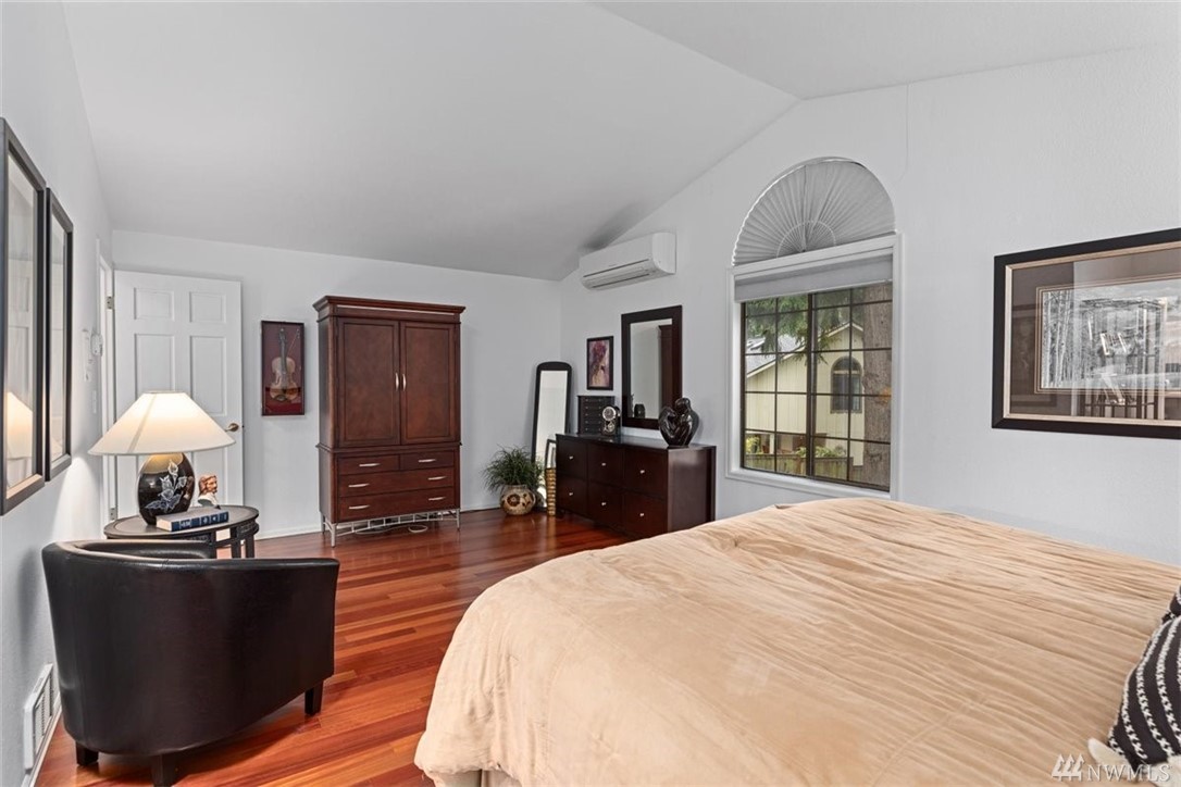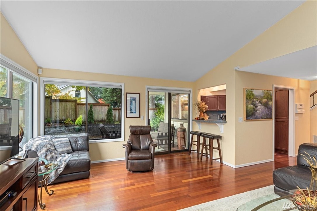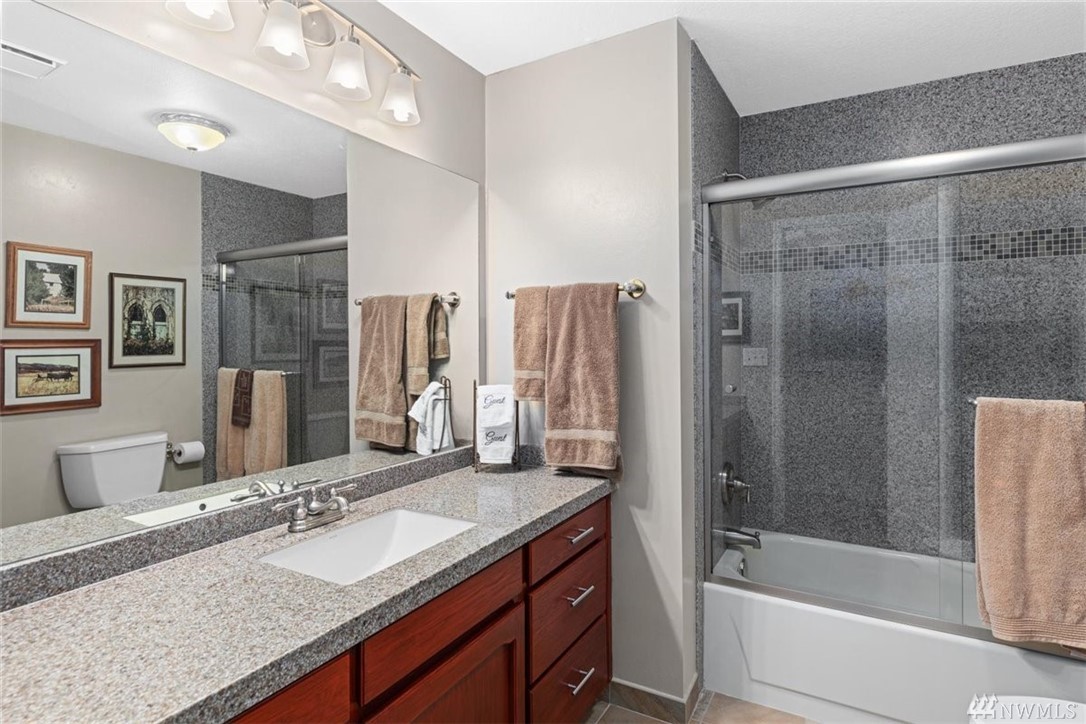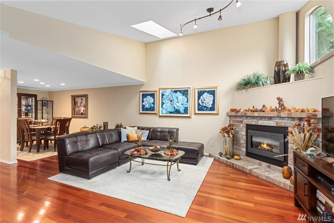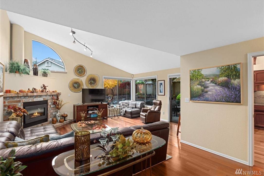 Beautifully updated & maintained Mill Creek town home featuring 2 master suites - one on each level! With 2,295sf of interior living space, additional features include gleaming hardwoods, large skylights, inviting kitchen w/black appliances, open family rm with focal cozy gas fireplace, main floor den & more! Restful master suite with attached full bath and large walk in closet. Heat pump (A/C), attached 2 car garage & private back deck/patio space w/built in BBQ area! Home is move in ready!