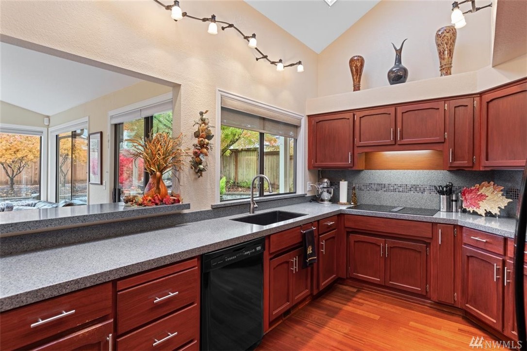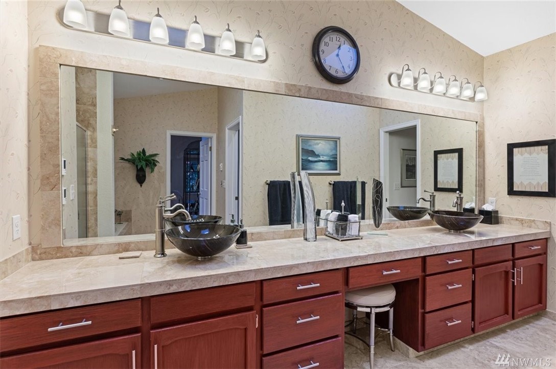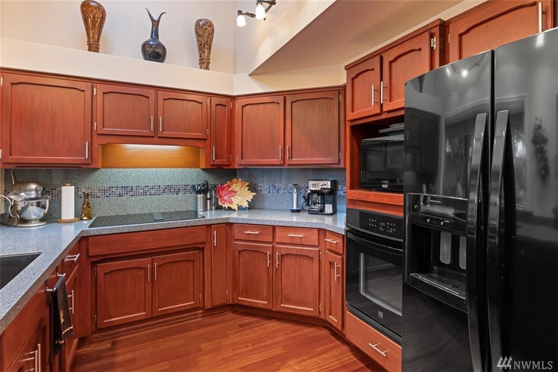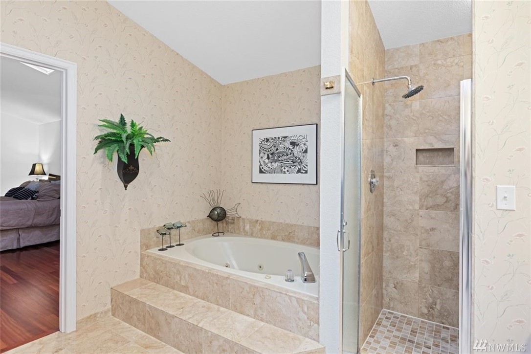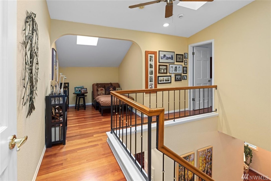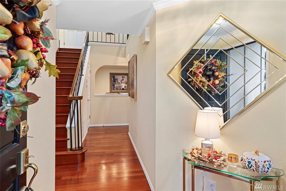 Beautifully updated & maintained Mill Creek town home featuring 2 master suites - one on each level! With 2,295sf of interior living space, additional features include gleaming hardwoods, large skylights, inviting kitchen w/black appliances, open family rm with focal cozy gas fireplace, main floor den & more! Restful master suite with attached full bath and large walk in closet. Heat pump (A/C), attached 2 car garage & private back deck/patio space w/built in BBQ area! Home is move in ready!