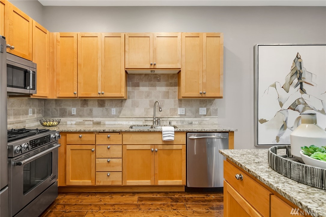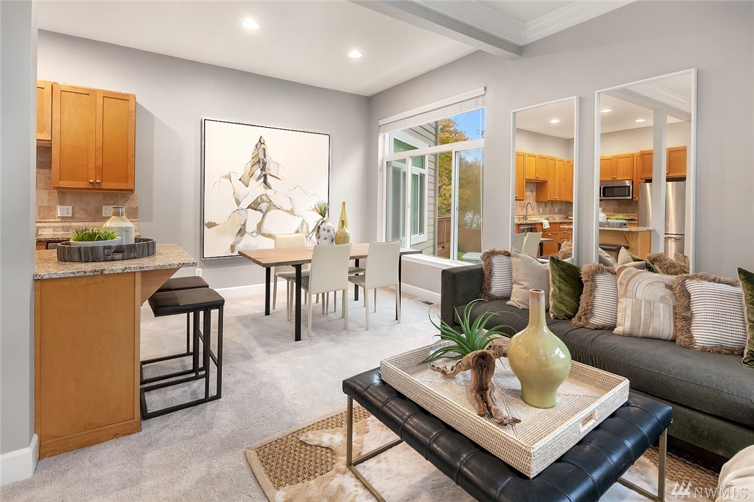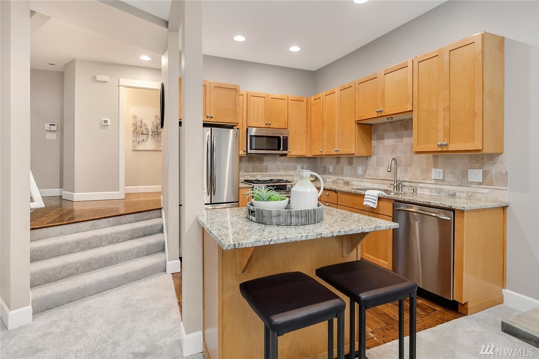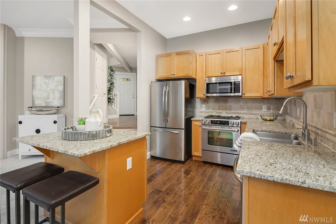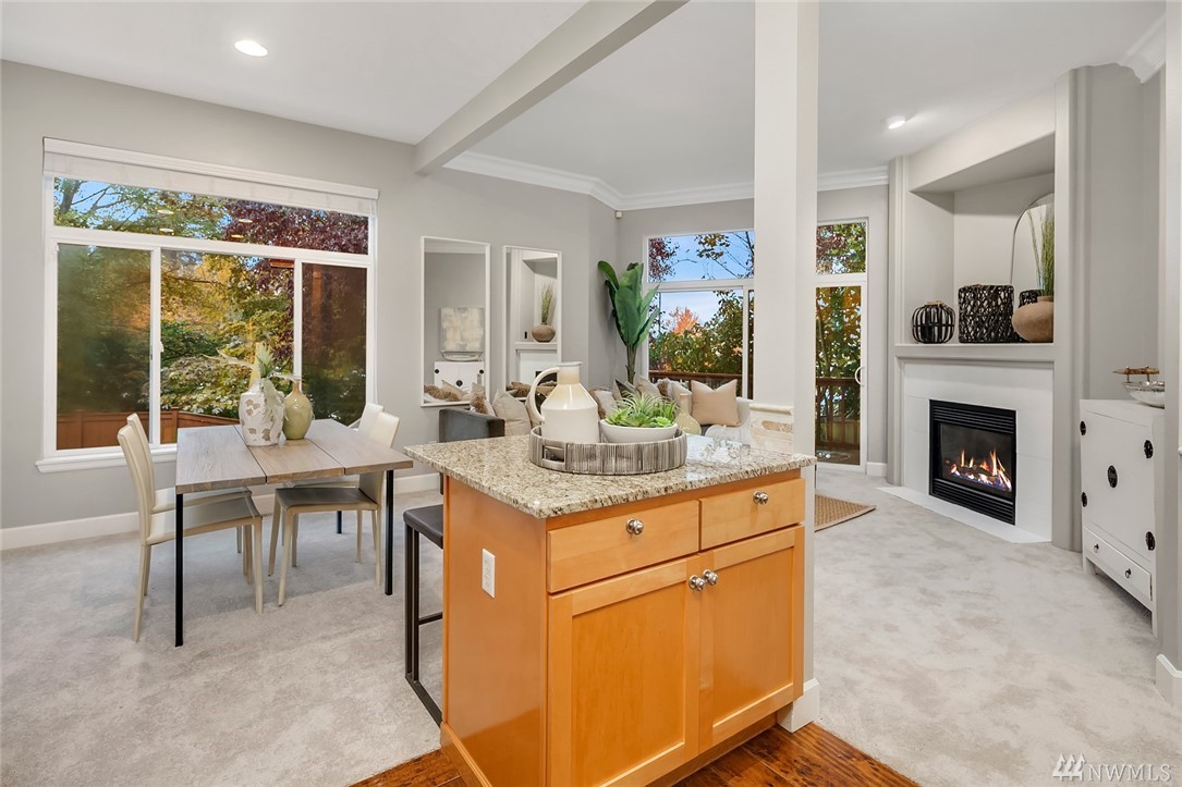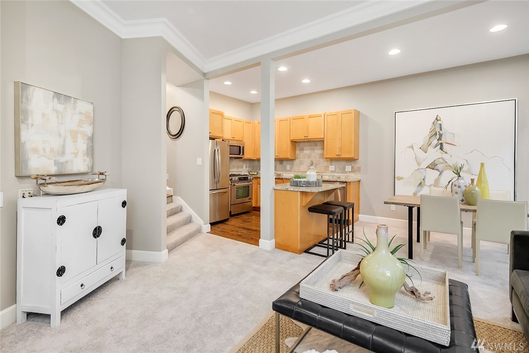 Beautiful Downtown Kirkland Townhouse walking distance to Kirkland Urban, Google & the waterfront. This 3 bed 2.5 bath home features an incredible roof top deck w/lake views. Open floorplan w/vaulted ceilings boasts inviting living spaces w/fireplace, kitchen w/new appliances & A/C. The entertainers deck leads to the spacious backyard. Upstairs boasts a large master bedroom, bath and walk in closet with 2 additional spacious bedrooms & home office area. Prime location w/quick commute to 405.