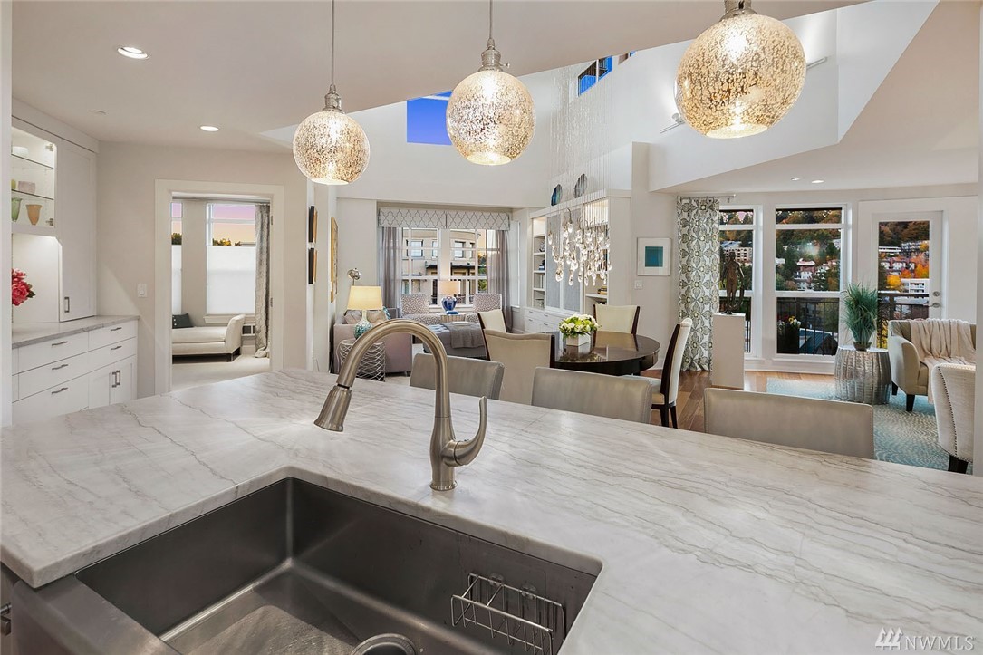 Set in the heart of coveted downtown Mercer Island, this stunning top-floor penthouse has been completely remodeled with stylish new finishes and high-end designer details. Sun-drenched spacious interiors feature chef’s kitchen, open concept living, dining, family room and double height ceilings. A loft office and bonus room plus a huge private rooftop deck make this the ideal spot to entertain, work and play. Generous storage and 2 parking spots in secure garage. Steps to parks, trails, cafes and groceries with easy access to Seattle, Bellevue and light rail. Luxury urban living at its finest!