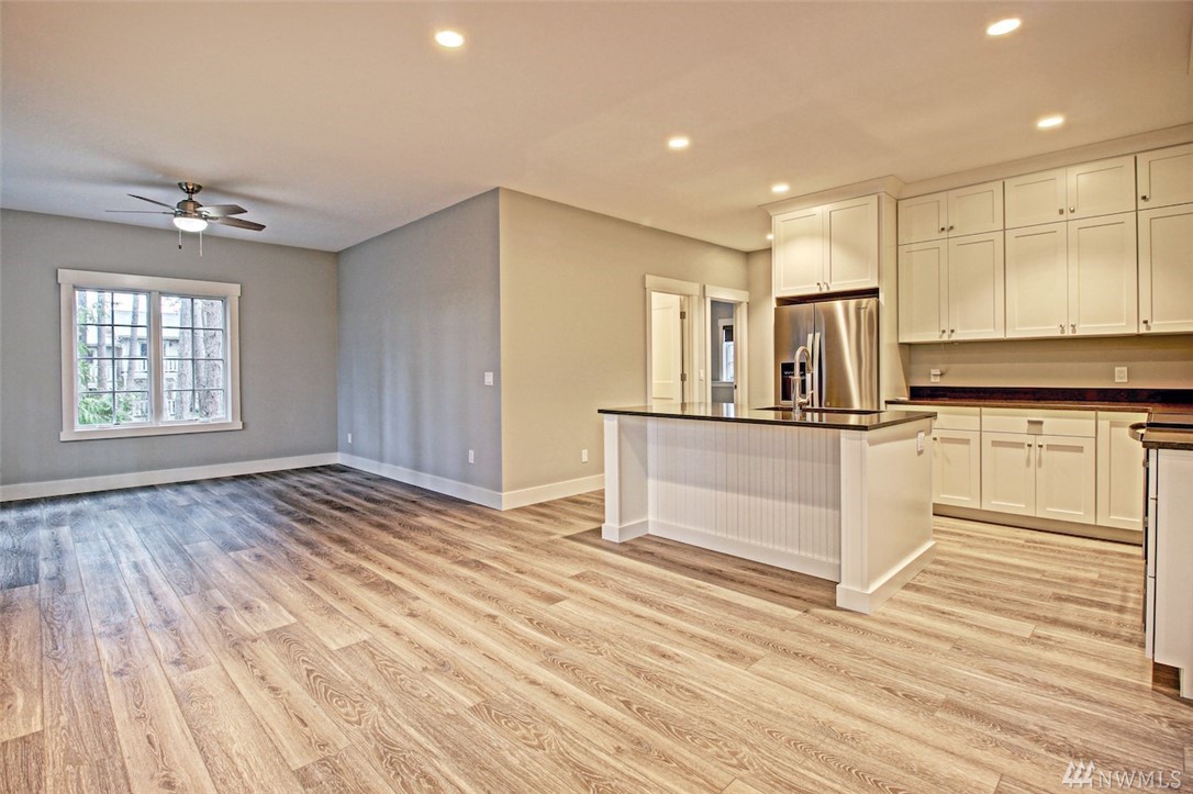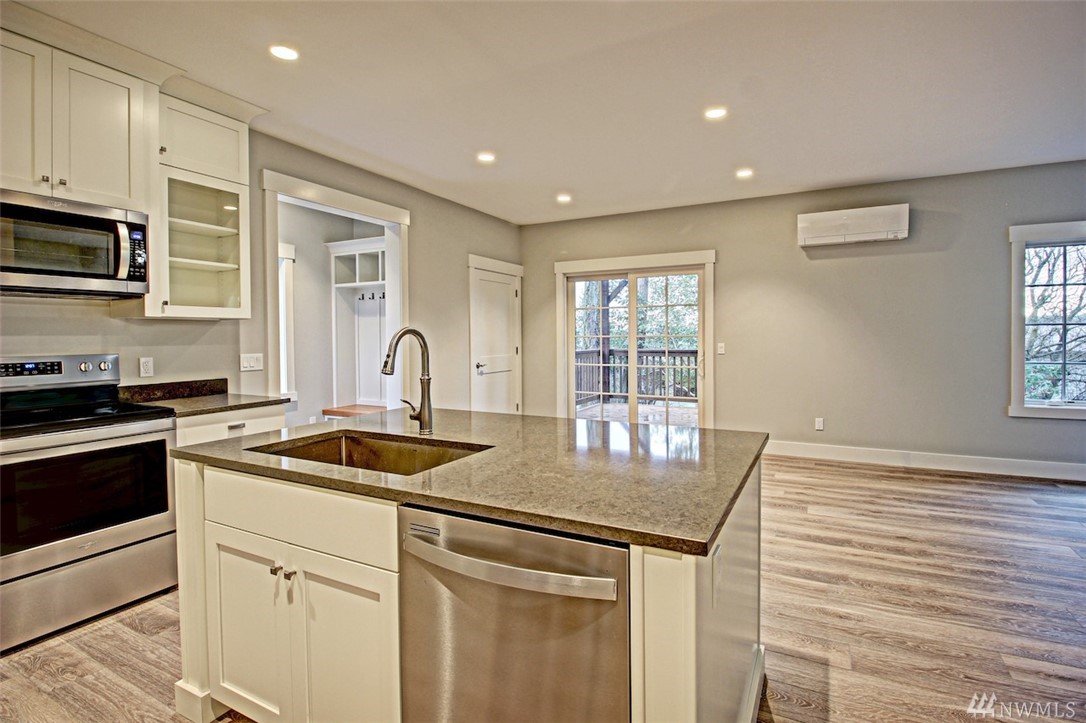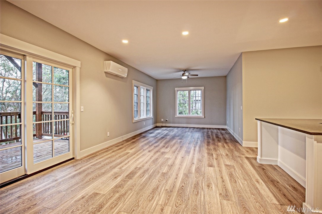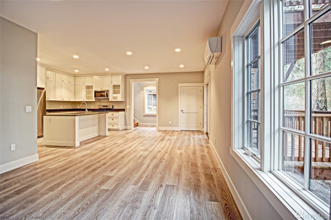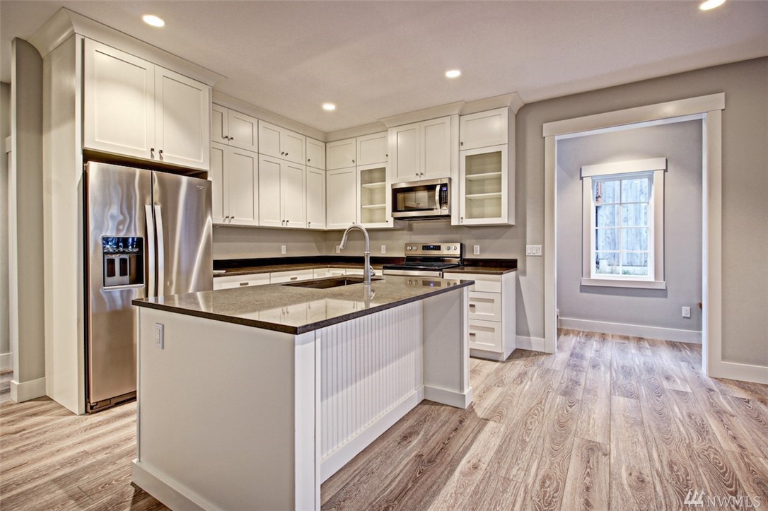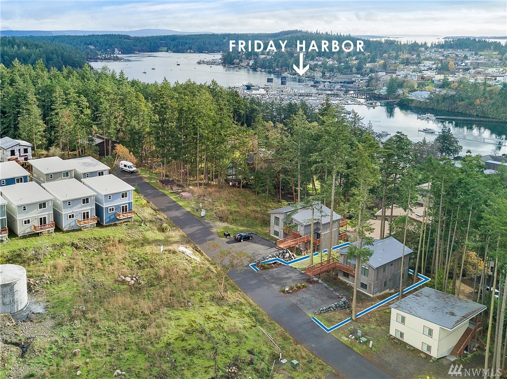 Friday Harbor one level condo...gourmet kitchen...open floor plan...master bedroom and bath...guest bedroom...hall bath...large deck...beautiful setting. Brand new condo...quality thru-out. Fiber optic internet installed. Condo dues are $200/month and covers common area maintenance, insurance & replacement reserve. Two condos in each building...this is a lower condo with ten exterior stairs to the front door and an additional five interior stairs to the coat rack and bench for removing shoes. Condo is vacant and easy to show.