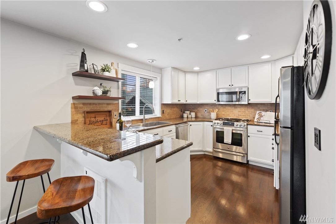 Walker’s Paradise, walk score of 96/100!! Walkability just blocks from Green Lake and Tangle Town. This exceptionally well-maintained sprawling 3-level corner unit townhome has it all. Beautiful refinished oak hardwoods throughout, chef’s kitchen, gas fireplace and large master suite w/updated en-suite. The lovely family room has a private deck, there are 2 additional bedrooms and fully fenced patio. Enjoy forced air/radiant, a great place to work from home or enjoy easy access to I-5 or 99. Attached garage and NO HOA’s!