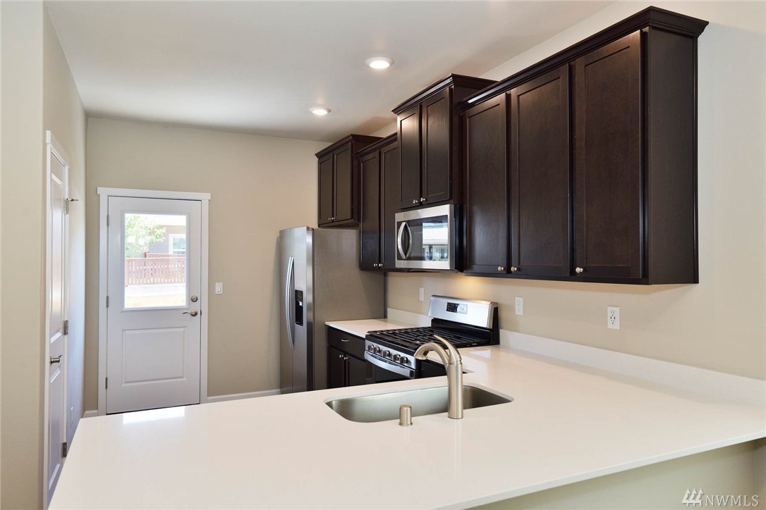 This single-story home features an open and spacious entertaining area plus three bedrooms and two bathrooms. The stunning kitchen includes gorgeous wood cabinets, polished quartz countertops stainless steel Whirlpool® appliances and recessed LED lighting. The private owner’s retreat is big enough to accommodate a king-size bed, two nightstands and a dresser, and offers an attached bathroom and large walk-in closet. Two more bedrooms and a second full bathroom offer additional space.