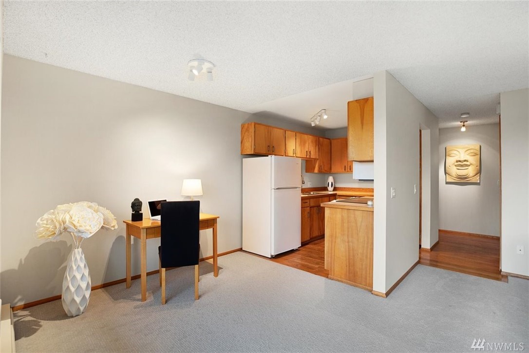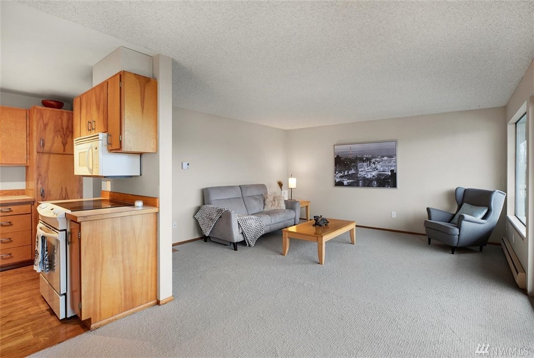 Clean and move in ready unit with low dues in the heart of Downtown Edmonds. Great oversized covered deck space has fresh outdoor carpet where you can enjoy peak-a-boo sound and mountain views year round. New carpet on the interior with fresh paint and fresh fixtures- truly a quaint feel in this space. One bed with large closet storage and 3/4 bath. No rental cap and 1 cat okay. Come home for the holidays!