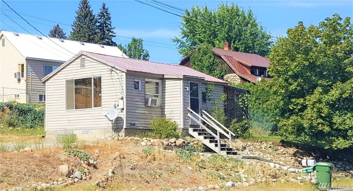 Cute 1 bed/1 bath home in the heart of Okanogan with views of the Okanogan River. This home is on a large sized lot with plenty of room to build a shop or garage. Great living room area with attached galley kitchen. Home has a full bath, bedroom with closet space and washer and dryer hookups. Very private porch area with well established concord grapes. Storage shed behind the home. Plenty of space for garden area and is connected to Alta Vista irrigation to keep it all green and lush. Whether you are looking to downsize, for a starter home, or just a great rental investment; this is the home for you!