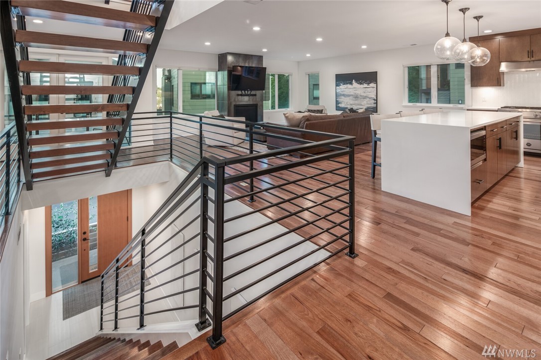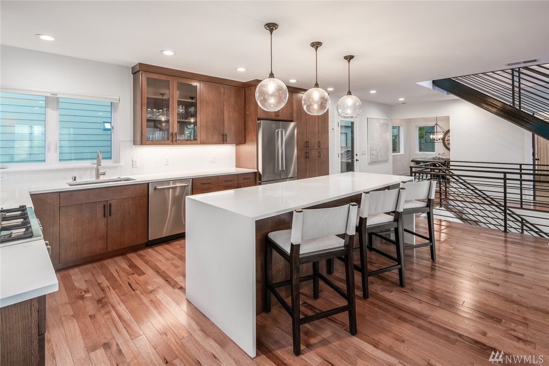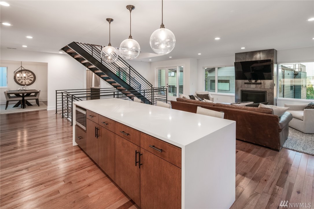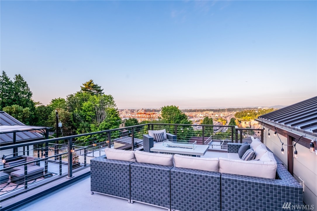 New price! Beautiful modern construction complete w/entry level guest suite, metal rail staircase & wood treads, hickory floors, 4 bathrooms & 5 bedrooms, master suite & spa-like bathroom. Over-sized island, gourmet kitchen & formal dining room perfect for entertaining. Top floor bonus with wet bar & roof top deck! Beautiful views & loads of space for home office, school and guests. Minutes to Alki Beach, foot ferry, shops, restaurants. 2 car garage & fenced yard. W Seattle Bridge to be fixed and reopen in 2022.