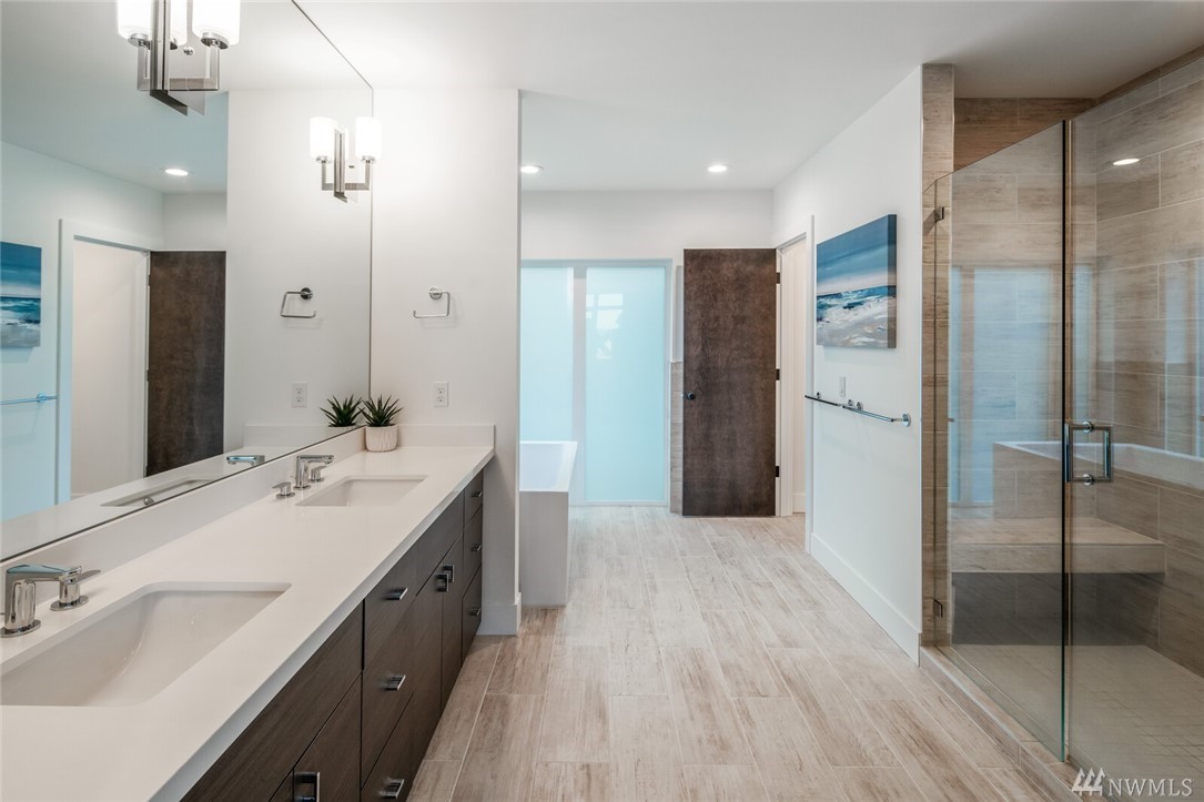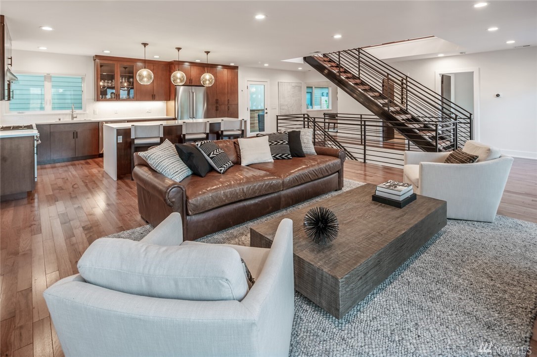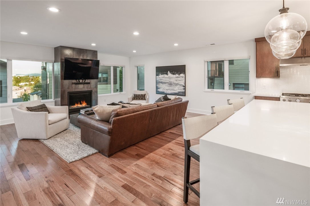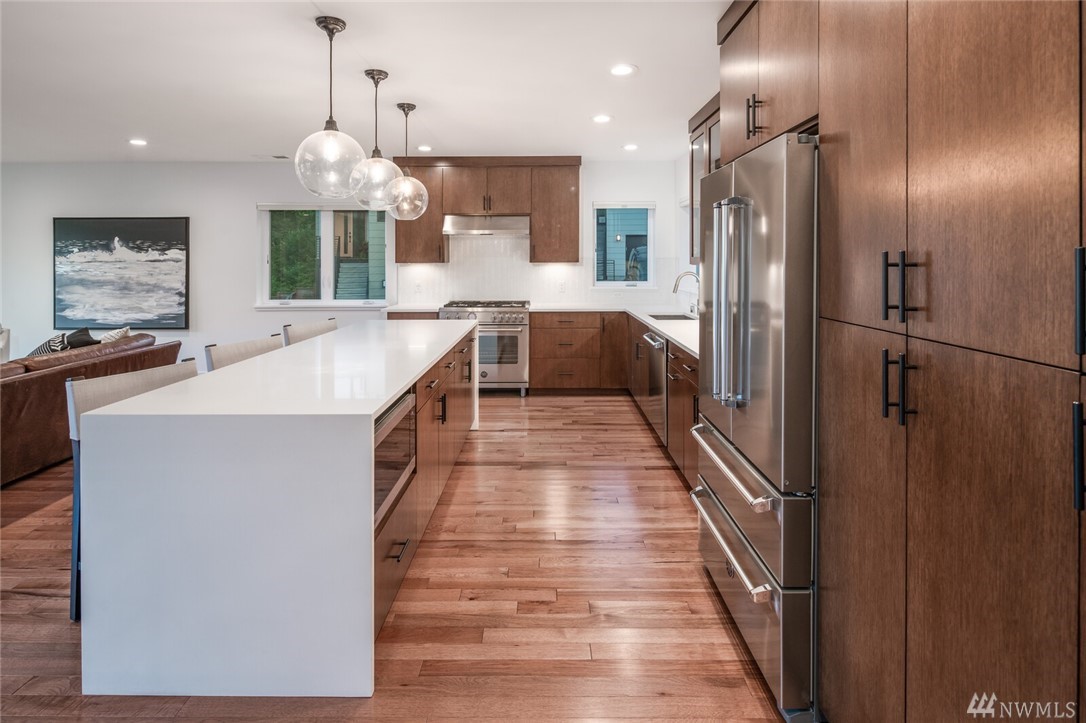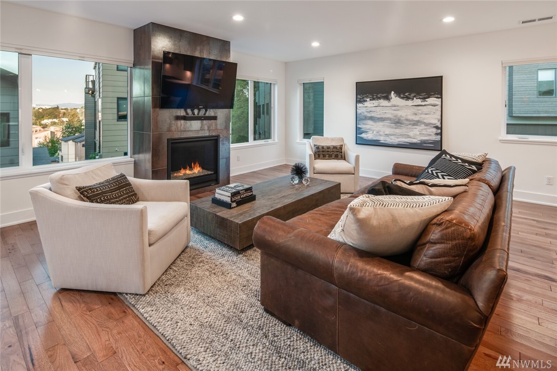 New price! Beautiful modern construction complete w/entry level guest suite, metal rail staircase & wood treads, hickory floors, 4 bathrooms & 5 bedrooms, master suite & spa-like bathroom. Over-sized island, gourmet kitchen & formal dining room perfect for entertaining. Top floor bonus with wet bar & roof top deck! Beautiful views & loads of space for home office, school and guests. Minutes to Alki Beach, foot ferry, shops, restaurants. 2 car garage & fenced yard. W Seattle Bridge to be fixed and reopen in 2022.