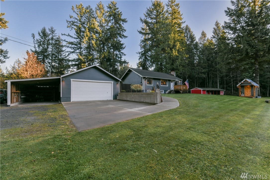 Welcome to your own beautifully maintained and level 2.79 acres. This home has 3 bedrooms with an office and a den which makes for plenty of room options. You have 2 full bathrooms and lots of extra storage space. The 2 car garage is large with extra space for tools and toys and a carport. RV ready with a metal carport cover, power plug and a second septic. Land is set up for animals and easy homesteading. There is a large 3 stall animal barn with a chicken coop and another smaller barn w/ 2 stalls. Plenty of gardening space & the fire pit is ready for roasting marshmallows. Even the well house is darling! New Exterior Paint & Siding and lots up upgrades throughout. Enjoy the serenity with peace and quiet but still only 15-20 mins to town.