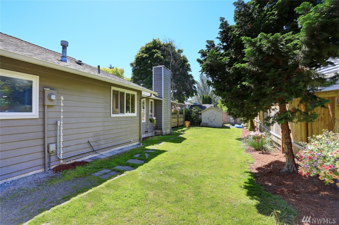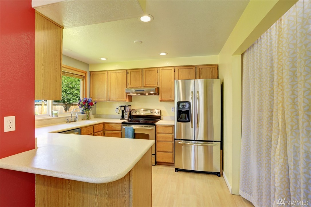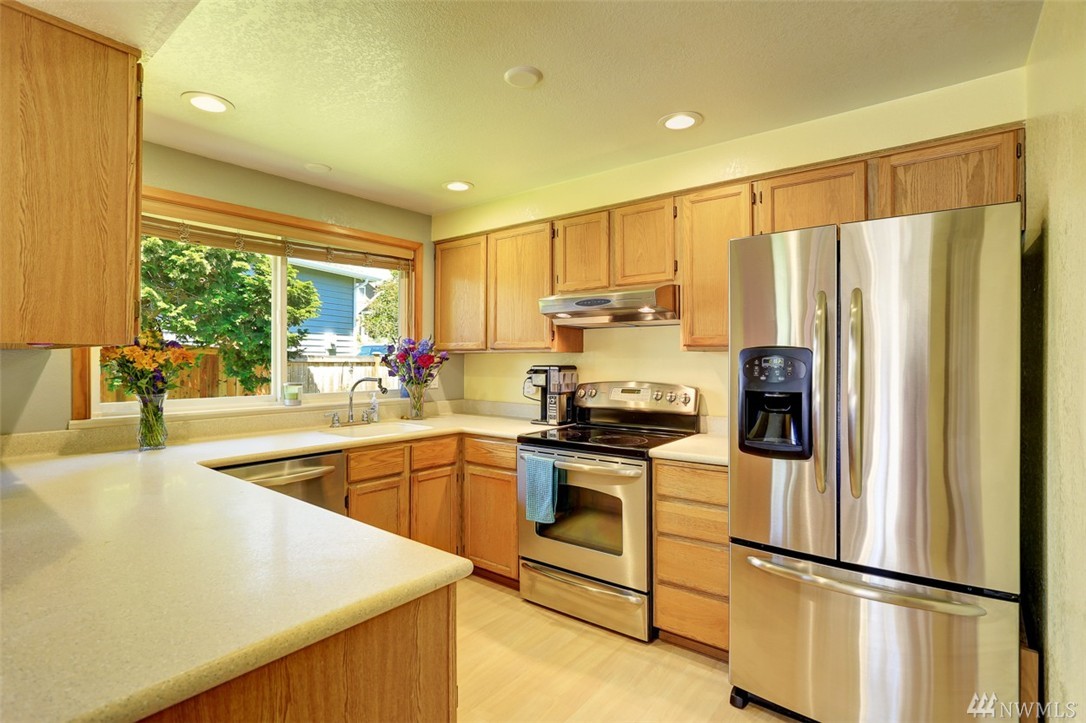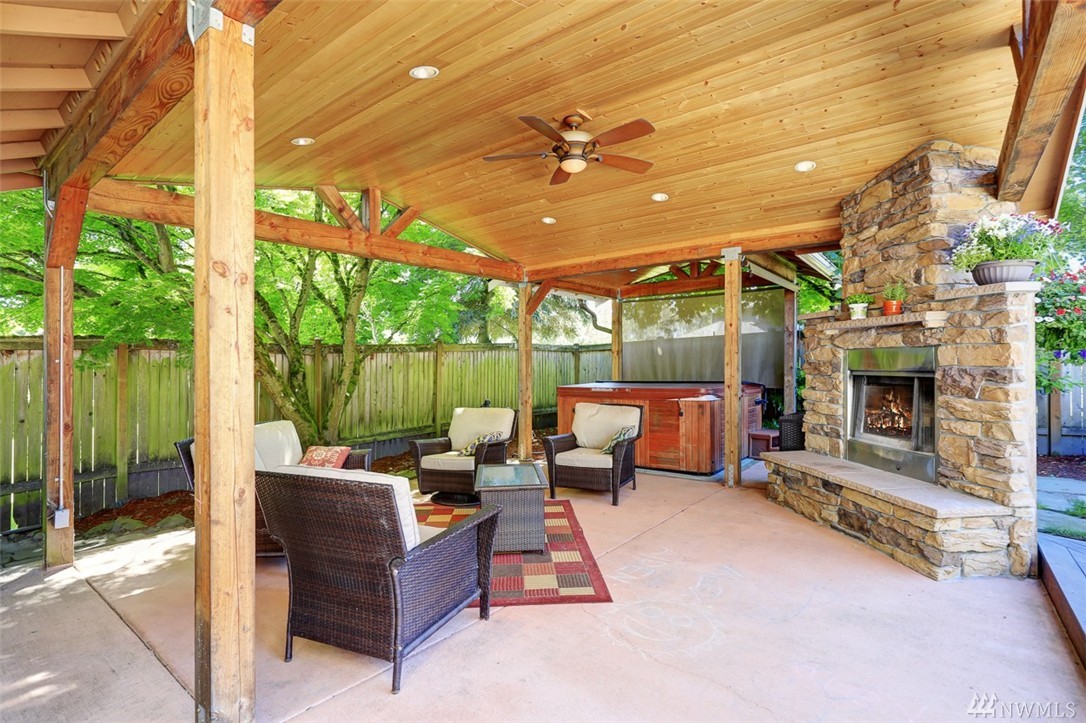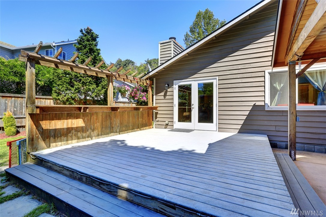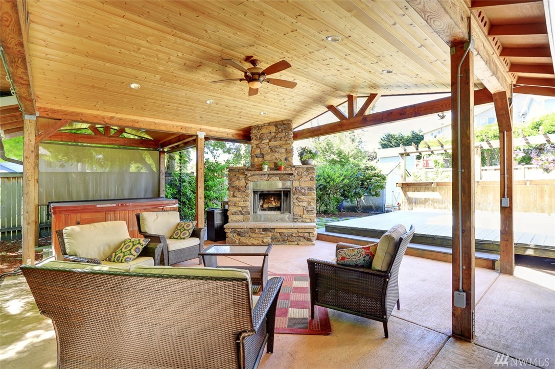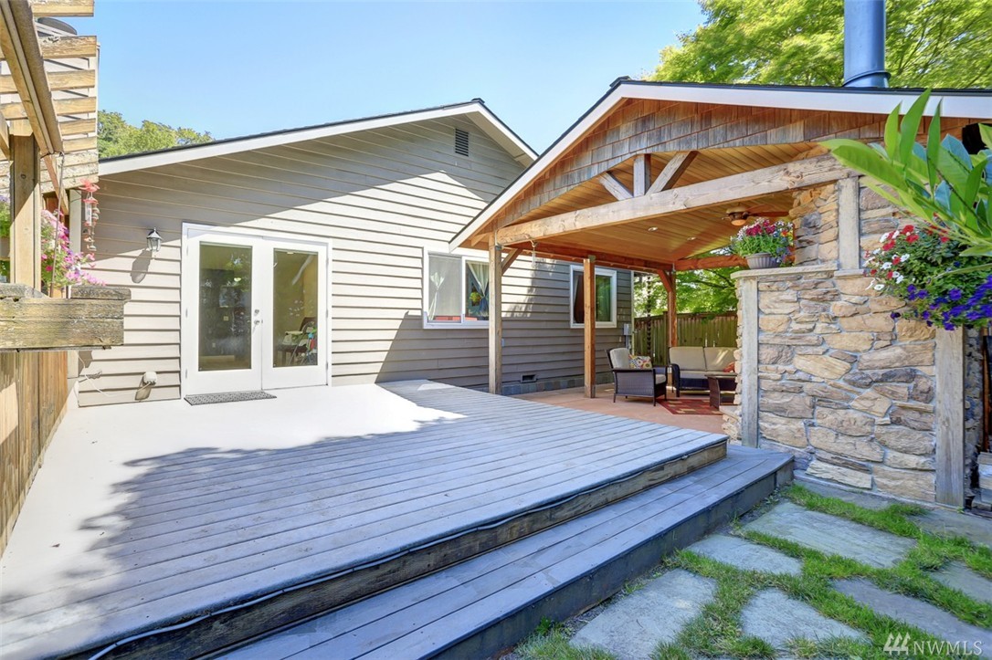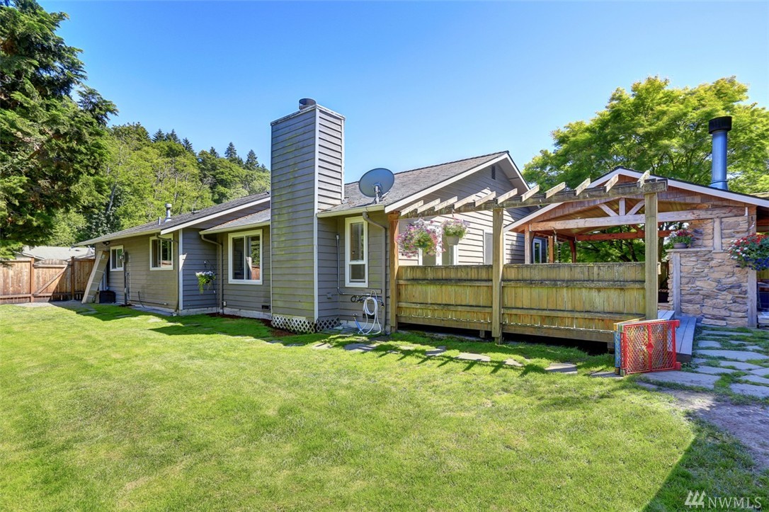Bright and welcoming 3 bd/2 bth home in Meadow Creek Park. Home features a beautiful bright kitchen,stainless steel appl., large master bd with walk-in closet, family room with a FP, and an outstanding back yard. The updated outdoor living space is a perfect place for summer BBQs and gatherings. There is a large deck, covered pavilion area with vaulted ceilings, large rock FP, and Jacuzzi area! The house is located in a friendly and nice neighborhood in the North Shore School District.