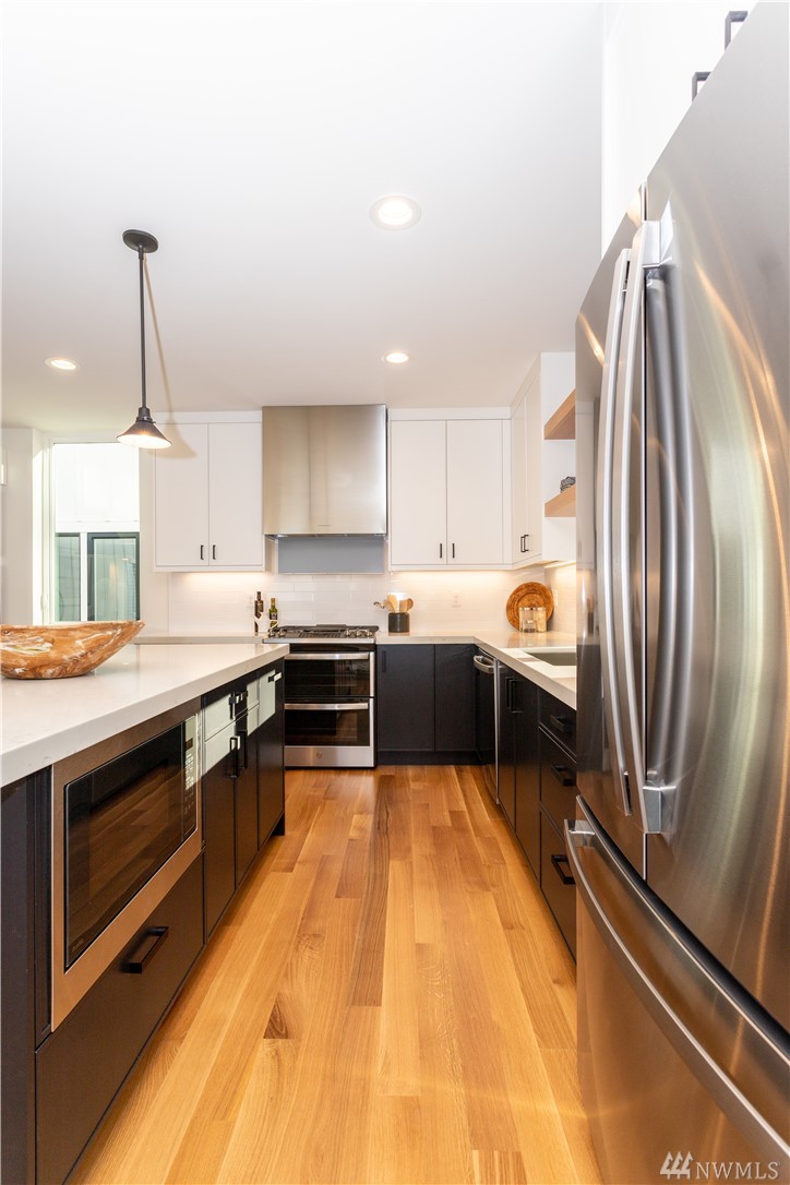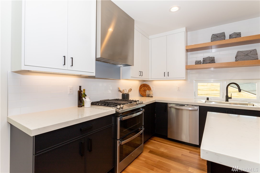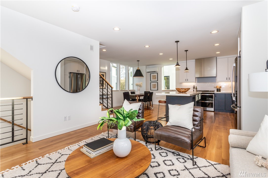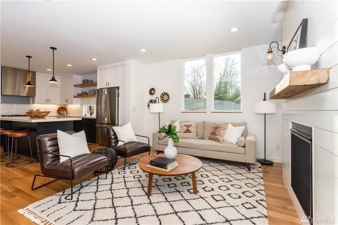 One of the builder's own favorite projects, the site backs up to Carkeek Park and you don't even realize you're in the city. Everything came together really well here. -SIX- 3 bed, 2.75 bath single family farm-style homes w/ carports (w/ Tesla charging). Featuring solid 4" rift-sawn White Oak, wide-planked hardwoods, mosaic-tiled baths, and glass-enclosed showers. GE Profile stainless appliances, quartz tops, and stunning cabinetry. Designer lighting. A/C. Beautiful gas fireplace hearth with tucked-away extra storage, and true master suite/master bath complete with his/hers walk-ins.