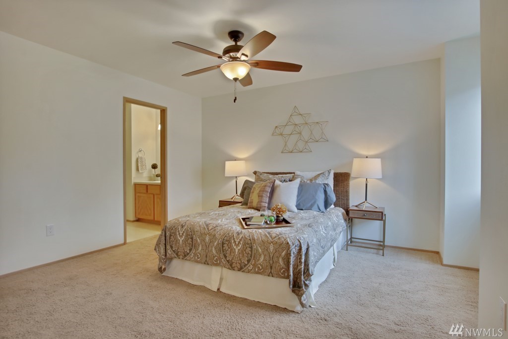 Prime Puyallup Townhome with fantastic upgrades throughout! Explore this private end unit complete w/ a cozy living room, new luxury vinyl California bamboo floors, a warm fireplace for the chilly nights & central A/C for summer days. Stylish kitchen features a large farm sink, custom cabinetry w/ soft-close drawers, stainless appliances & Leutron lighting - ideal for putting your chef skills to the test! Oversized Master Suite includes a full ensuite bath & large walk-in closet, while the additional bedroom is ready to adapt to your changing needs - both bedrooms include ceiling fans! In a central location, this property provides convenient access to WA-512, Good Samaritan Hospital, the Washington Fair Grounds, shopping, dining & more.