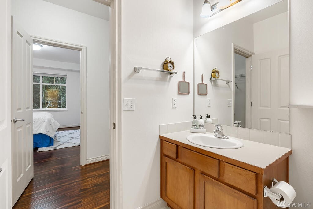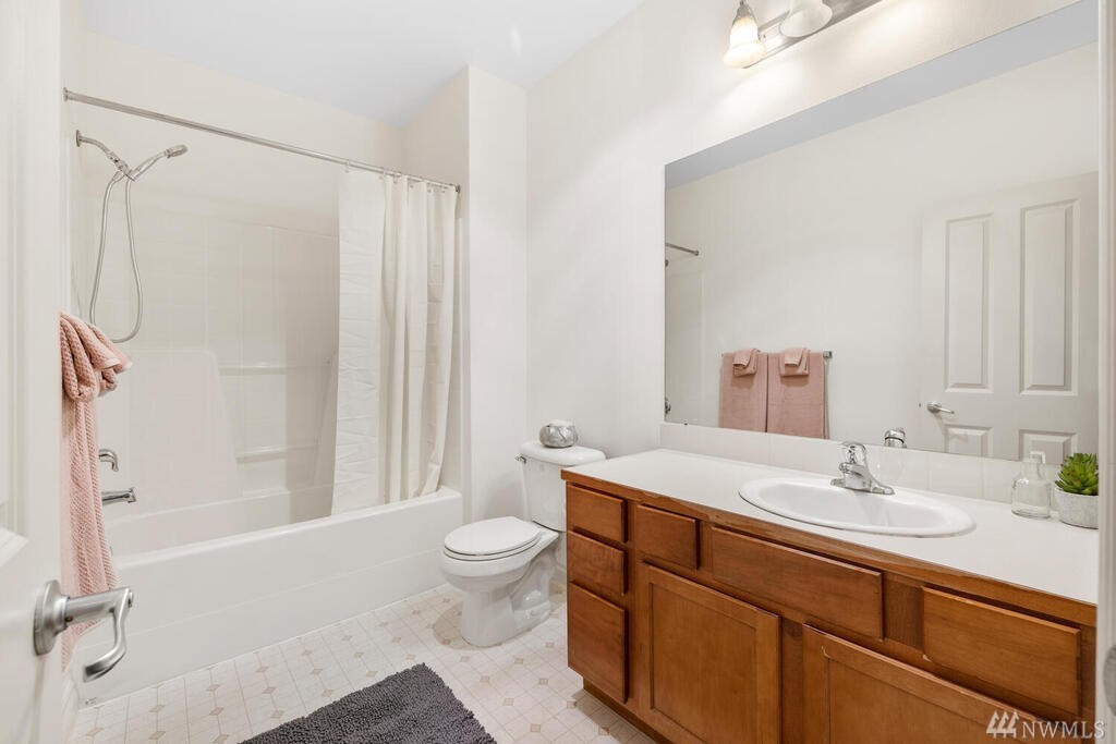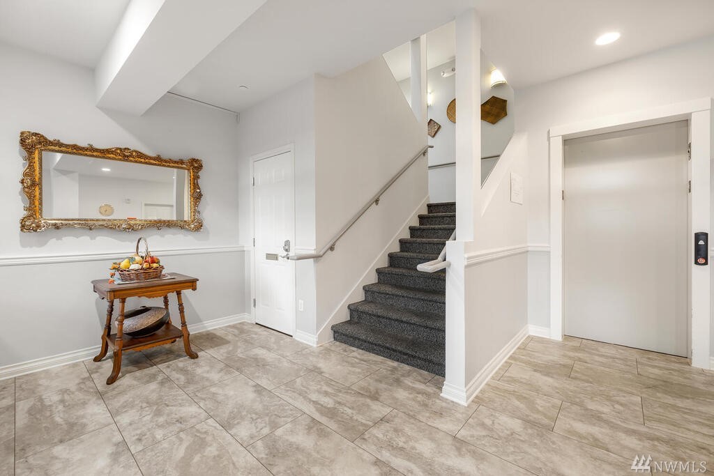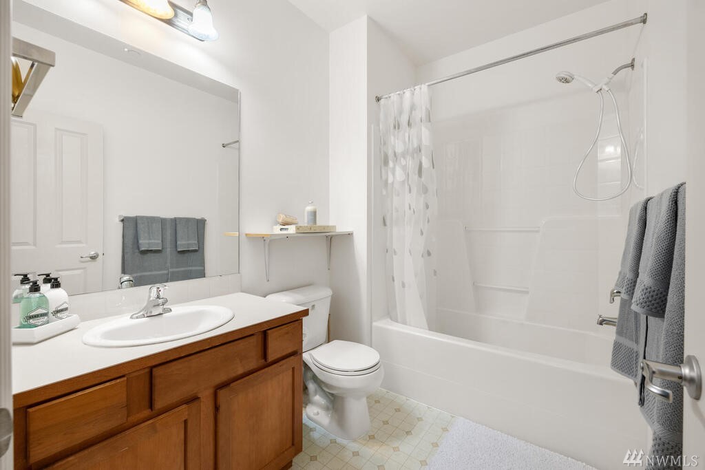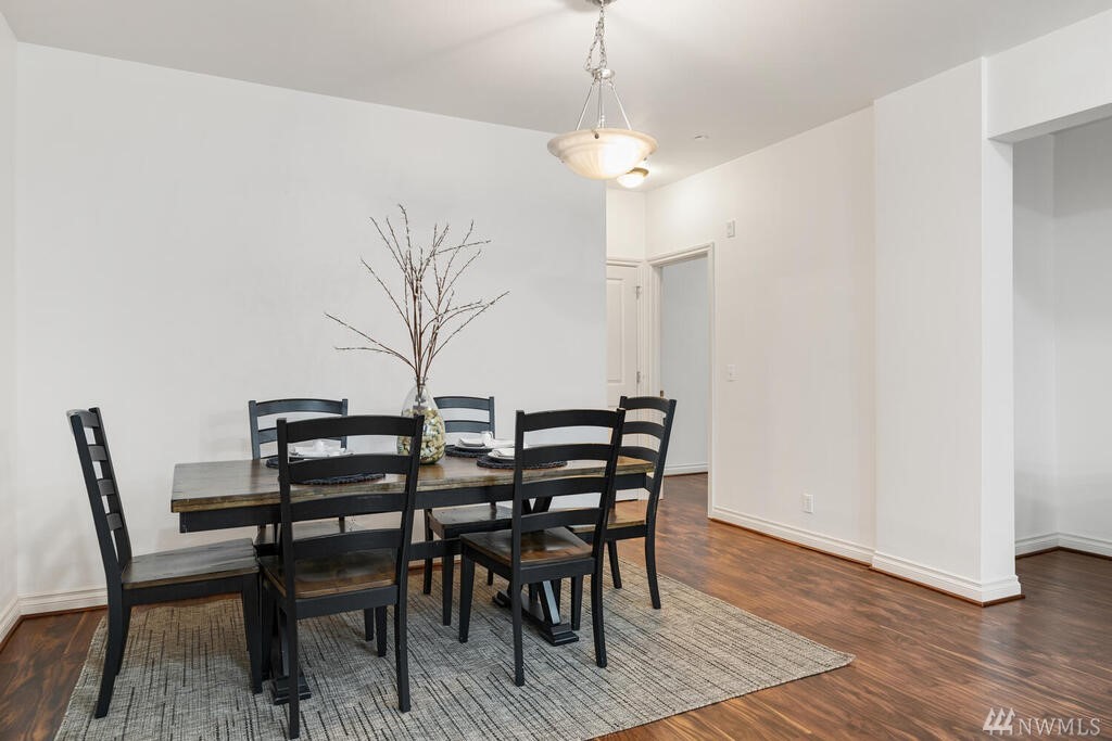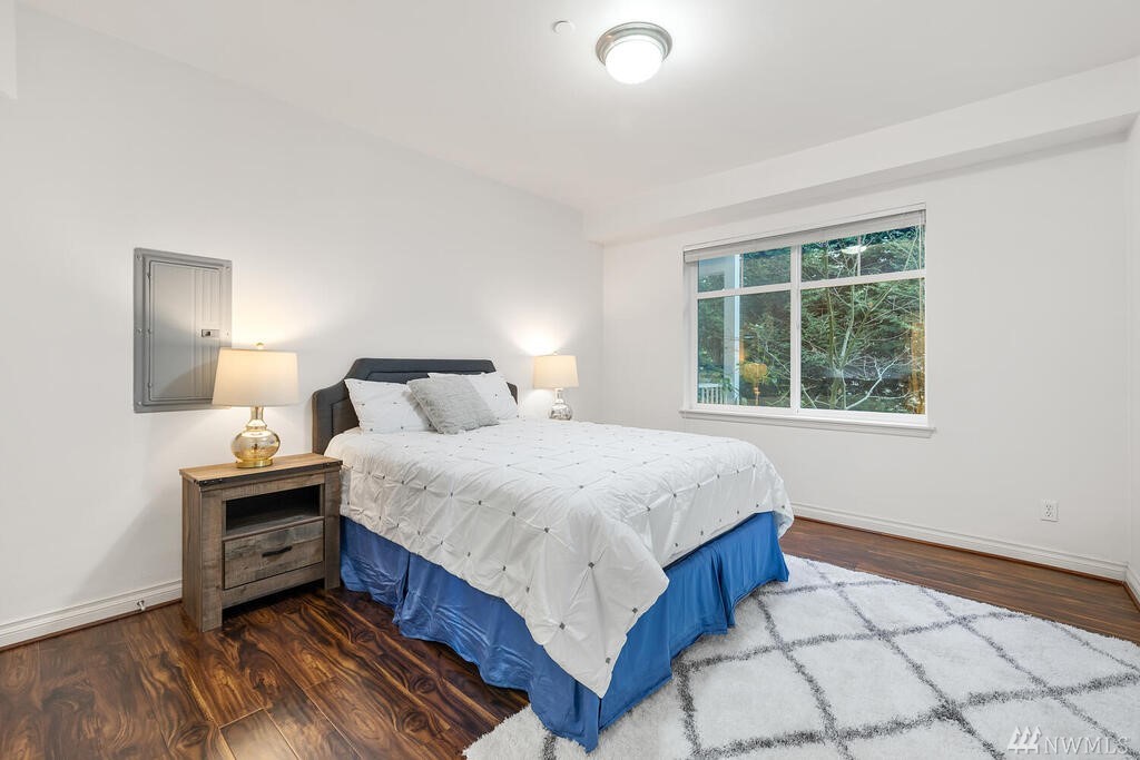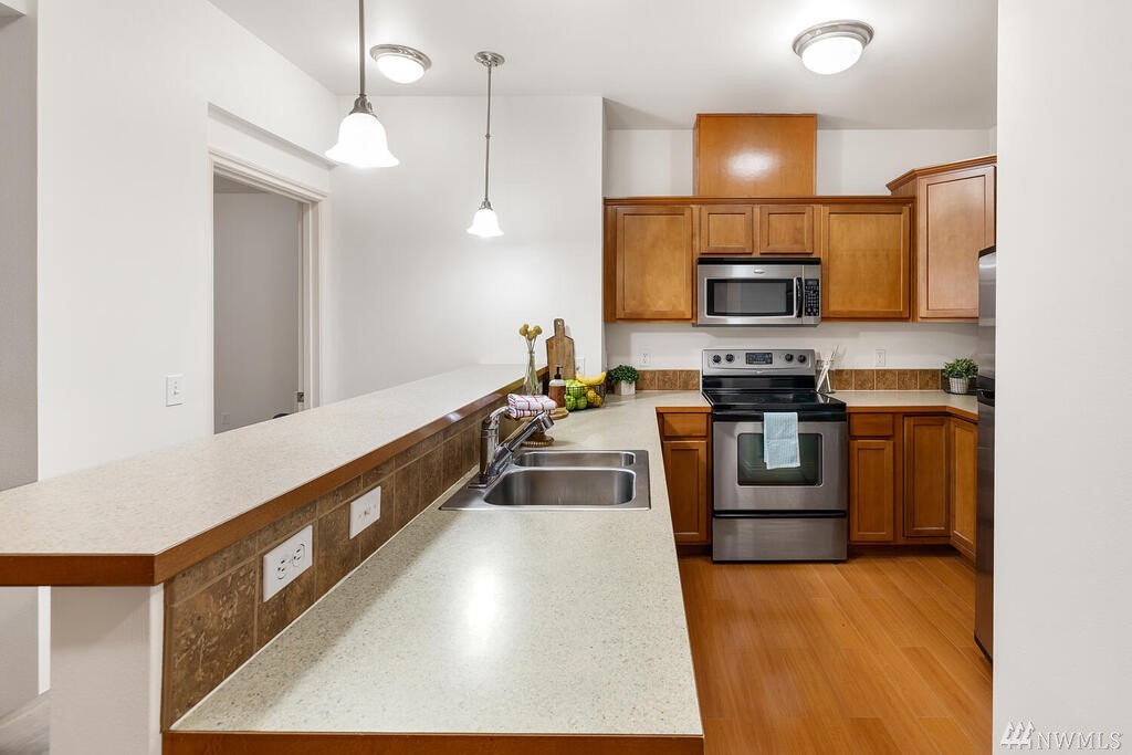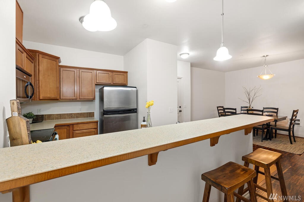 Conveniently located 2 bed 2 bath condo at Makenna Place! Meticulously maintained unit with soaring ceilings, private balcony and a great layout. Stainless steel kitchen appliances with a handy breakfast bar for increased counter space. Versatile living room can accommodate many different layouts. End unit with easy access to the garage. Secured building with common garage which includes two reserved parking spaces and an additional storage unit located on the same floor as the unit. Located minutes from I-5, Costco and all amenities Shoreline and Lake Forest Park has to offer. HOA is managed in-house and very well run. Currently under rental cap and 2021 HOA dues did not increase!