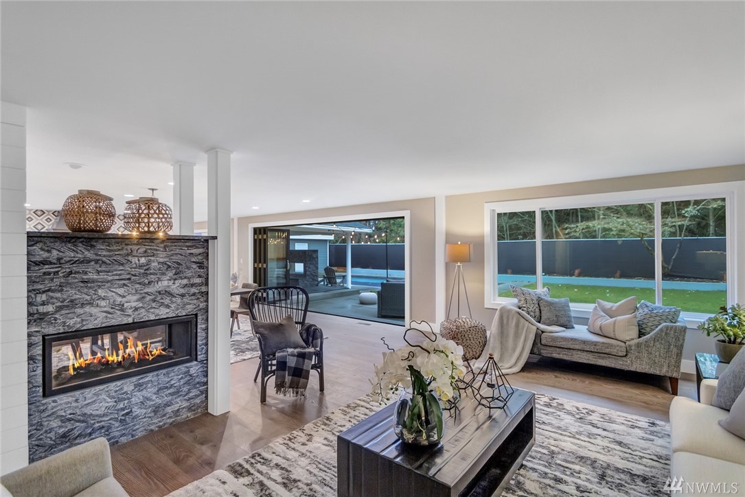 This beautiful 4 br. 2 1/2 ba. one story home has been completely remodeled. The open concept floor plan incorporates indoor/outdoor living at its finest, a 16’ door leads to your private backyard, pool and covered patio. The kitchen features high end appliances, quartz counters and new cabinets while hardwood floors, wool carpet and two amazing two-way fireplaces add warmth throughout. The master bath room is gorgeous with a custom marble shower, flooring and counters. The Woodway reserve is in your backyard, step outside and enjoy nature and walking trails.