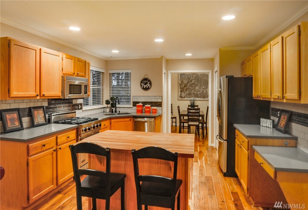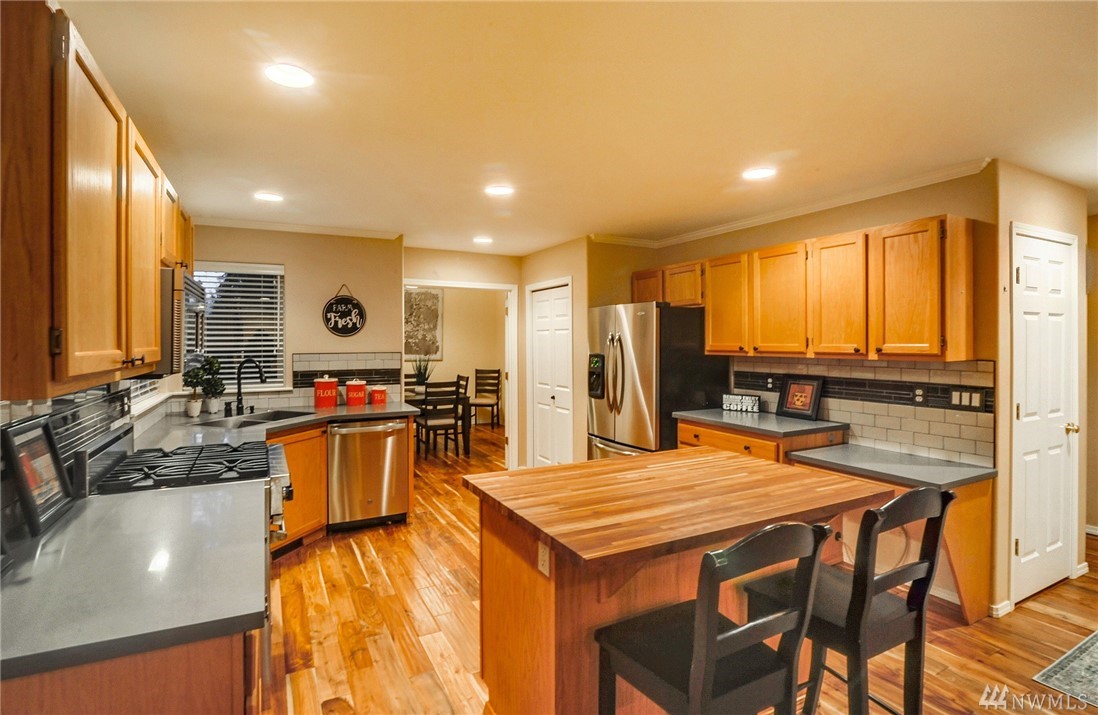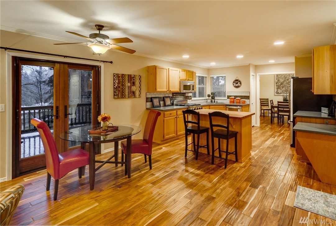 Wonderful home located in the coveted neighborhood of Quail Creek. Located at the end of a culdesac on over a half acre lot. Engineered hardwood floors throughout the main level. Formal living and dining room and main level den greet you when you enter. Large island kitchen with Viking stove and microwave, new dishwasher, and french door refrigerator all in stainless steel. Kitchen adjoins family room with gas fireplace. Beautiful deck looks out on your private back yard. Upstairs are 3 bedrooms including a large master bath with walk in closet and 5 piece bath. Natural gas generator turns on automatically with power outages. Located in the award winning Snoqualmie Valley School District. Minutes to downtown Redmond. Welcome home!