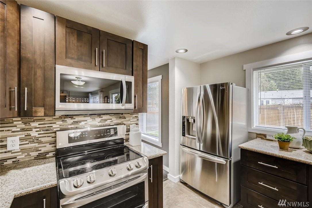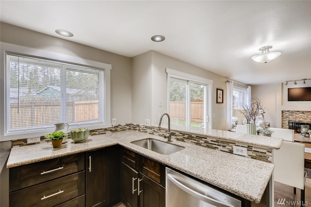 New Home for the New Year? YES! This Lake Wilderness area home features 4 bedrooms plus a bonus room with a spacious, fully fenced backyard. AND that's just where it STARTS. Own an electric car? Charging station here. Need an office or guest room on the main? One of the bedrooms is there with a nearby 3/4 bath. The remodeled kitchen is in the back of the house, open to the family room and looks out to the backyard. Both floors feature laminate hardwoods and the bonus room upstairs is spacious with a tall ceiling. Everyone has space in this home. Outside the patio is fit for entertaining while the entire yard is light and bright. It's on a cul-de-sac, tucked away yet in the heart of Maple Valley.