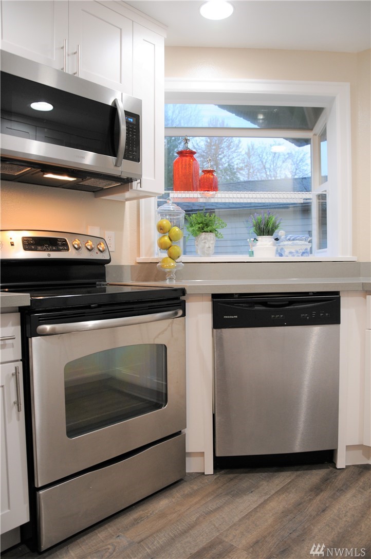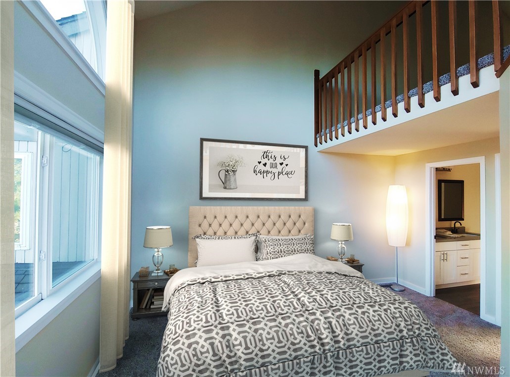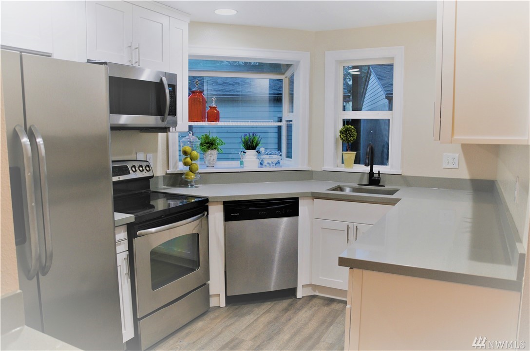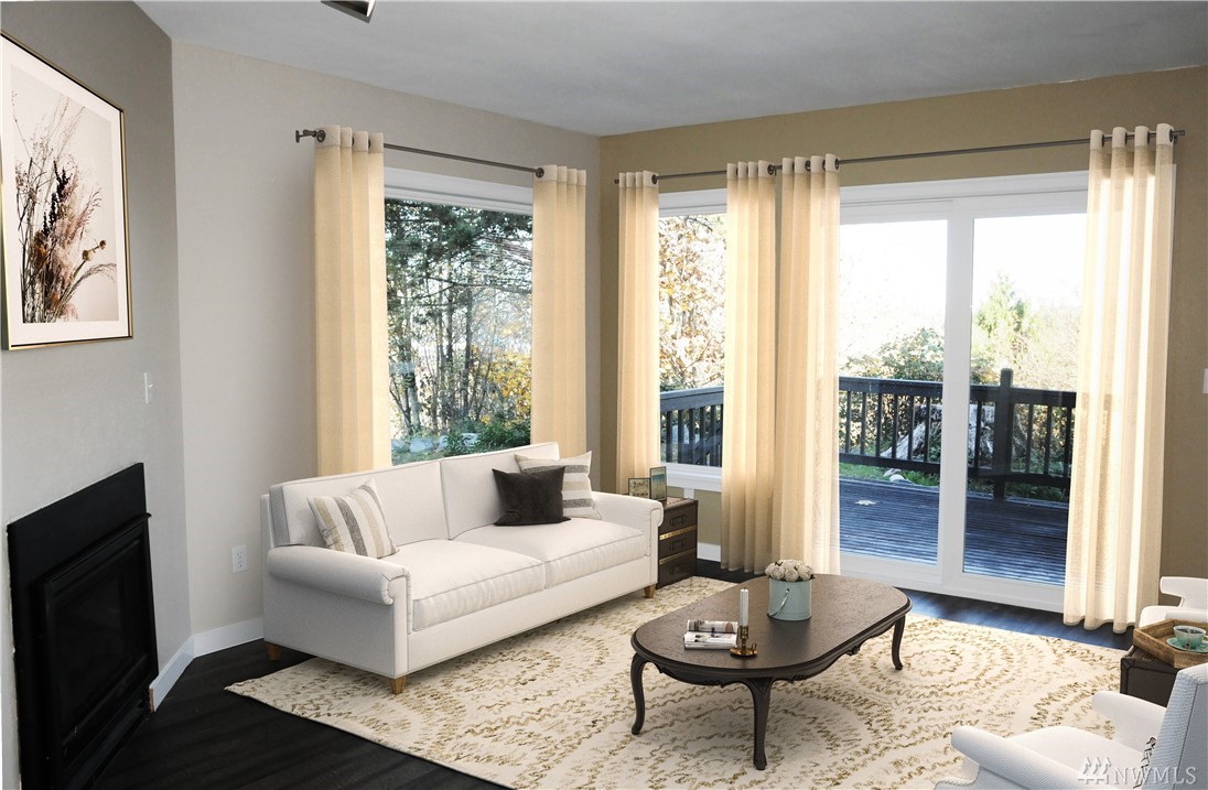 Tucked away on a cul-de-sac within the gated community of Falcon Ridge. This charming townhome, totally updated gourmet kitchen with quartz counters, new plank floors, new carpet, bathroom quartz counters and fresh paint. Step down into the living room to enjoy winter views from a wall of windows, gas fireplace & sliders to the entertainment size deck. Master bedroom features a 20' ceiling and walk-in closet. Stairs will lead up to the 3rd level loft with a birds eye view of Seattle, sunsets & beyond. Extra storage in detached secure garage. Gas central heat! LOW HOA, PLAYGROUND, RV PARKING & CLUBHOUSE.