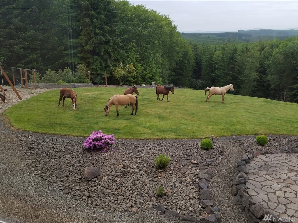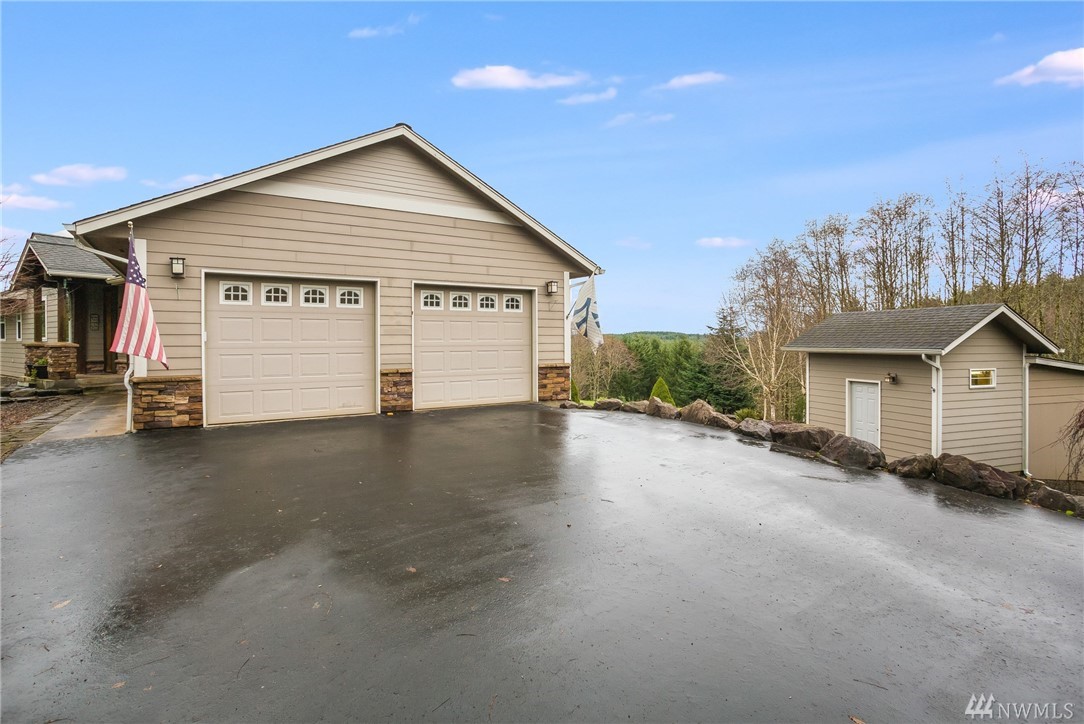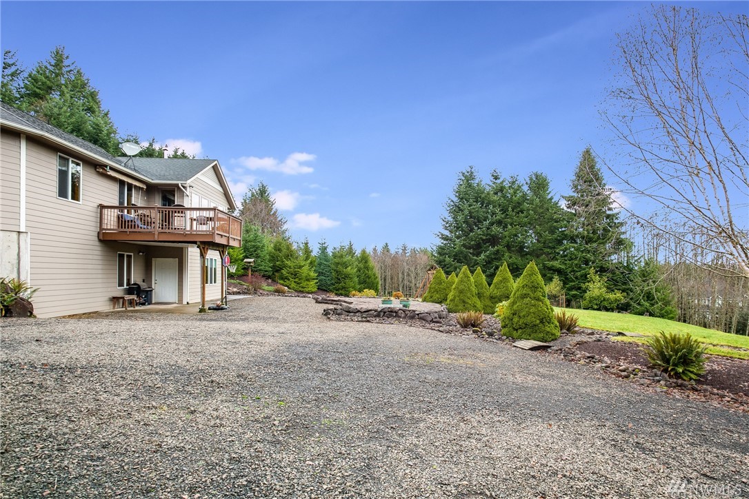 Stunning Custom Craftsman w/captivating views of Mt Rainier from almost every room! Pristine home with 3029 SF, 3 bed, 4 bath. Main level consists of vaulted open beam great room w/wood stove, wall of windows to take in the mountain views. Spacious gourmet kitchen with center island, new SS appls, cork floor, master suite w/walk-in closet, den/office + additional room currently being used as a bedroom, deck. Lower level w/spacious family & rec area, wet bar, 9' ceilings, 2nd master suite, 3rd bedroom, 3/4 bath, separate entrance could be in-law suit. 572 SF 2 car garage w/hot/cold water on 6 acres, raised garden area, RV parking and room for a shop. Manicured grounds, outbuildings, chicken coup, stone patio great for entertaining.