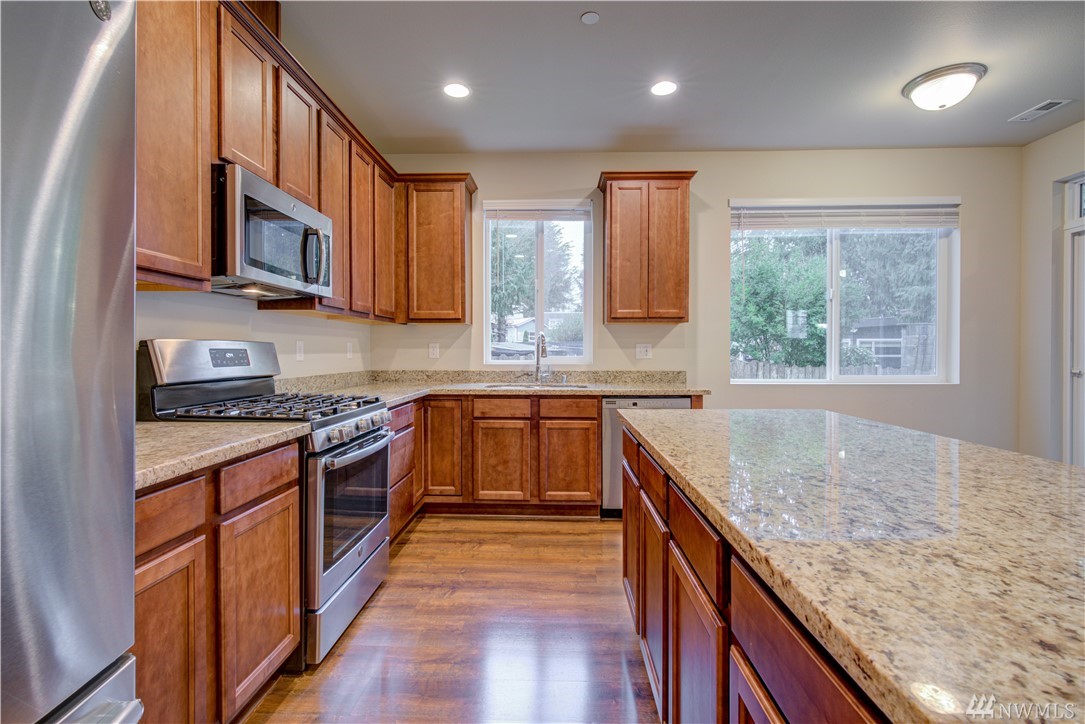 Welcome to this beautiful home in Hawk Ridge community. This meticulously maintained house features 4 bds,2.75 baths, specious kitchen with granite countertops, gas range, SS appliances, cozy living room w/gas fireplace. Master bedroom suite w/walk-in closet, vaulted ceilings, dual vanity. Lower lever offers specious family room, with additional bedroom and full bath. From dining area you will have access to a cozy patio and fully fenced backyard for your to enjoy. Prime location with minutes to Alderwood Mall, Costco, I-5/405 & transit. This house is must see to appreciate!
