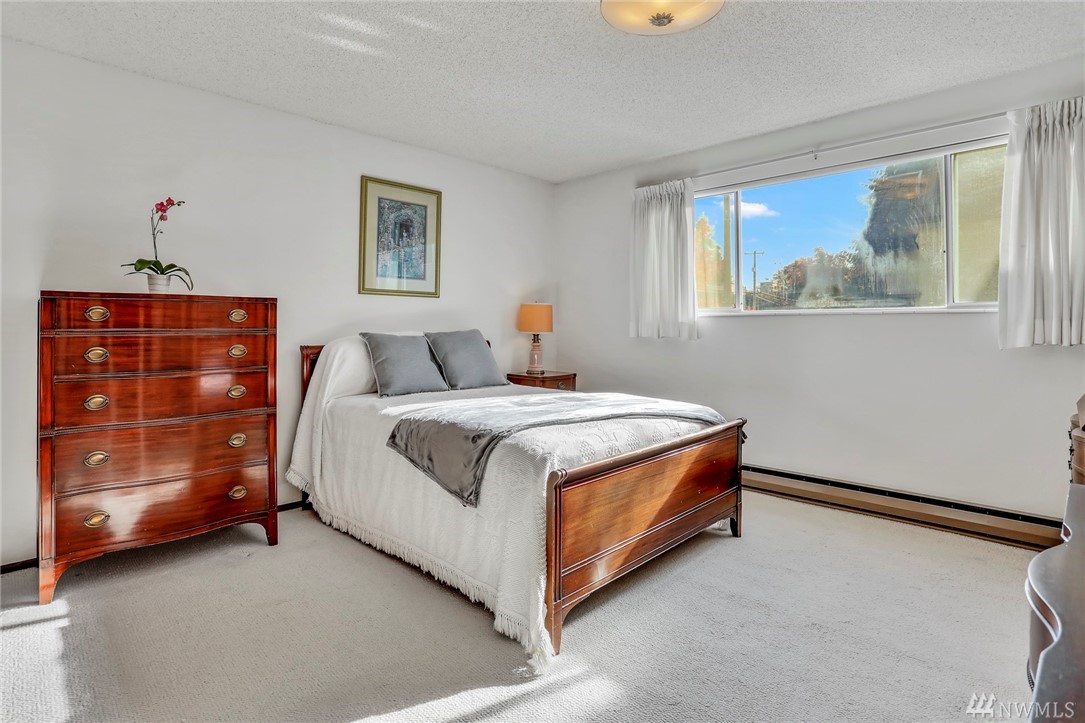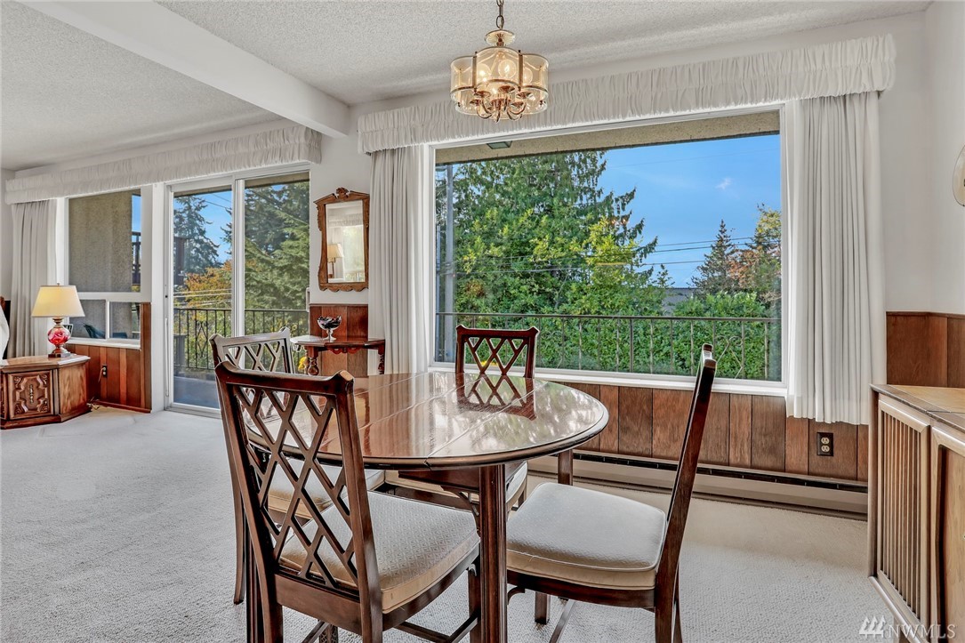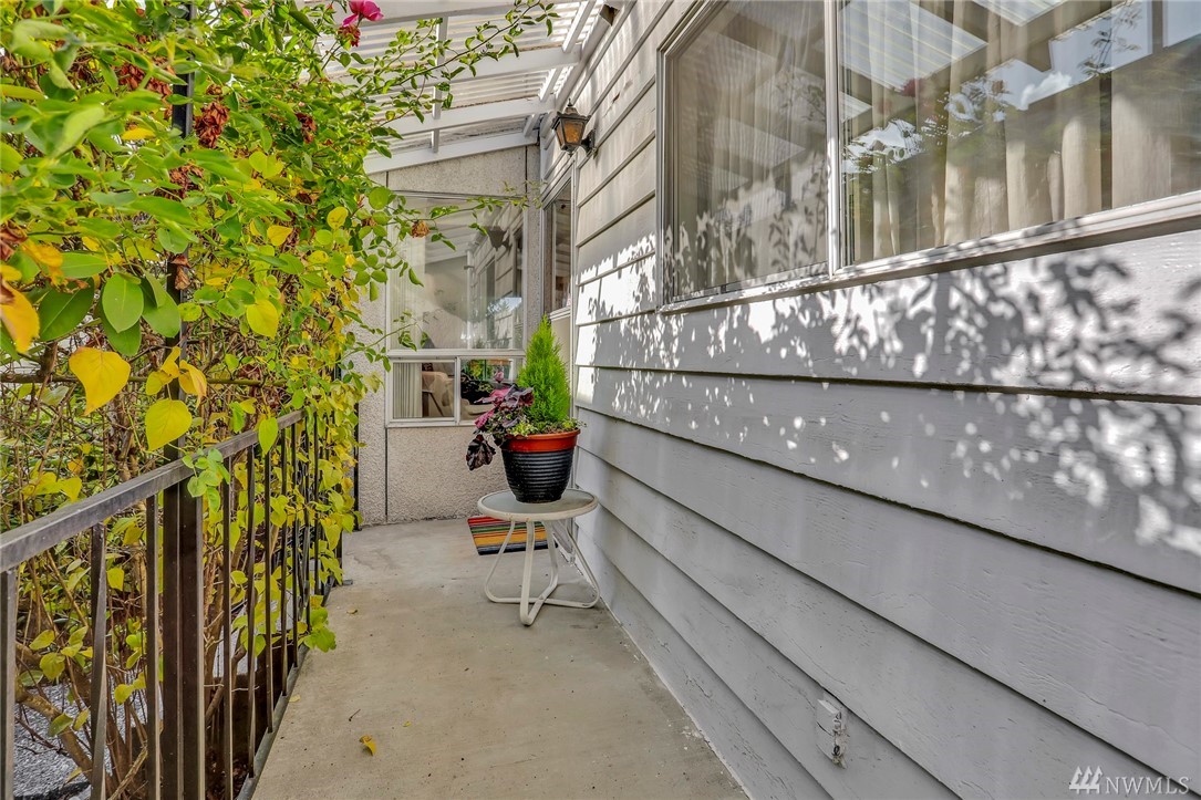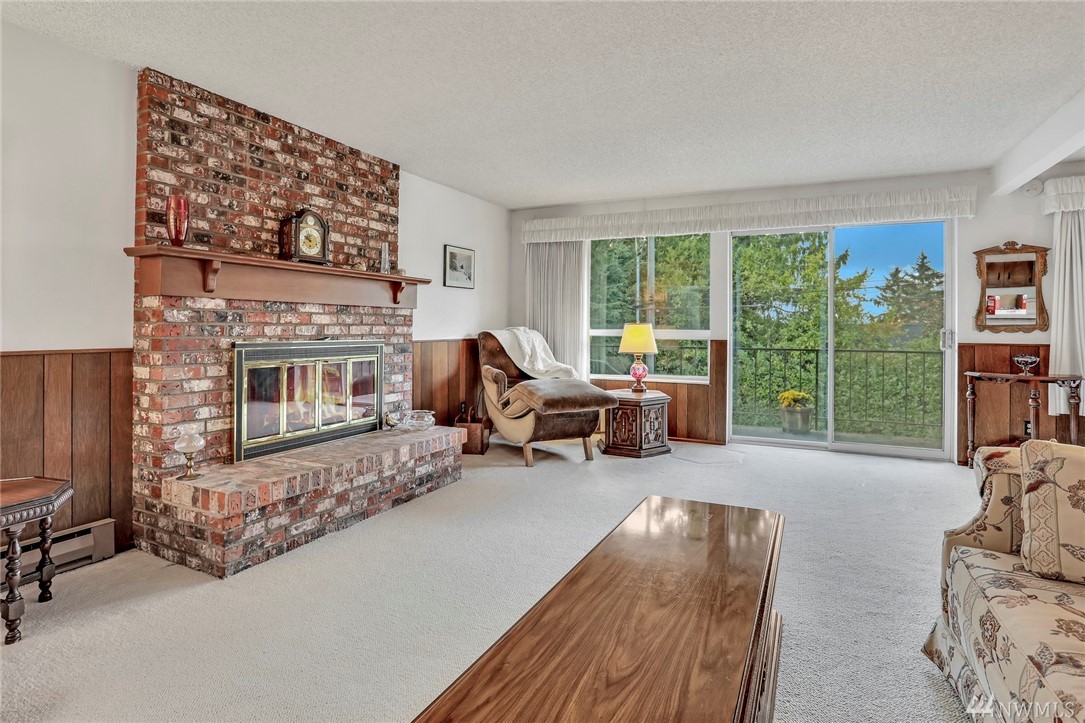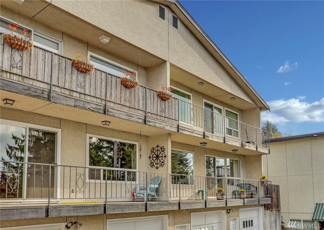 Expansive! Almost 1300 sq feet of well laid out living space. Cool retro feel in the living room and dining room with brick wood burning fireplace, wall of windows and access to large balcony that enjoys mountain and territorial views. Functional kitchen has lots of storage and an eating bar. Large master with 3/4 Bath and 2 closets. 2nd bedroom, full bath and awesome laundry room complete the unit. Rare private garage fits 2 cars tandem plus additional storage space and utility sink. Private entry with additional porch and garden space. All in fun Greenwood neighborhood.