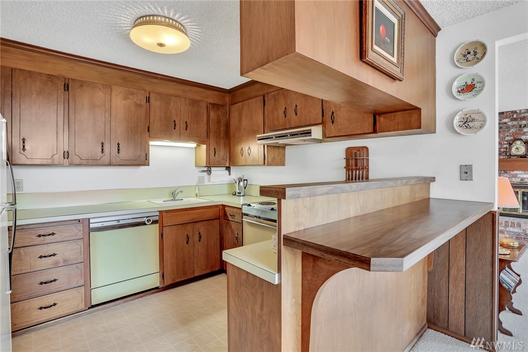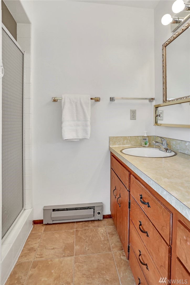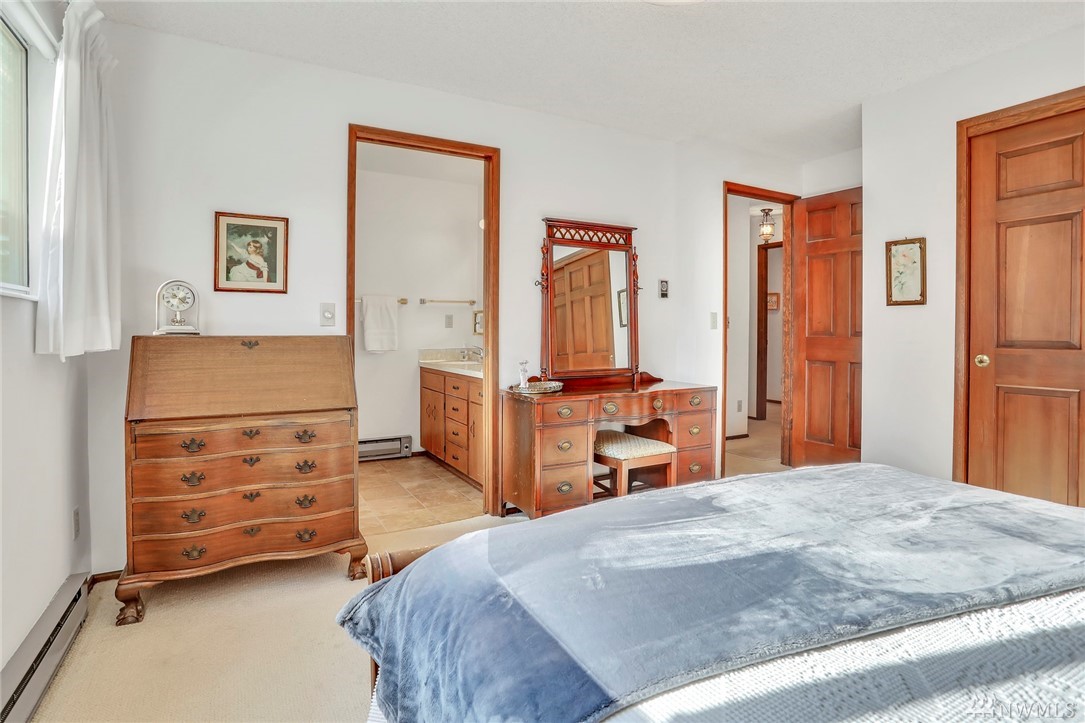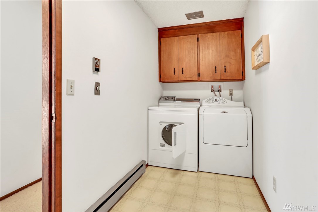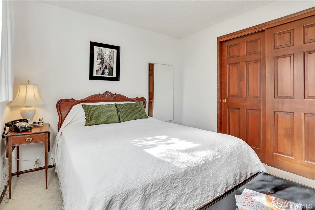 Expansive! Almost 1300 sq feet of well laid out living space. Cool retro feel in the living room and dining room with brick wood burning fireplace, wall of windows and access to large balcony that enjoys mountain and territorial views. Functional kitchen has lots of storage and an eating bar. Large master with 3/4 Bath and 2 closets. 2nd bedroom, full bath and awesome laundry room complete the unit. Rare private garage fits 2 cars tandem plus additional storage space and utility sink. Private entry with additional porch and garden space. All in fun Greenwood neighborhood.