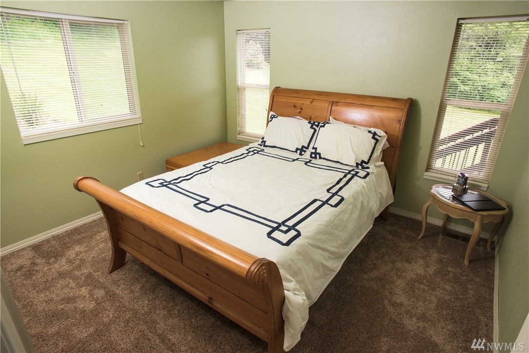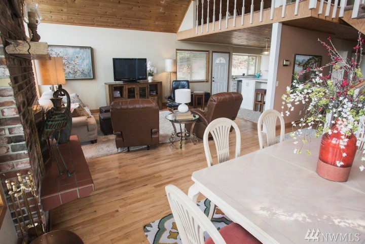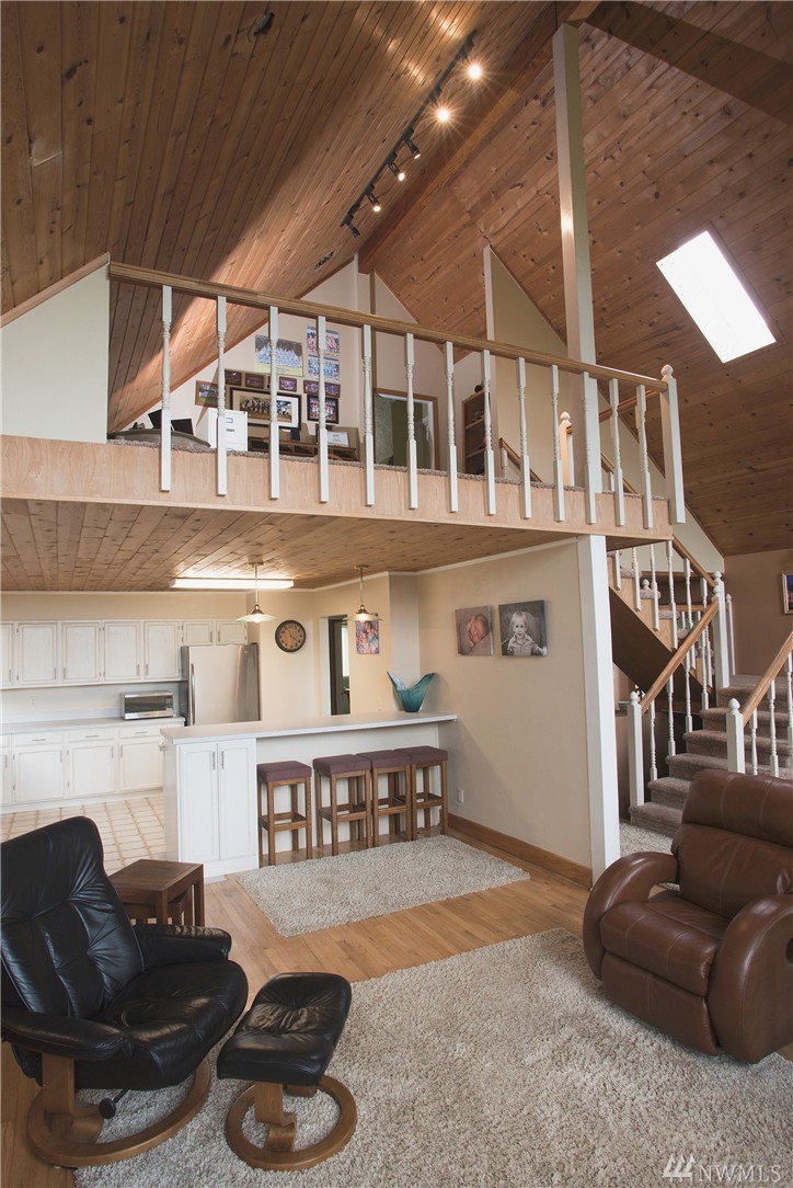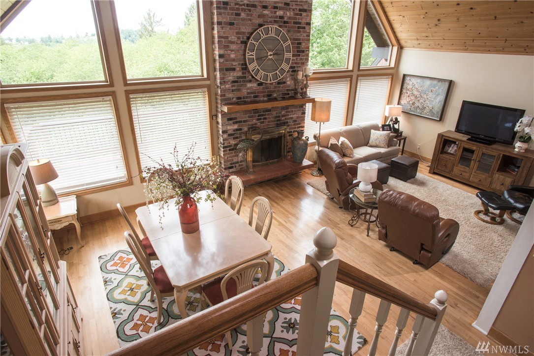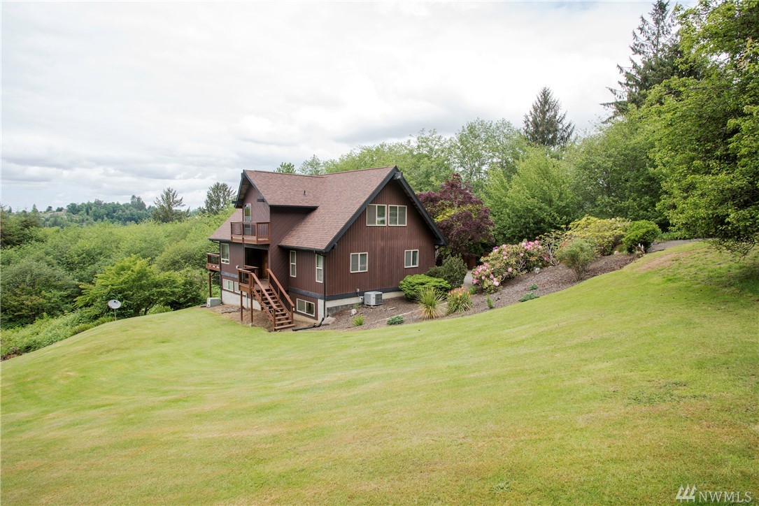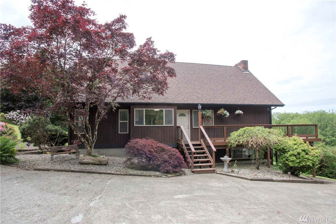 Welcome home to your 2+ acre oasis! This home sits perched in a private park like setting. Open floor plan with 20 foot ceilings. 2 spacious bedrooms on the main and a private master with ensuite on the upper level. Double pane windows, fence and deck installed in 2014 and a newer roof installed 2013. Downstairs basement is roughed in but could be a potential 4th bedroom and bonus room. 2 car detached garage. Above garage could be made into a "mother in law" unit.