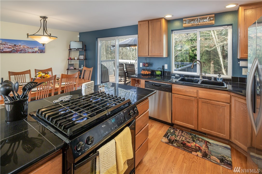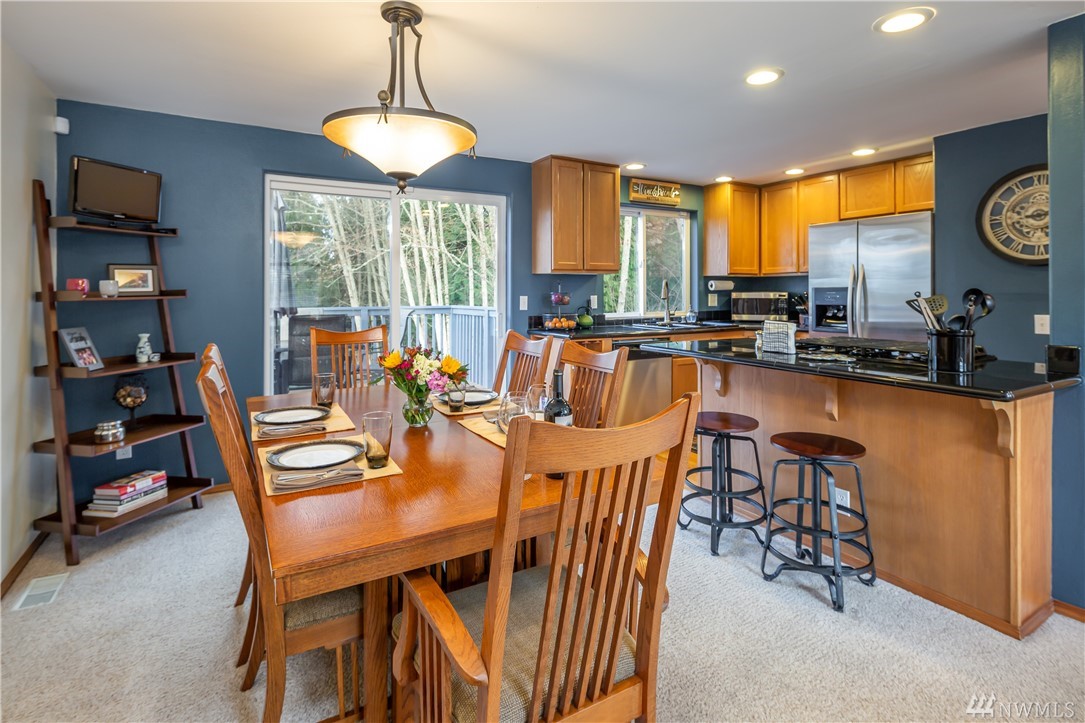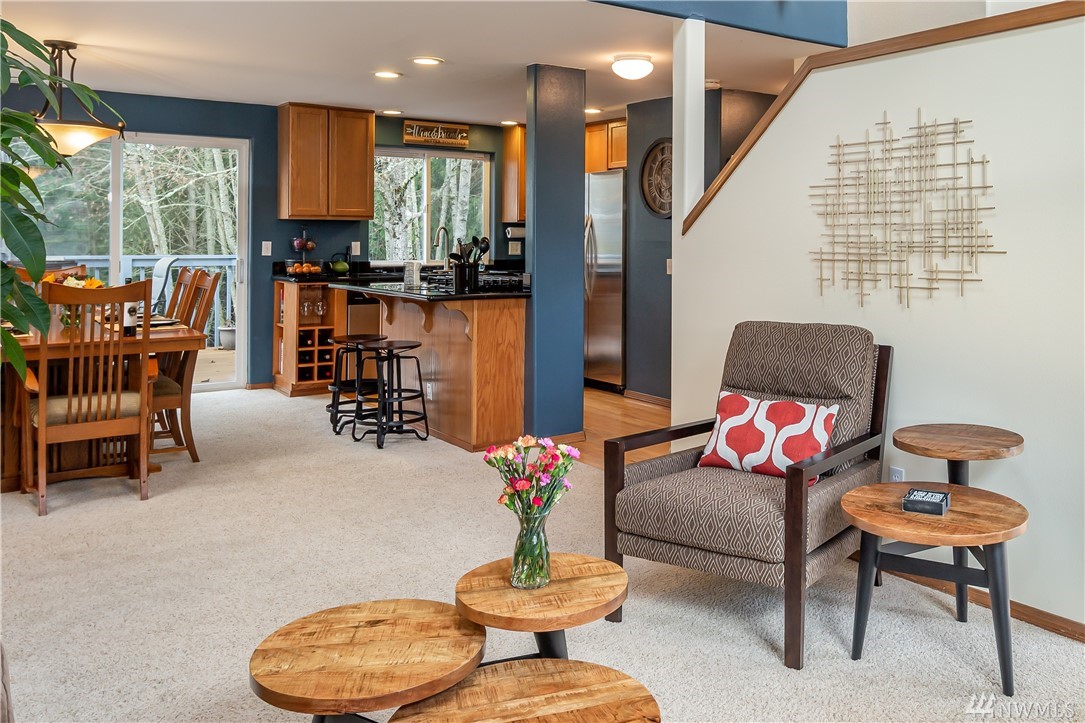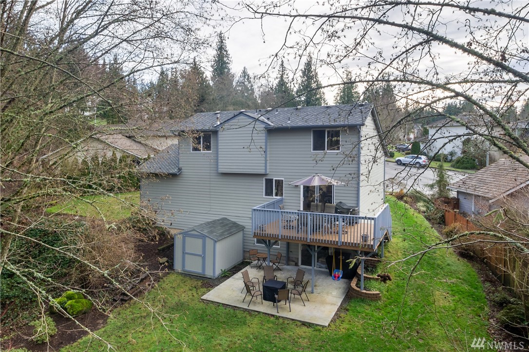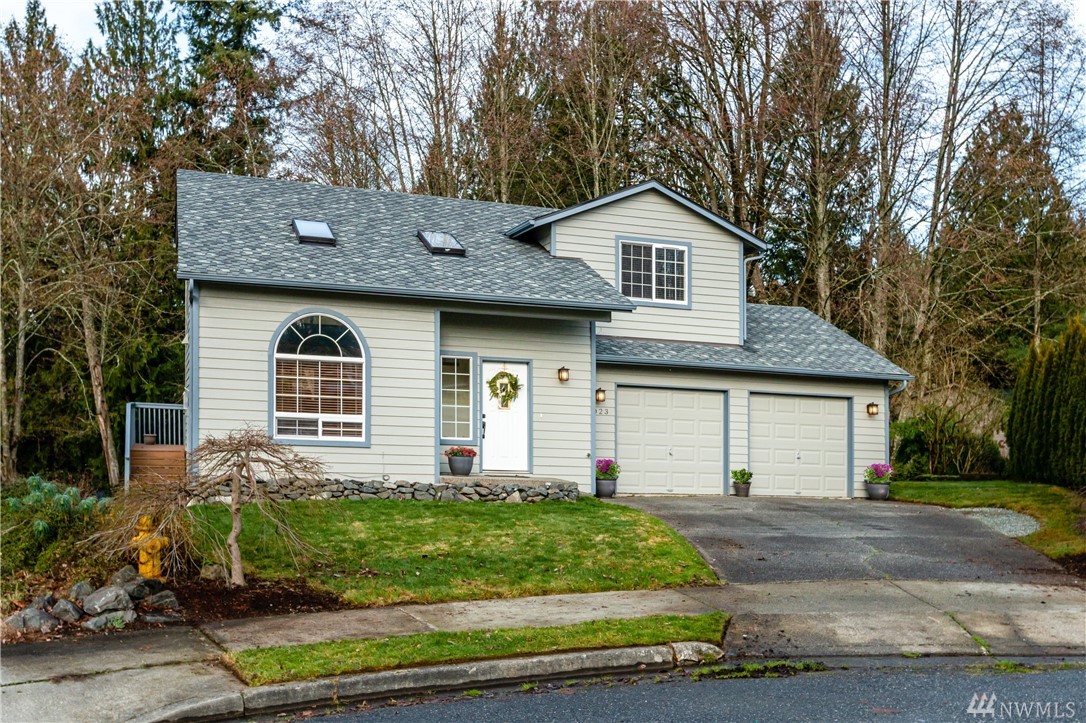 Gleneagle Golf Course Community. Two story home with walk out basement. Culdesac location with private back yard. Shy 2,000 sqft. 3BR 3.5BA (full, 3/4, 3/4, 1/2). Hardwoods, Granite Tile counters in Kitchen. Dramatic 2 story vaulted ceiling. Gas FP with stone and tile. Bonus room down stairs features: custom bar, TV area, 3/4 bath, laundry, and storage. Huge new back patio. New trex deck up and garden shed. Newer roof and recently painted inside and out. Home Warranty. Arlington Schools. Easy I-5 or SR 9 access.