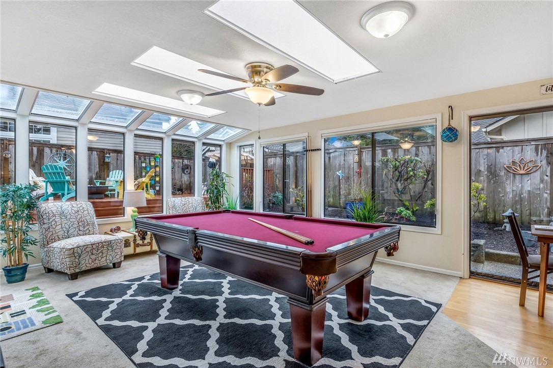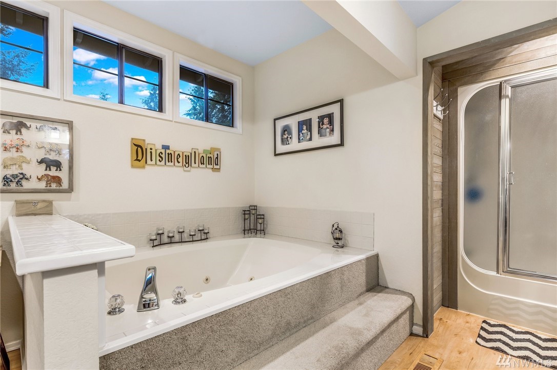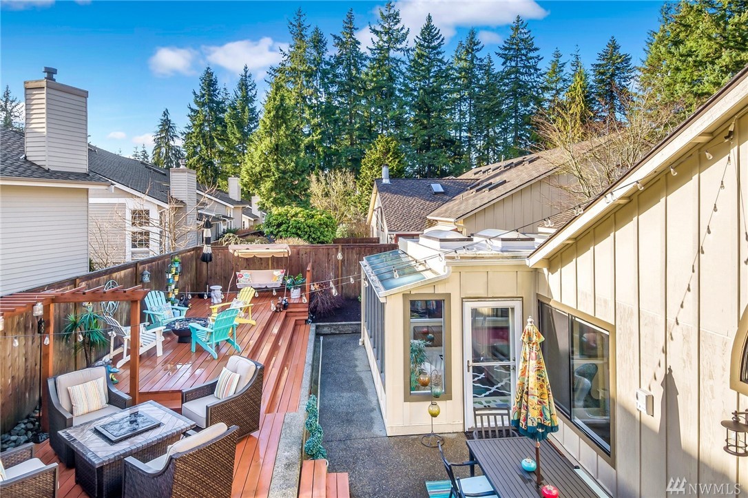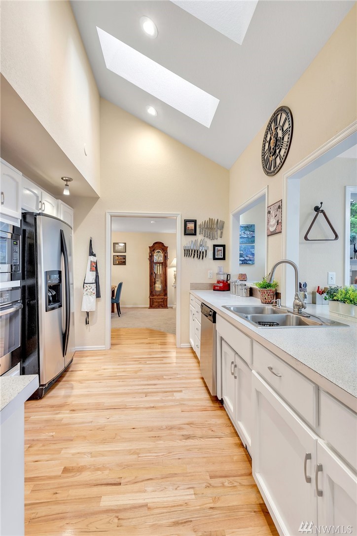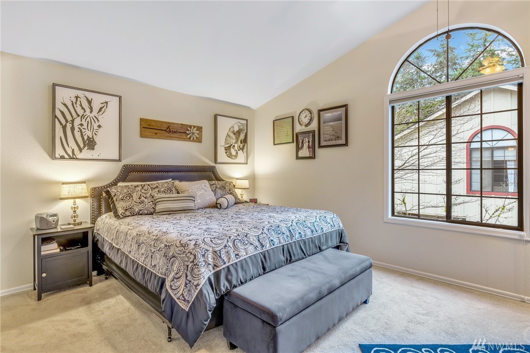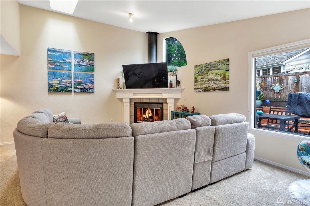 Very rare find in Trillium Court condo complex. With 3 bedroom this 2,800 sq ft home is immaculate throughout with gleaming hardwoods upon entering. Two master suites, one on the MAIN FLOOR with a ¾ BATHROOM and the second upstairs with a cozy fireplace. Great spaces to entertain with a separate dining & living room adjacent to the fabulous kitchen with ALL STAINLESS STEEL APPS. The absolute standout feature is the huge BONUS ROOM with an atrium wall and skylights providing light during the rainy days, a coffee nook, and space for a pool table. The back yard has a patio & multi level deck. Other features: jetted tub, walk-in shower, terrific office/work space, two car attached garage, plus parking in front of garage, Newer A/C & furnace.