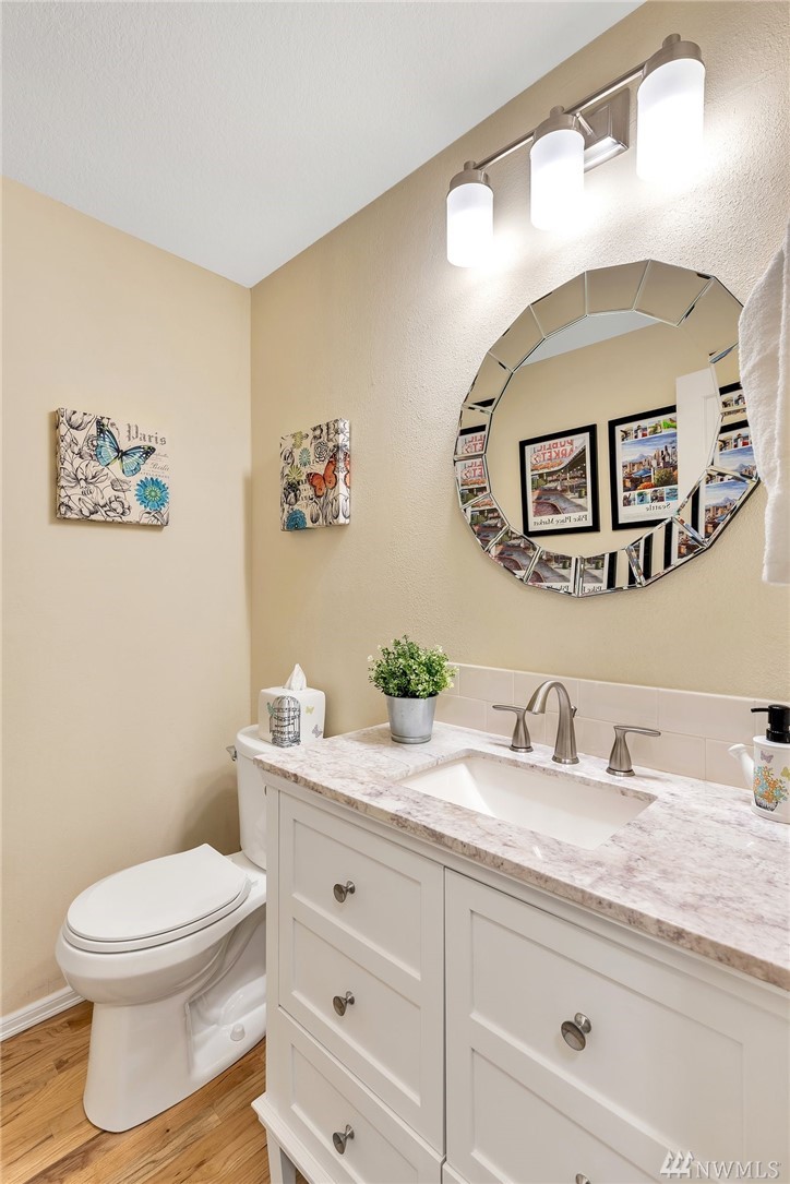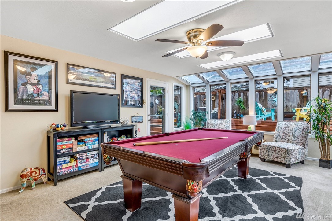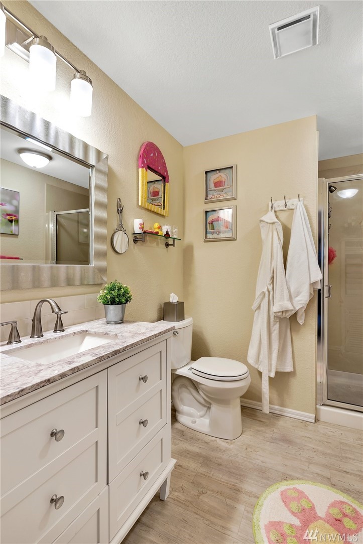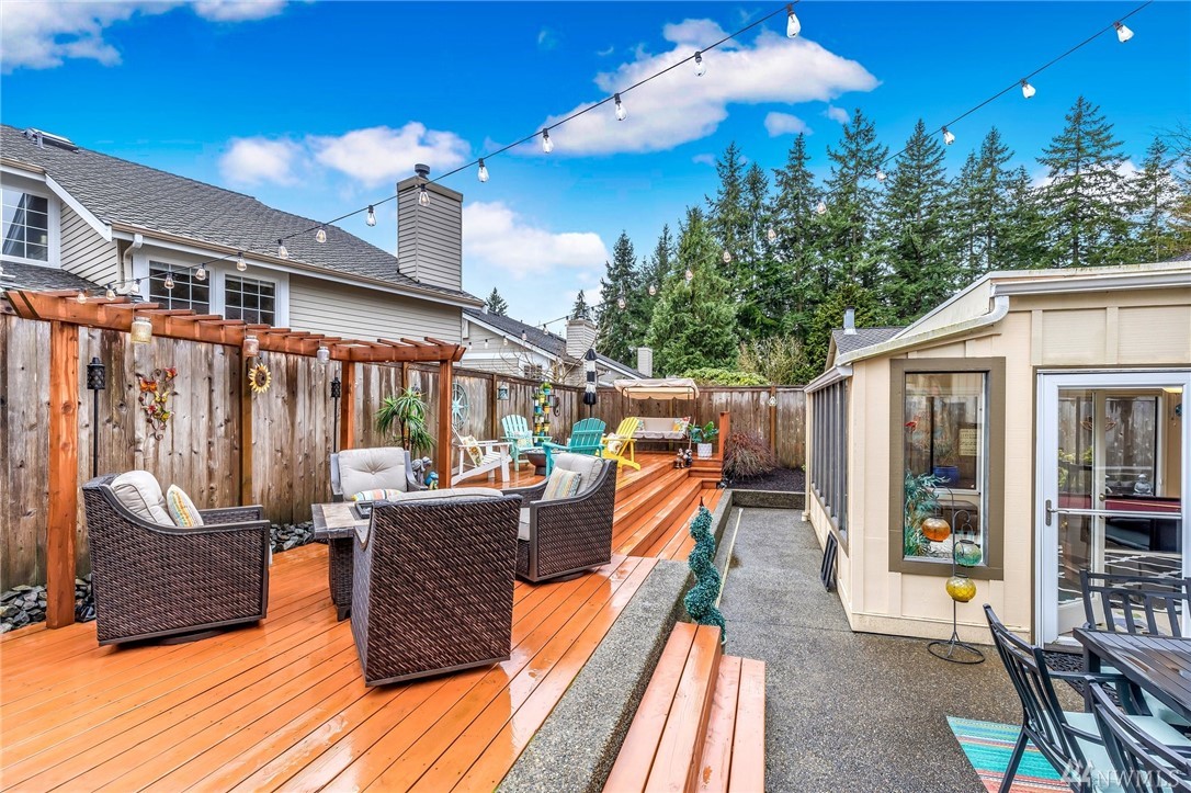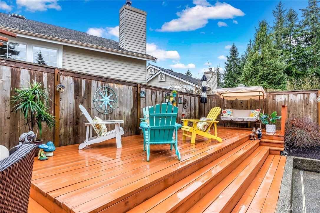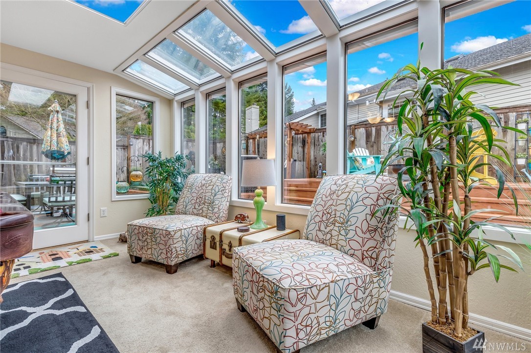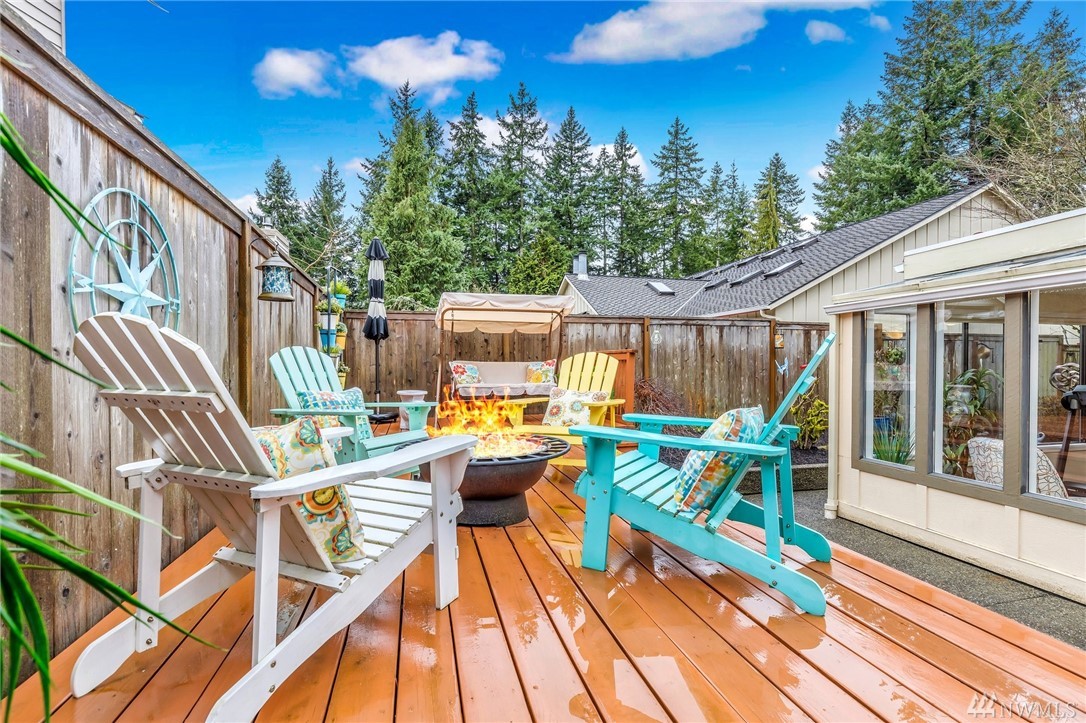 Very rare find in Trillium Court condo complex. With 3 bedroom this 2,800 sq ft home is immaculate throughout with gleaming hardwoods upon entering. Two master suites, one on the MAIN FLOOR with a ¾ BATHROOM and the second upstairs with a cozy fireplace. Great spaces to entertain with a separate dining & living room adjacent to the fabulous kitchen with ALL STAINLESS STEEL APPS. The absolute standout feature is the huge BONUS ROOM with an atrium wall and skylights providing light during the rainy days, a coffee nook, and space for a pool table. The back yard has a patio & multi level deck. Other features: jetted tub, walk-in shower, terrific office/work space, two car attached garage, plus parking in front of garage, Newer A/C & furnace.