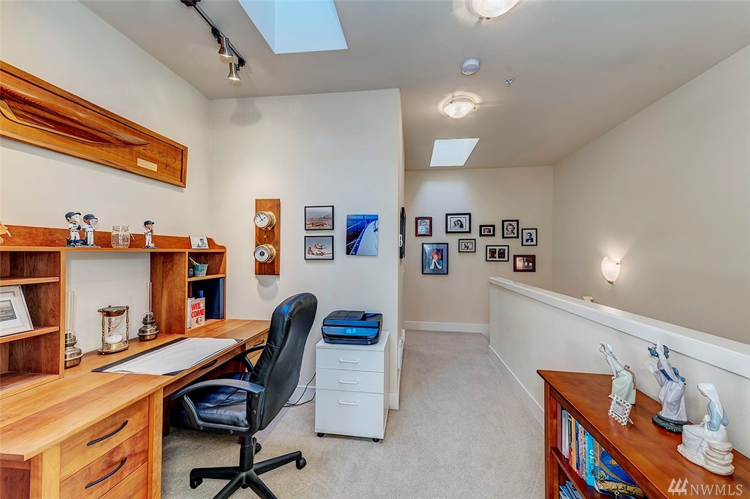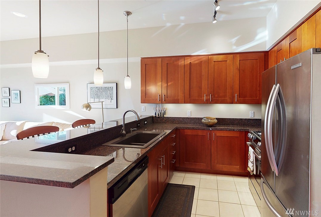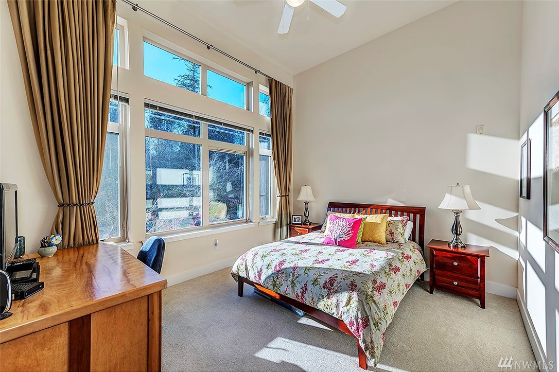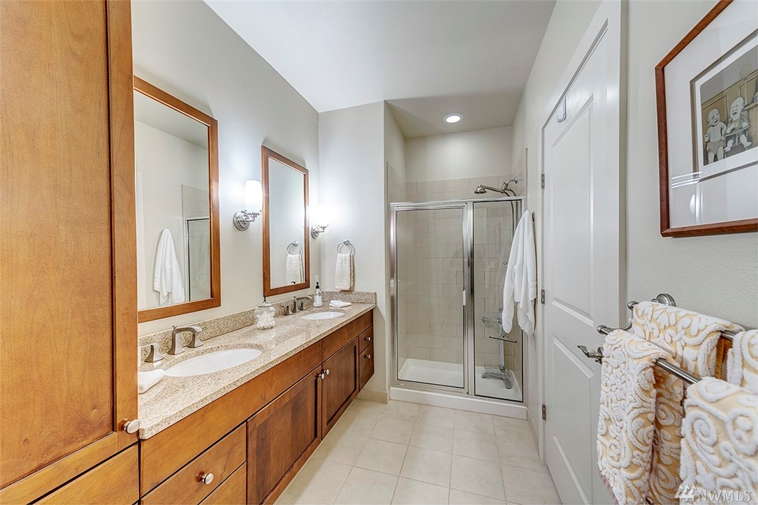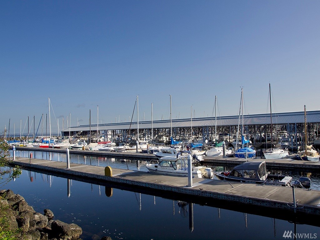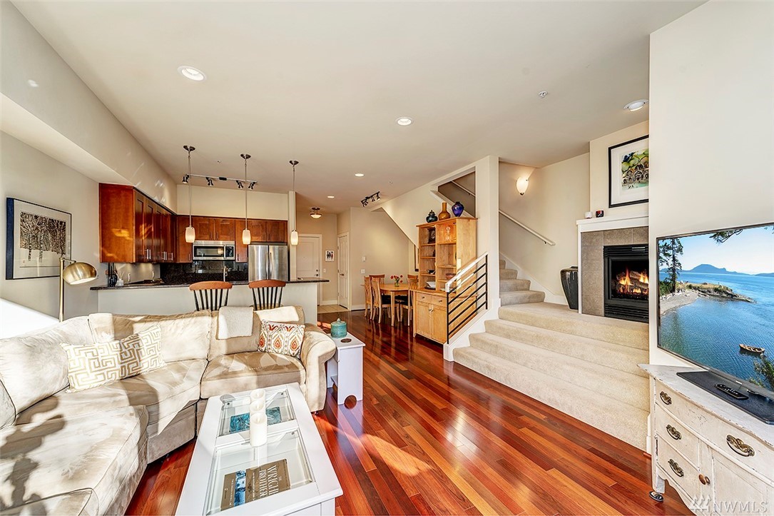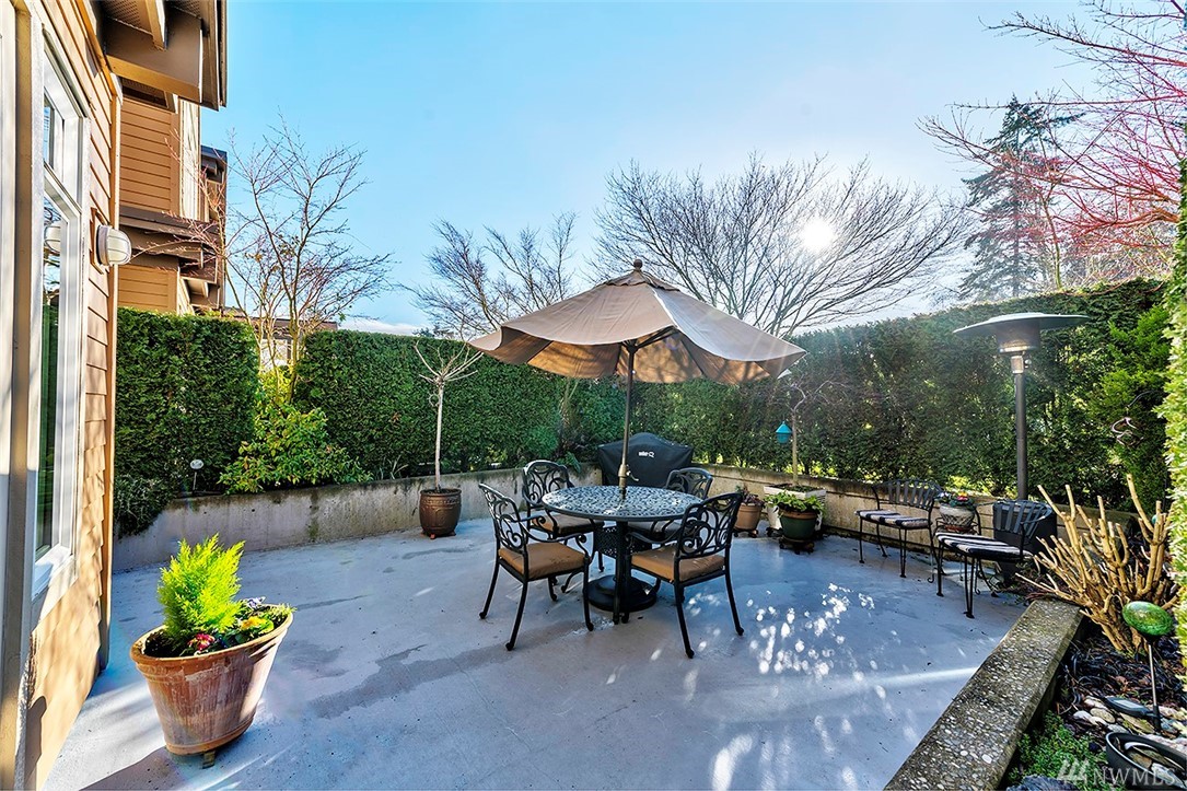 Point Edwards–Experience a sophisticated resort lifestyle surrounded by epic Puget Sound and Mountain views. This luxurious 2 story private patio home, end unit, is ideally located offering easy street access through owner’s lovely garden patio. Main floor welcomes you with Brazilian cherry hardwood flooring, lofty 12’ ceilings, full bth, light filled living & dining, gas fireplc, chef’s kitchen-granite & SS appliances. Upper-level elegant master with walk-in closet, built in organizers & skylights. Granite double vanity bth with large shower. Office, laundry and generous 2nd bedroom w/walk-in closet soaring ceilings & verdant views. Spacious patio, bathed in sunny Southern exposure, a perfect retreat to gather and relax. 2 prk + xtra strg.