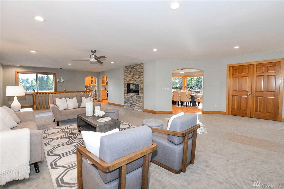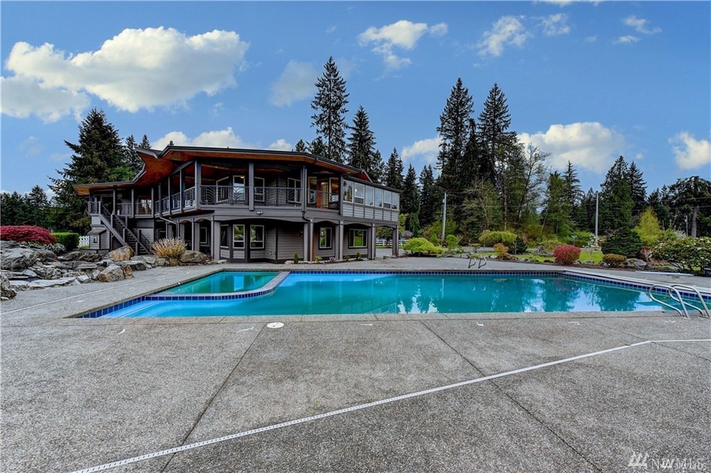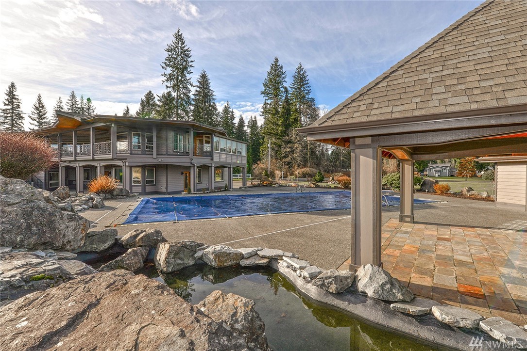 Custom built and updated home feels like living at your own resort w/ the 50' in-ground pool,cabana w/ outdoor fireplace & water feature + tons of covered outdoor space for dining al fresco w/ sweeping views of the Mtns.Designed for entertaining you will enjoy cooking in the chefs kitchen w/ Industrial fridge and SS appliance that is centered between the large dining space and living room with 2 sided fireplace.Follow downstairs for additional entertaining in the large media room wired for projector & drop down movie screen that is overlooked by the full bar & gaming area.You will appreciate the master suite w/ sitting area,French doors to a sunroom & covered deck + spa inspired master bath.Not be missed is the large 4 car garage w/ office