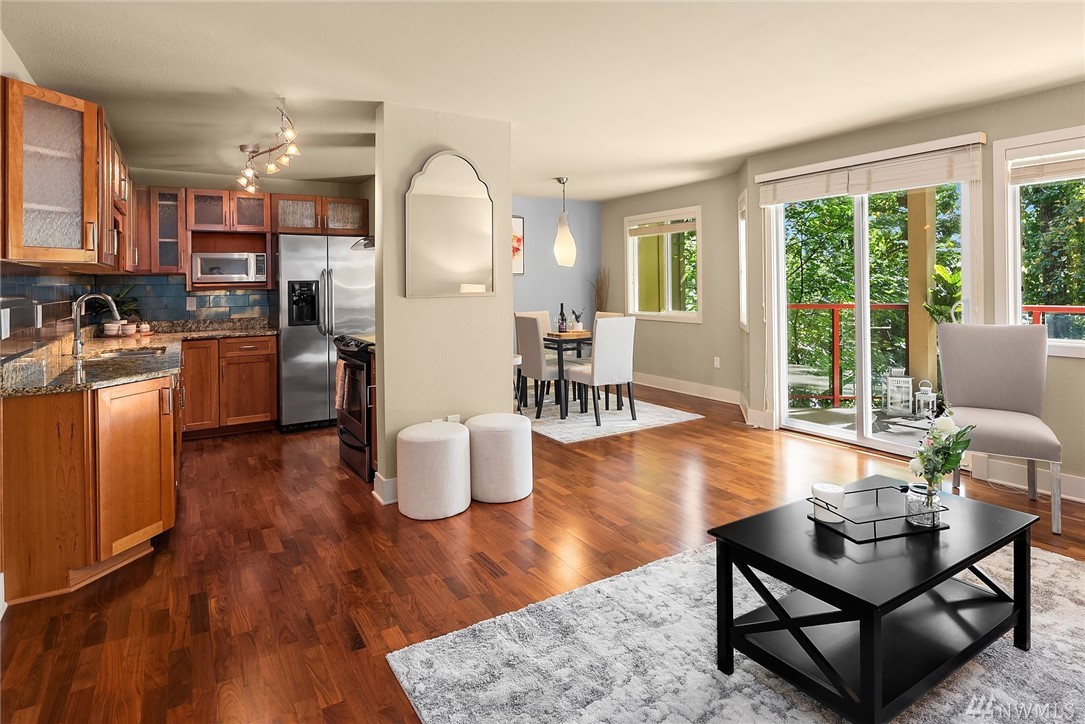 Welcome to this 2bdrm, 1-bath condo, conveniently located between downtown Bellevue and Kirkland Waterfront! This unit features stainless steel appliances, granite counter tops, breakfast bar, washer & dryer, large storage on deck and an open layout. New Water Heater. Pre-Inspected. great investment opportunity in growing bellevue. Reserved Parking. HOA includes Common area & Road maintenance, Earthquake Ins., Garbage, Lawn service, & Water/Sewer. Pets Welcomed! Walking Distance to trails!