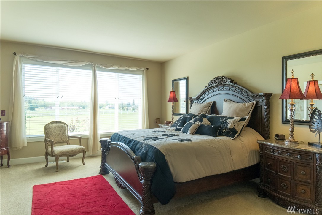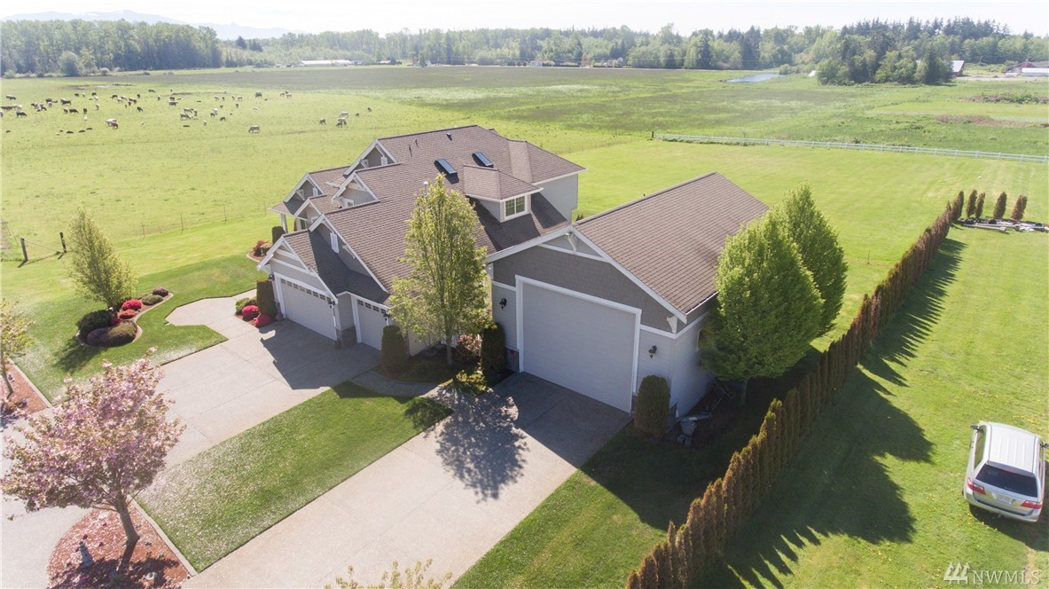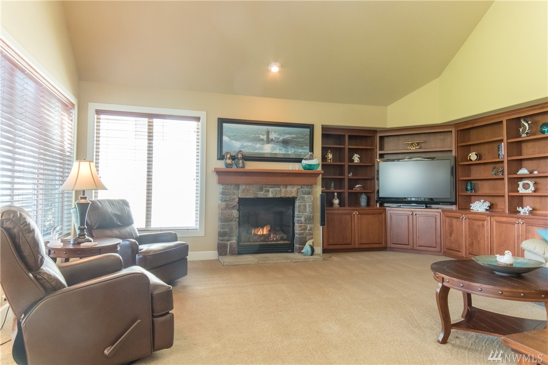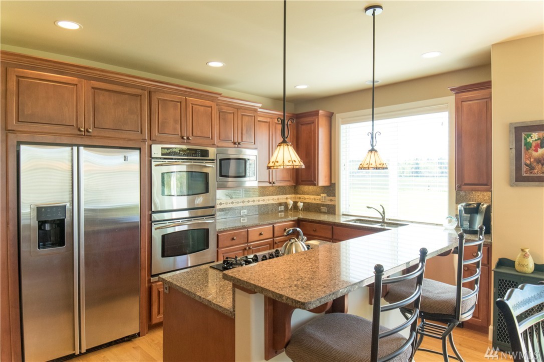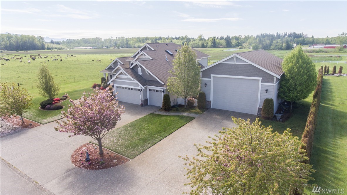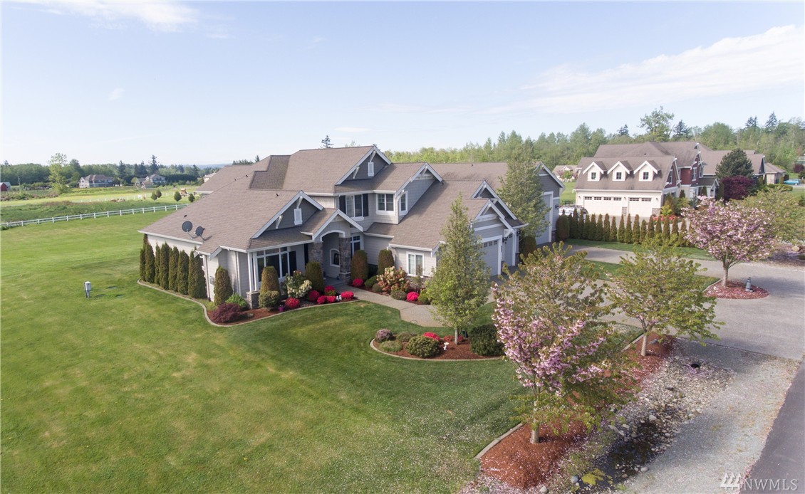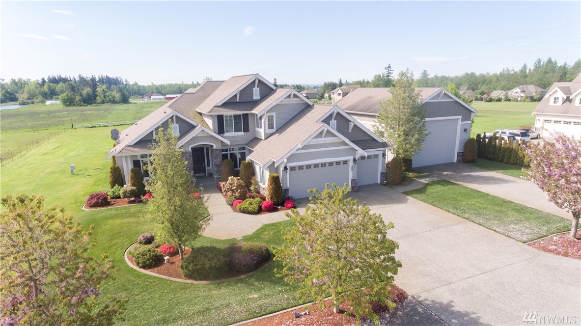 Bayview Meadows spacious 4 bedroom home with luxurious Master suite on the main floor, formal dining, living & great room; Multiple fireplaces. Numerous high end upgrades throughout. Gourmet kitchen offering slab granite w/ full backsplash, all stainless appliances, double ovens, bar & eating space. Elevated ceilings, hardwood floors, a large bonus room. Quiet & peaceful location at the end of a cul-de-sac on 1.25 acres, Over 3,340 Sq ft. w/ a 3 car garage & detached heated RV shop with loft.